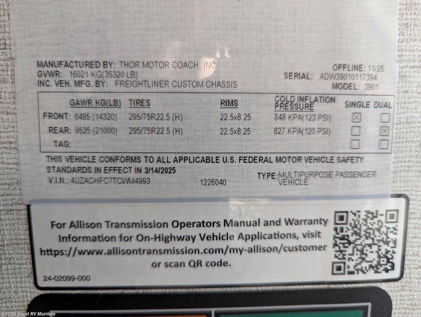 Request More Info on this 2026 Thor Motor Coach Aria 3901 Offered for sale by Giant RV