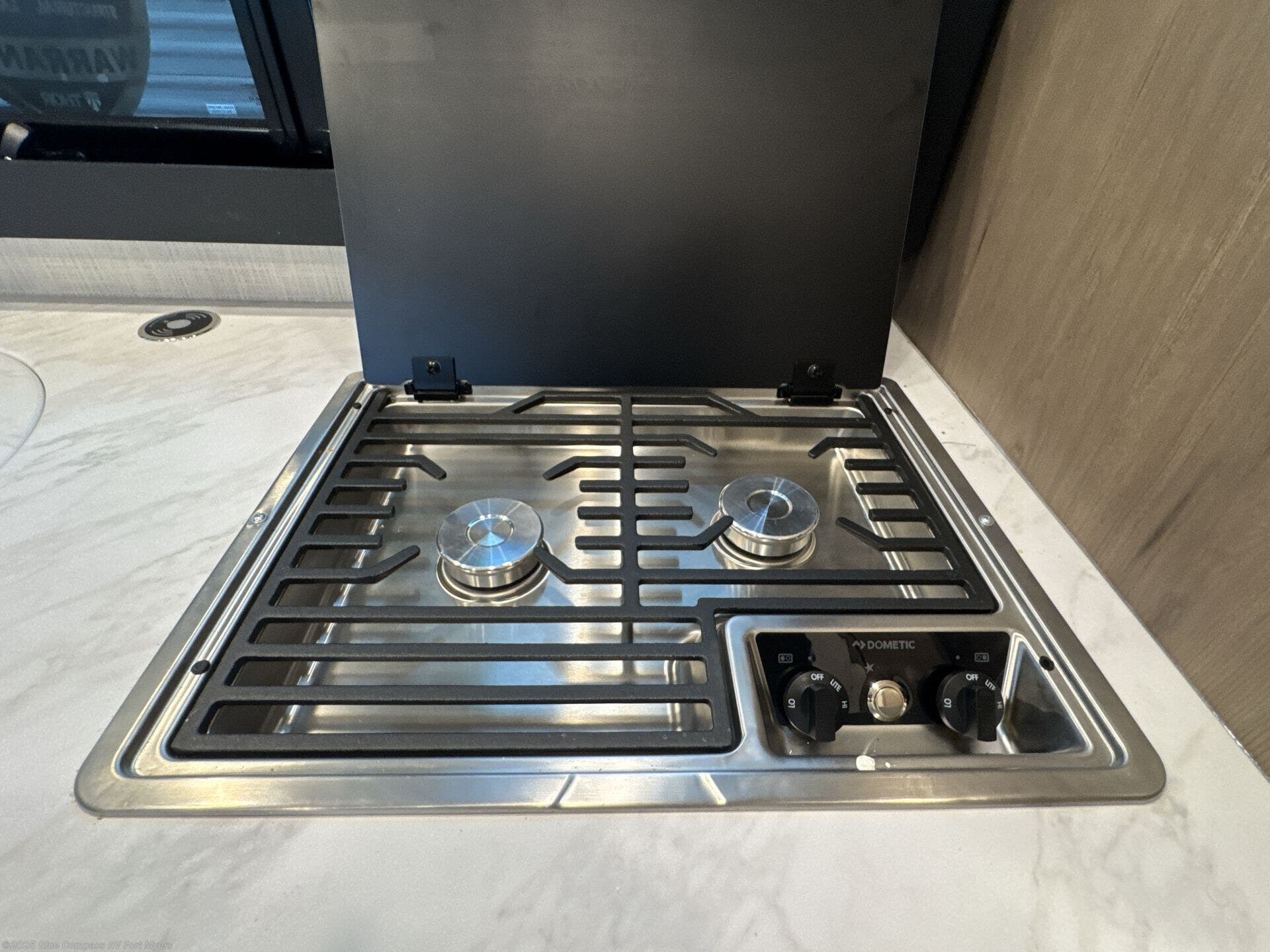 Wherever you decide to roam, you can be sure to make the most out of each trip in this coach! The swivel captain's seats can be turned to face the main living room once you park, and there is additional seating space on the theater seating. There is even a 32" Smart TV across from the sofa to enjoy movies! It will be so easy to make meals with a two burner gas cooktop and convection microwave with an air fryer, plus there is a 12V double door refrigerator for cold items. A full bath will let you freshen up after a day of exploring, and the rear bedroom with a privacy curtain is sure to bring comfort. Here, you'll enjoy twin beds with a king bed conversion, a USB power charging center for your electronics, and a 32" Smart TV so you can watch shows in bed!