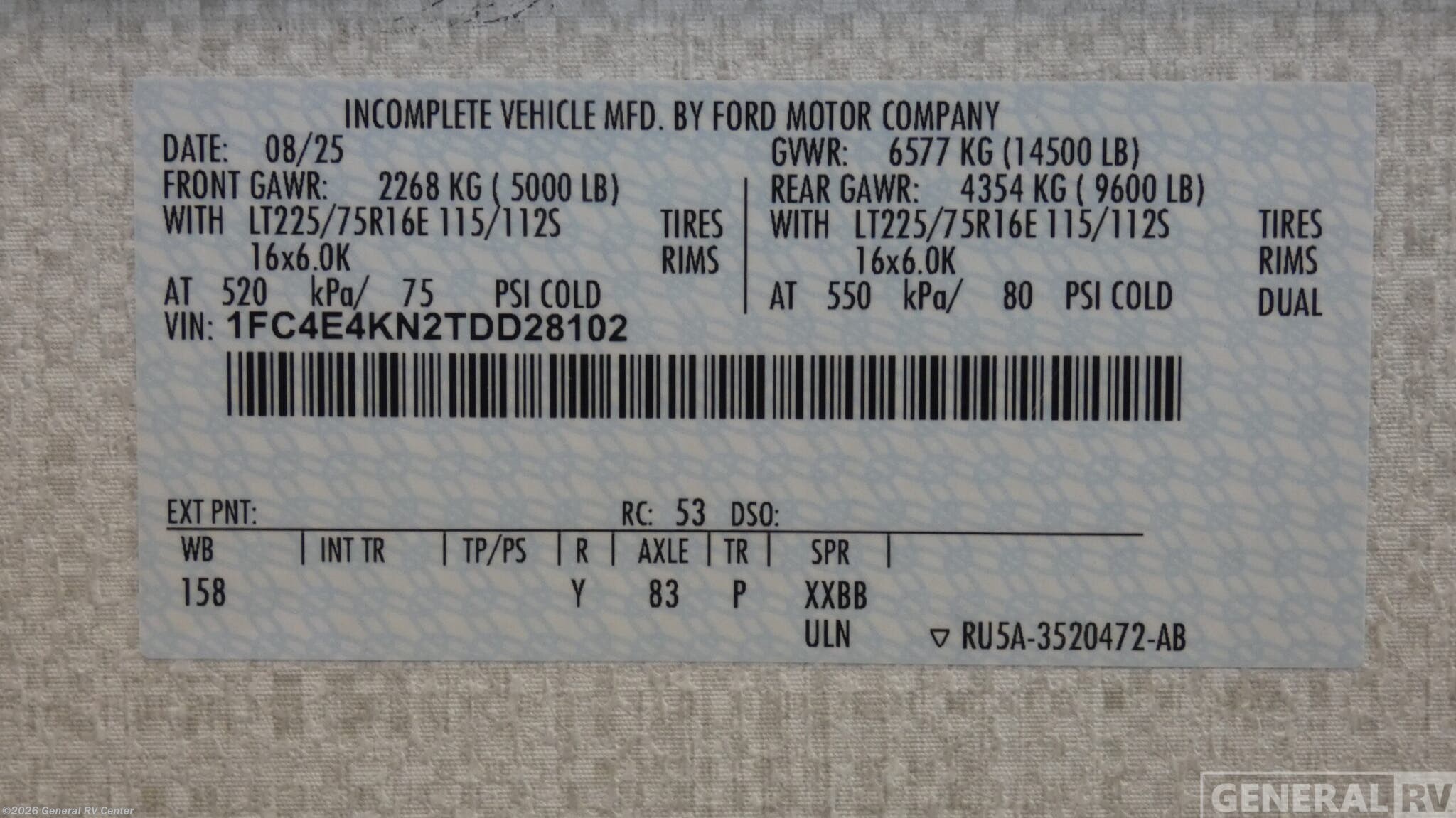 - VIN1FC4E4KN2TDD28102