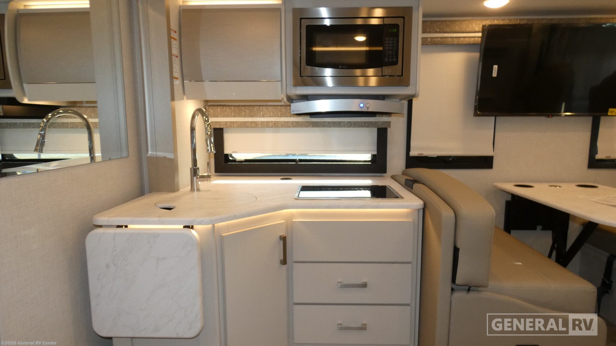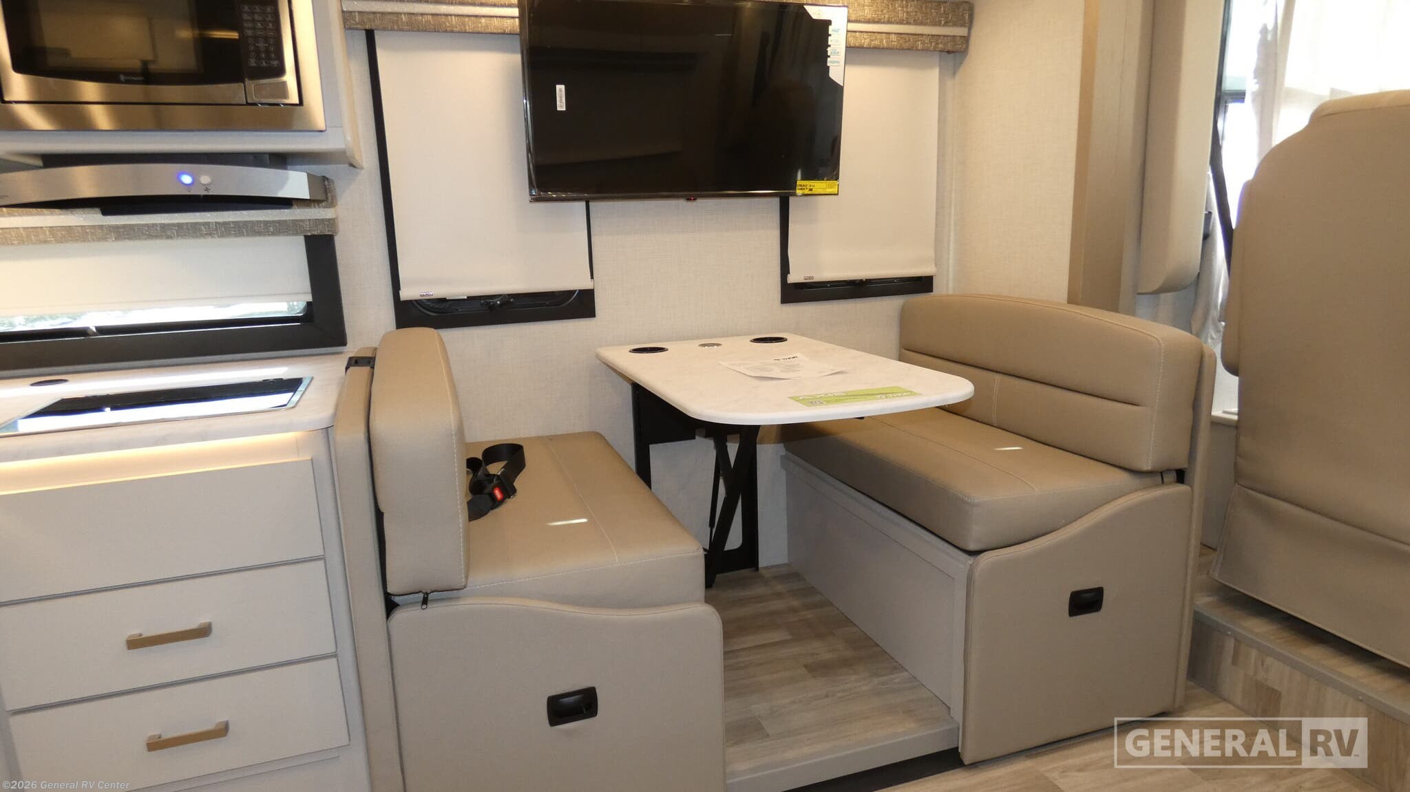 **2026 Thor Motor Coach Axis 28.1 Highlights:** - Full-Wall Slide for Expanded Living Space - Power Drop-Down Overhead Bunk - Residential Kitchen with Convection Microwave & 12V Refrigerator - 20' Power Awning with Integrated LED Lighting - Tankless Water Heater & 15,000 BTU A/C Hit the road with confidence in the 2026 Thor Motor Coach Axis 28.1, a compact Class A RUV designed to drive like an SUV but live like a full-featured motorhome. The full-wall slide dramatically opens the interior, making room for comfortable theater seating or a sofa (depending on build), a spacious Dream Dinette, and a 32" Smart TV for easy relaxation. A power drop-down overhead bunk adds sleeping flexibility, while the cockpit’s 14" touchscreen with Apple CarPlay and Android Auto keeps navigation simple and modern on every trip. The kitchen includes a two-burner cooktop, convection microwave, and 12V refrigerator, giving you all the essentials for meals on the go. At the rear, the Axis features an inviting RV queen bed with bedroom TV and convenient closets, while the mid-ship bathroom provides a 24" x 36" shower and everything you need to refresh after a full day of adventure. Outside, the 20' power awning with LED lighting creates a perfect shaded space for relaxing at your campsite. With its tankless water heater, strong Ford 7.3L V8 engine, and generous storage throughout, the Axis 28.1 offers big-coach comfort in a nimble, easy-to-drive package—ideal for couples or small families seeking flexibility and fun on the open road.