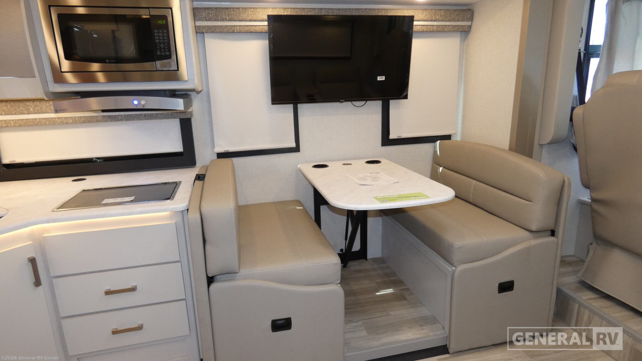 **2026 Thor Motor Coach Axis 28.1 Highlights:** - Full-Wall Slide for Expanded Living Space - Power Drop-Down Overhead Bunk - Residential Kitchen with Convection Microwave & 12V Refrigerator - 20' Power Awning with Integrated LED Lighting - Tankless Water Heater & 15,000 BTU A/C Hit the road with confidence in the 2026 Thor Motor Coach Axis 28.1, a compact Class A RUV designed to drive like an SUV but live like a full-featured motorhome. The full-wall slide dramatically opens the interior, making room for comfortable theater seating or a sofa (depending on build), a spacious Dream Dinette, and a 32" Smart TV for easy relaxation. A power drop-down overhead bunk adds sleeping flexibility, while the cockpit’s 14" touchscreen with Apple CarPlay and Android Auto keeps navigation simple and modern on every trip. The kitchen includes a two-burner cooktop, convection microwave, and 12V refrigerator, giving you all the essentials for meals on the go. At the rear, the Axis features an inviting RV queen bed with bedroom TV and convenient closets, while the mid-ship bathroom provides a 24" x 36" shower and everything you need to refresh after a full day of adventure. Outside, the 20' power awning with LED lighting creates a perfect shaded space for relaxing at your campsite. With its tankless water heater, strong Ford 7.3L V8 engine, and generous storage throughout, the Axis 28.1 offers big-coach comfort in a nimble, easy-to-drive package—ideal for couples or small families seeking flexibility and fun on the open road.
