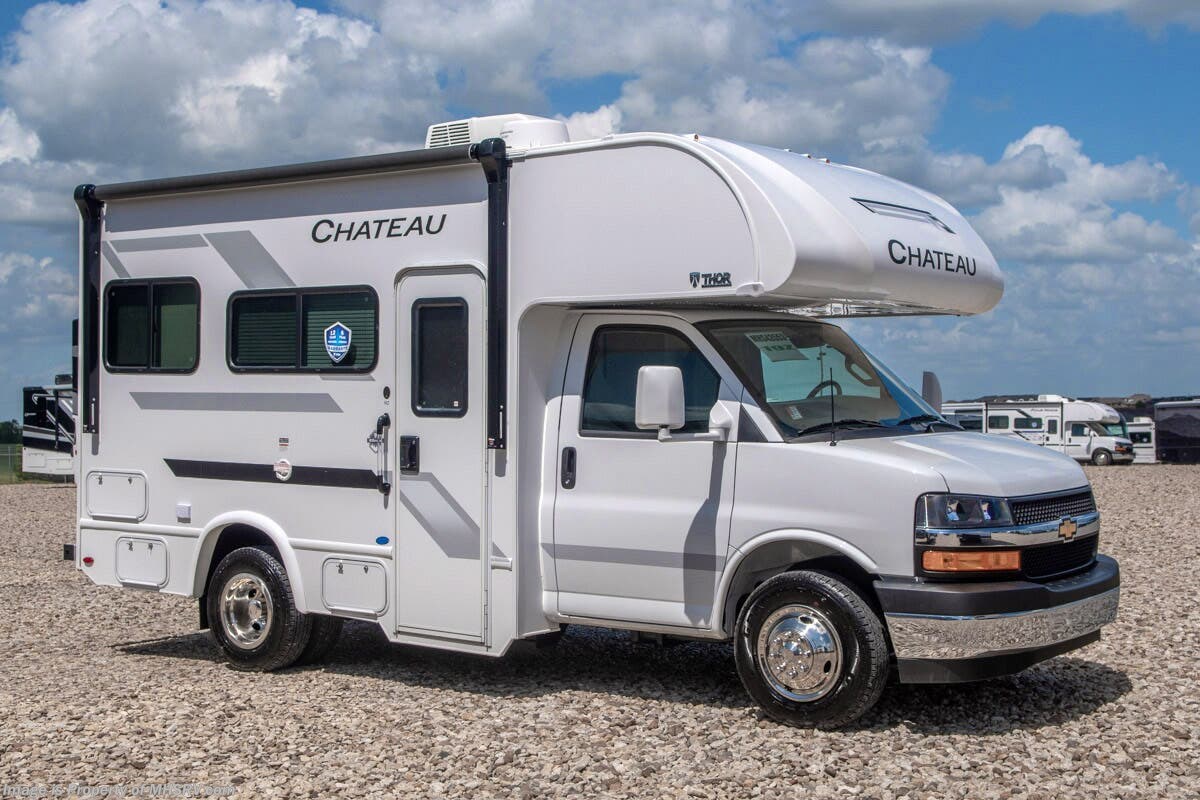 MSRP $124,306. New 2026 Thor Motor Coach Chateau® 19Z. It measures approximately 20 feet 5 inches in length providing a sleeping, dining and living space while still remaining compact enough for most any state park and exceptional maneuverability even for first time RVers! This features the Chevy chassis featuring the 6.6L V8 making 401HP & 464 lb-ft Torque. Shop Four Winds – Chateau – Quantum & Geneva Class C RVs at and save big today! Additional features and construction highlights include an One-piece fiberglass front cap, one-piece upper rear cap, premium one-piece crossflex exterior roofing, power patio awning with integrated LED lighting, Drop down stairwell entrance step with accent light under step, exterior grab handle, 7” Touchscreen dash radio with Bluetooth, Android Auto, Apple CarPlay, keyless entry key fob, back-up monitor, full extension soft close metal ball-bearing drawer guides, cab-over sleeping area with cup holders and bunk ladder, flip-up countertop extension, 4.0KW gas generator, automatic transfer switch with power protection and tankless water heater. Shop hundreds of class C gas RVs at 1 location! Choose from Fleetwood Altitude - Gulf Stream BT Cruiser - Thor Chateau - Four Winds - Geneva and Quantum - Entegra Coach Odyssey Odyssey SE and Esteem - East to West Entrada - Forest River Forester - Forester LE - Nexus Phantom - Viper and much more. We also sell quality pre-owned models such as Jayco Greyhawk – Redhawk - Redhawk SE - Thor Magnitude - Winnebago Spirit - and Minnie Winnie - Coachmen Freelander and Leprechaun - Forest River Sunseeker Classic - Sunseeker LE – Solera - Holiday Rambler Incline and much more. Visit for our complete line-up and the sale prices that have made us the #1 volume selling motor home dealership in the world 12 years in a row! For additional details on this unit and our entire inventory including brochures, window sticker, videos, photos, reviews and testimonials as well as additional information about Motor Home Specialist and our manufacturers please visit us at or call 800-335-6054. At Motor Home Specialist, we DO NOT charge any prep or orientation fees like you will find at other dealerships. All sale prices include a 200-point inspection, interior & exterior wash, detail service and a fully automated high-pressure rain booth test and coach wash that is a standout service unlike that of any other in the industry. You will also receive a thorough coach orientation with an MHSRV technician, a night stay in our delivery park featuring landscaped and covered pads with full hook-ups and much more! Read thousands-upon-thousands of 5-Star reviews at and see what they had to say about their experience at Motor Home Specialist. WHY PAY MORE? WHY SETTLE FOR LESS?