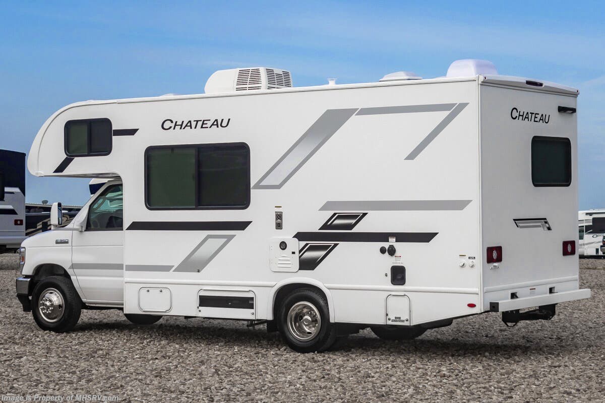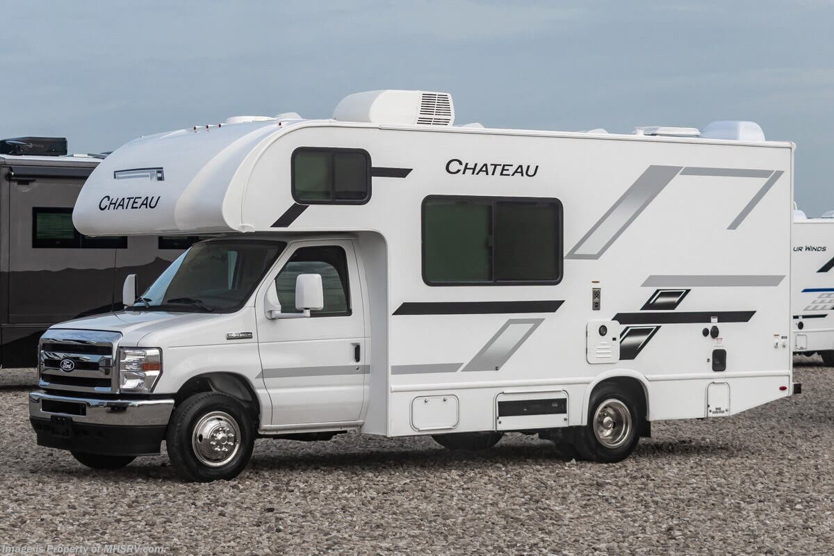 MSRP $132,566. New 2026 Thor Motor Coach Chateau® 21Z. It measures approximately 24 feet 1 inches in length providing a sleeping, dining and living space while still remaining compact enough for most any state park and exceptional maneuverability even for first time RVers! This features the Ford E-Series Chassis and the Ford 7.3L V8. 325HP engine with 450 lb.-ft Torque. Additional features and construction highlights include an Thor’s MEGA-Storage® exterior compartment, One-piece fiberglass front cap, one-piece upper rear cap, premium one-piece crossflex exterior roofing, power patio awning with integrated LED lighting, Drop down stairwell entrance step with accent light under step, exterior grab handle, 7” Touchscreen dash radio with Bluetooth, Android Auto, Apple CarPlay, keyless entry key fob, back-up monitor, full extension soft close metal ball-bearing drawer guides, cab-over sleeping area with cup holders and bunk ladder, dual child safety tethers in dinette, flip-up countertop extension, 4.0KW gas generator, automatic transfer switch with power protection, tankless water heater and battery tray for four batteries. Shop hundreds of class C gas RVs at 1 location! Choose from Fleetwood Altitude - Gulf Stream BT Cruiser - Thor Chateau - Four Winds - Geneva and Quantum - Entegra Coach Odyssey Odyssey SE and Esteem - East to West Entrada - Forest River Forester - Forester LE - Nexus Phantom - Viper and much more. We also sell quality pre-owned models such as Jayco Greyhawk – Redhawk - Redhawk SE - Thor Magnitude - Winnebago Spirit - and Minnie Winnie - Coachmen Freelander and Leprechaun - Forest River Sunseeker Classic - Sunseeker LE – Solera - Holiday Rambler Incline and much more. Visit for our complete line-up and the sale prices that have made us the #1 volume selling motor home dealership in the world 12 years in a row! For additional details on this unit and our entire inventory including brochures, window sticker, videos, photos, reviews and testimonials as well as additional information about Motor Home Specialist and our manufacturers please visit us at or call 800-335-6054. At Motor Home Specialist, we DO NOT charge any prep or orientation fees like you will find at other dealerships. All sale prices include a 200-point inspection, interior & exterior wash, detail service and a fully automated high-pressure rain booth test and coach wash that is a standout service unlike that of any other in the industry. You will also receive a thorough coach orientation with an MHSRV technician, a night stay in our delivery park featuring landscaped and covered pads with full hook-ups and much more! Read thousands-upon-thousands of 5-Star reviews at and see what they had to say about their experience at Motor Home Specialist. WHY PAY MORE? WHY SETTLE FOR LESS?