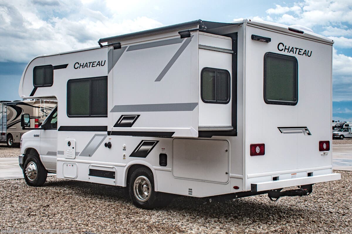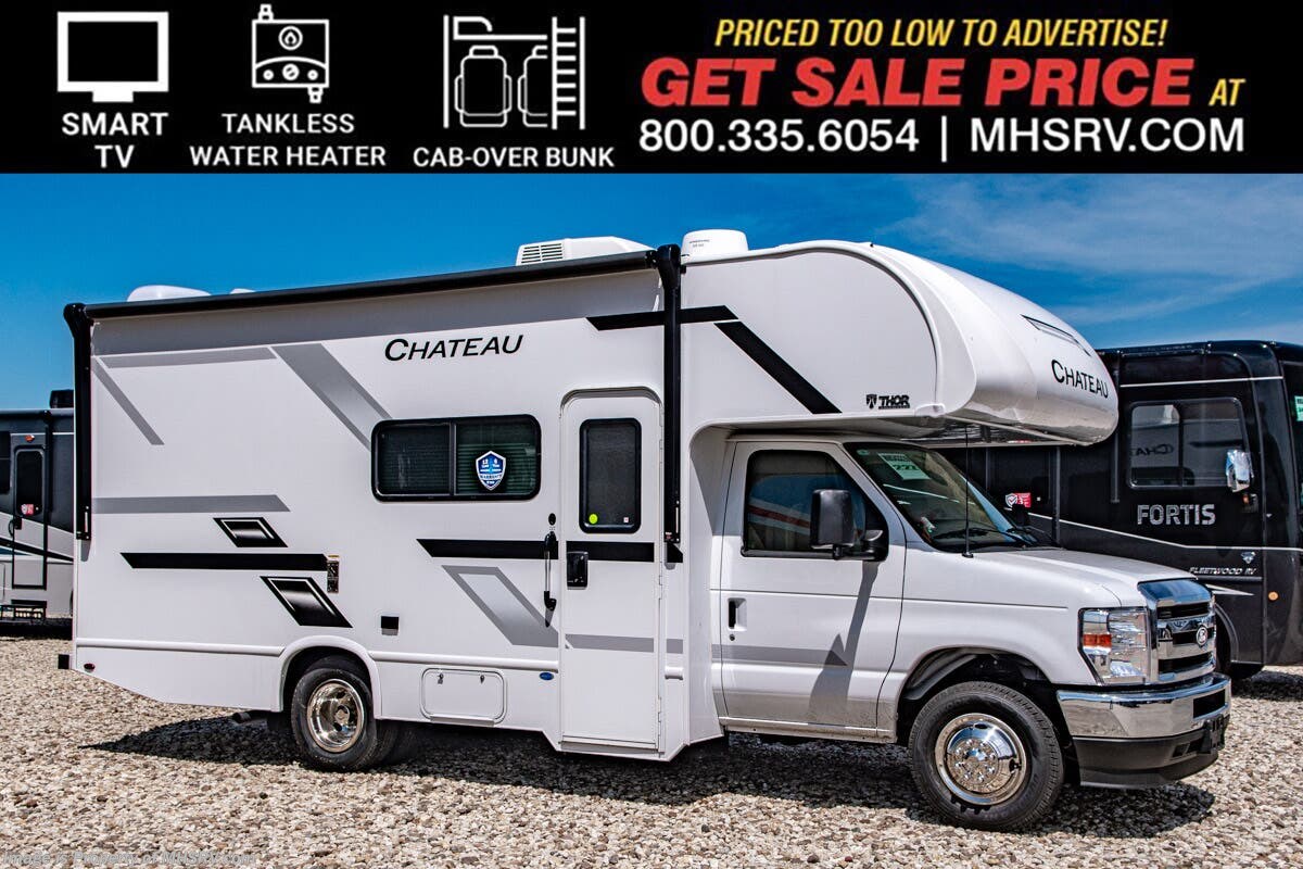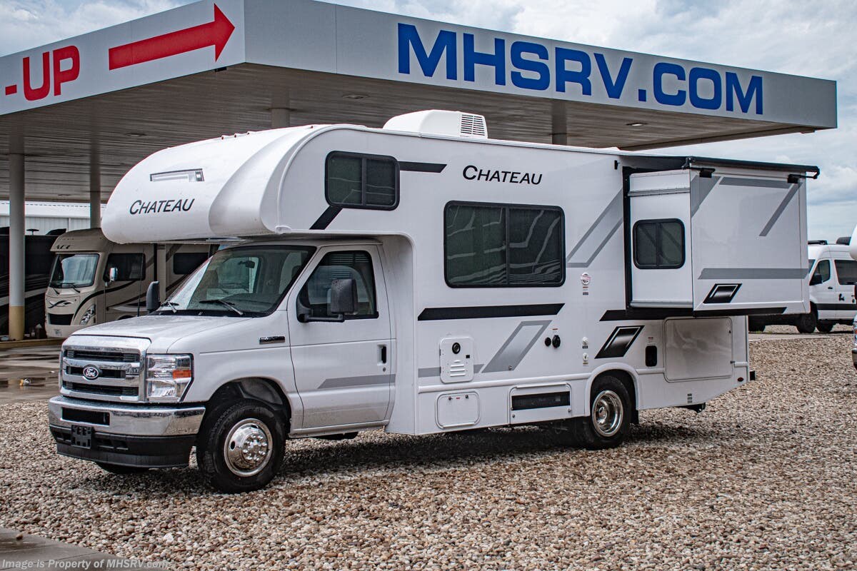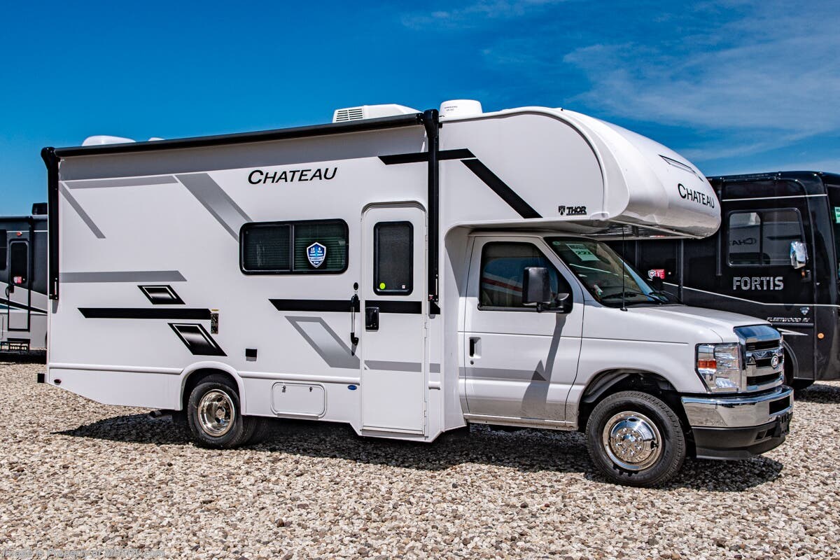 MSRP $138,166. New 2026 Thor Motor Coach Chateau® 22Z. It measures approximately 24 feet 1 inches in length providing a sleeping, dining and living space while still remaining compact enough for most any state park and exceptional maneuverability even for first time RVers! This features the Ford E-Series Chassis and the Ford 7.3L V8. 325HP engine with 450 lb.-ft Torque. Optional features include the 50 state gas/LP and California Compliant generator. Shop Four Winds – Chateau – Quantum & Geneva Class C RVs at and save big today! Additional features and construction highlights include an One-piece fiberglass front cap, one-piece upper rear cap, premium one-piece crossflex exterior roofing, power patio awning with integrated LED lighting, Drop down stairwell entrance step with accent light under step, exterior grab handle, 7” Touchscreen dash radio with Bluetooth, Android Auto, Apple CarPlay, keyless entry key fob, back-up monitor, full extension soft close metal ball-bearing drawer guides, cab-over sleeping area with cup holders and bunk ladder, flip-up countertop extension, automatic transfer switch with power protection and tankless water heater. Shop hundreds of class C gas RVs at 1 location! Choose from Fleetwood Altitude - Gulf Stream BT Cruiser - Thor Chateau - Four Winds - Geneva and Quantum - Entegra Coach Odyssey Odyssey SE and Esteem - East to West Entrada - Forest River Forester - Forester LE - Nexus Phantom - Viper and much more. We also sell quality pre-owned models such as Jayco Greyhawk – Redhawk - Redhawk SE - Thor Magnitude - Winnebago Spirit - and Minnie Winnie - Coachmen Freelander and Leprechaun - Forest River Sunseeker Classic - Sunseeker LE – Solera - Holiday Rambler Incline and much more. Visit for our complete line-up and the sale prices that have made us the #1 volume selling motor home dealership in the world 12 years in a row! For additional details on this unit and our entire inventory including brochures, window sticker, videos, photos, reviews and testimonials as well as additional information about Motor Home Specialist and our manufacturers please visit us at or call 800-335-6054. At Motor Home Specialist, we DO NOT charge any prep or orientation fees like you will find at other dealerships. All sale prices include a 200-point inspection, interior & exterior wash, detail service and a fully automated high-pressure rain booth test and coach wash that is a standout service unlike that of any other in the industry. You will also receive a thorough coach orientation with an MHSRV technician, a night stay in our delivery park featuring landscaped and covered pads with full hook-ups and much more! Read thousands-upon-thousands of 5-Star reviews at and see what they had to say about their experience at Motor Home Specialist. WHY PAY MORE? WHY SETTLE FOR LESS?