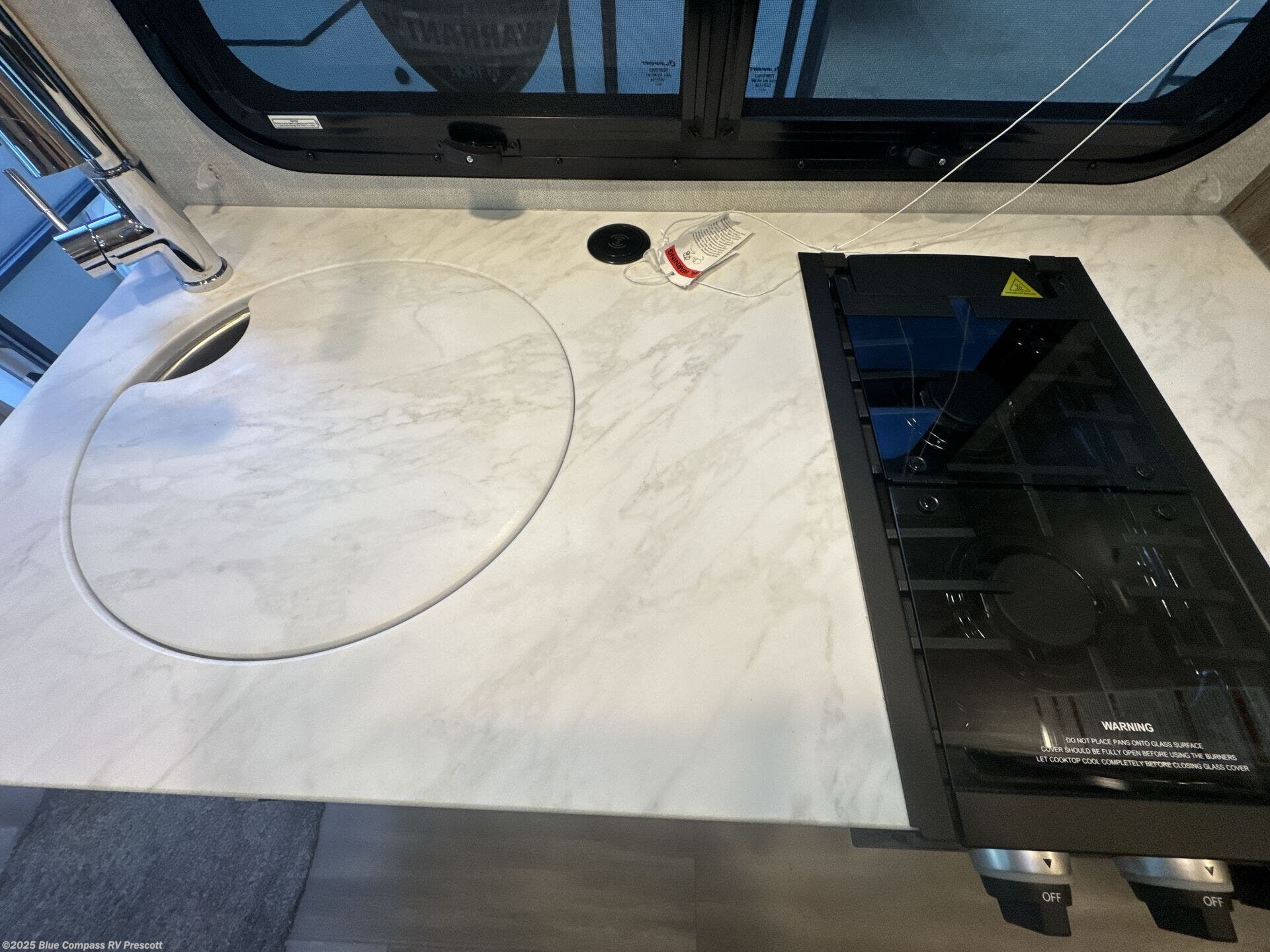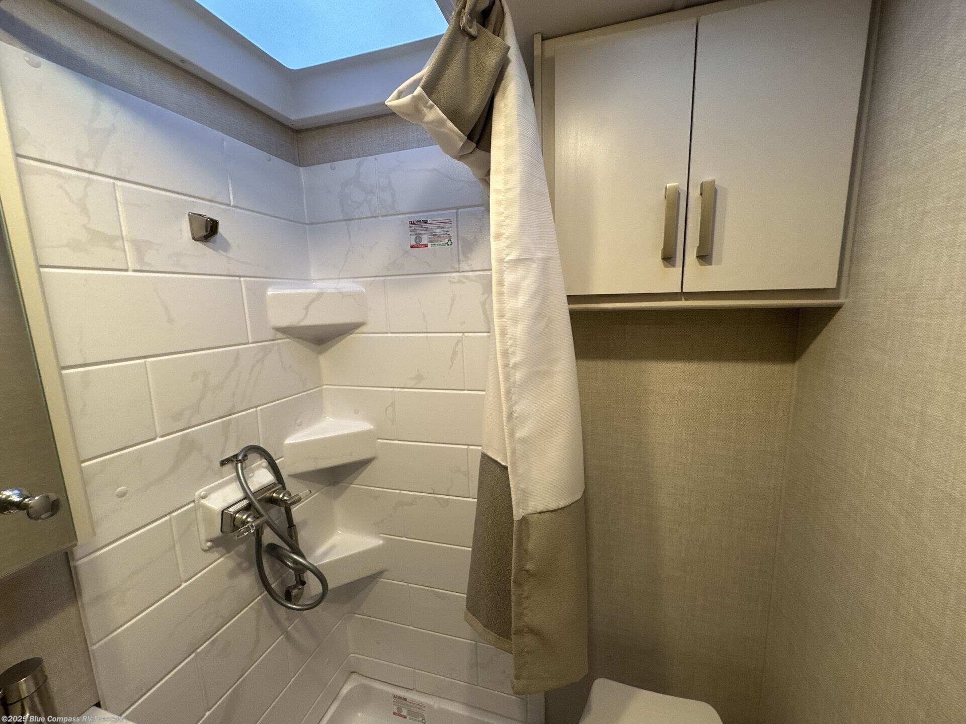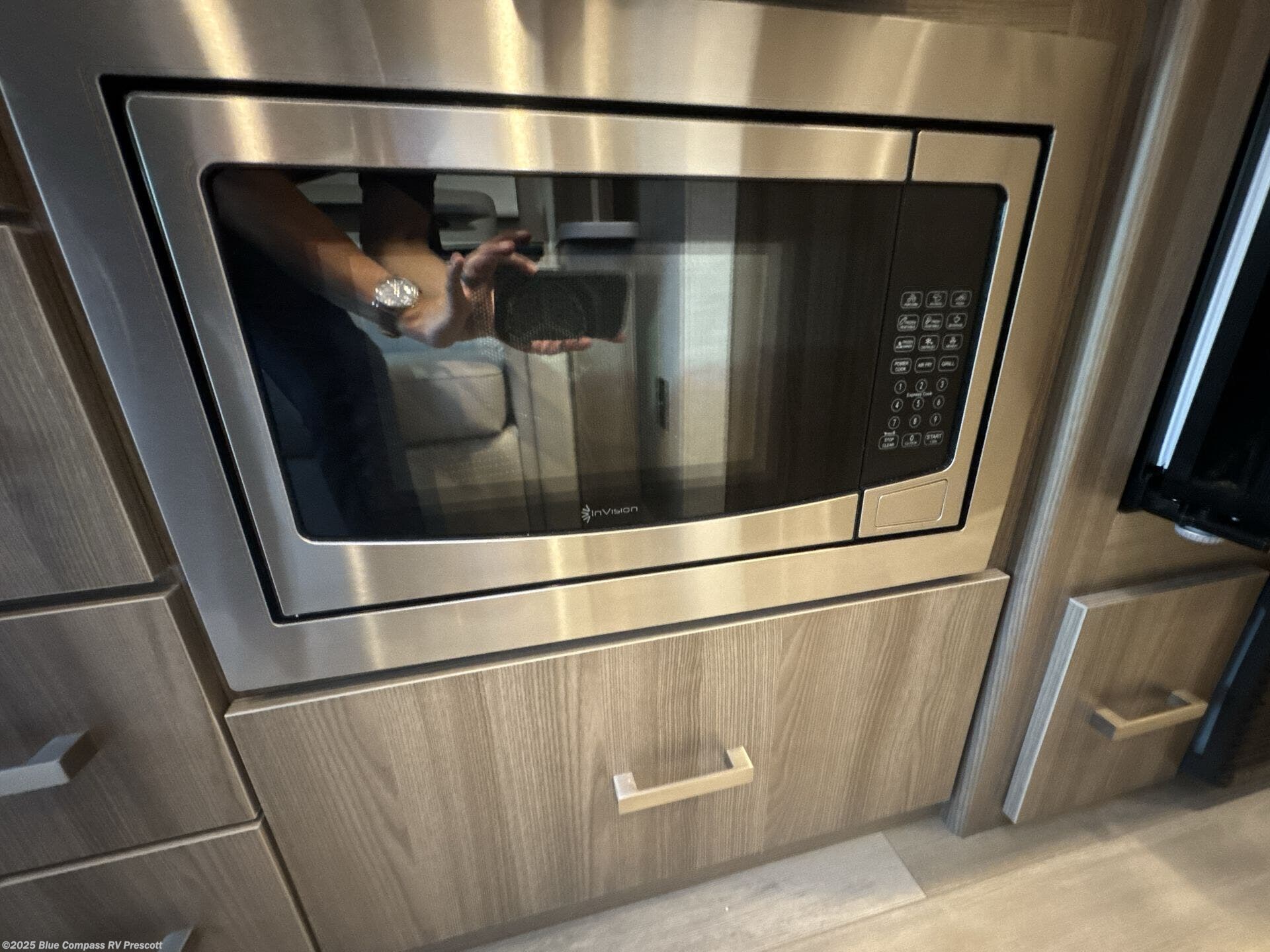 The perfect coach for two whether you are a couple or not! This Compass AWD model features a set of twin beds that can easily convert to a king bed if you like. Enjoy the added space thanks to a slide out jack-knife sofa. You will appreciate the kitchen amenities for light meals and snacks while on the road, plus the onboard bath offers a 27" x 27" radius shower, toilet, and sink which is convenient as well. There are also two 32" Smart TVs in this coach, one over the side entry opposite the seating in front, and one back in the sleeping area at the foot of the roadside twin bed. A built-in skylight offers the ability to stargaze in the front of the coach on a clear night.