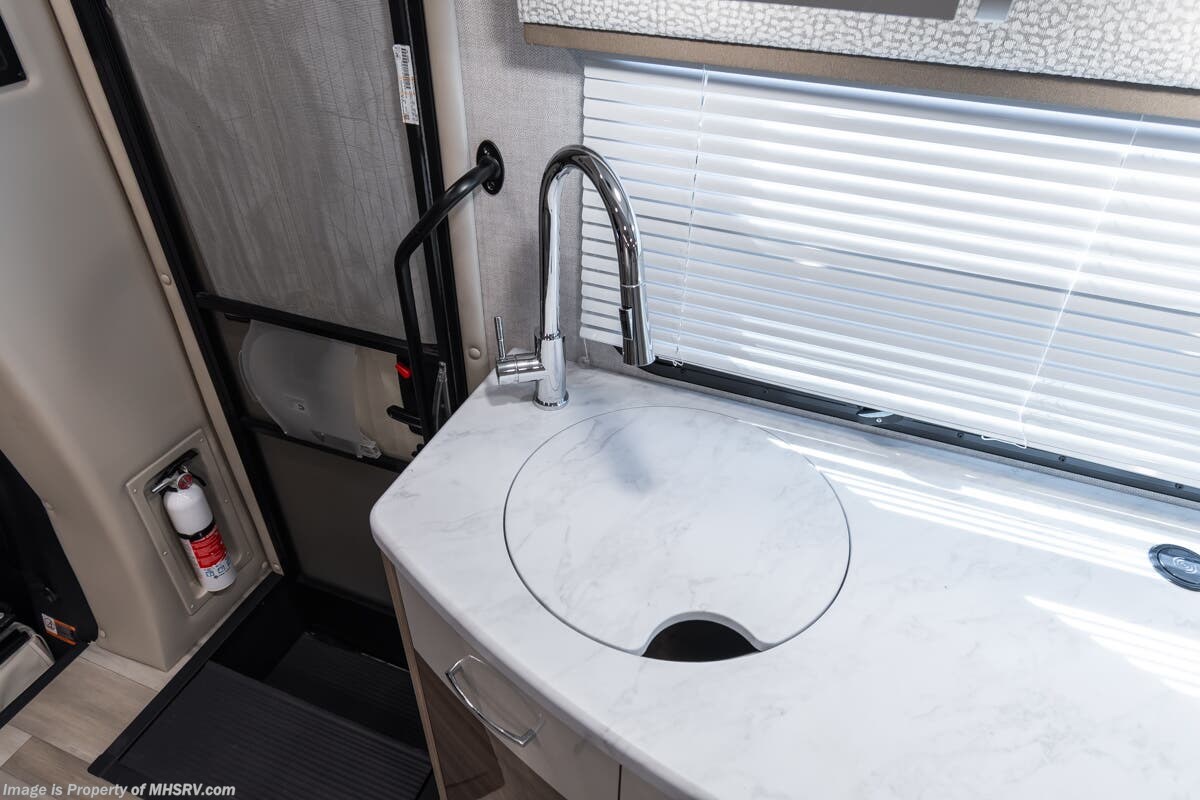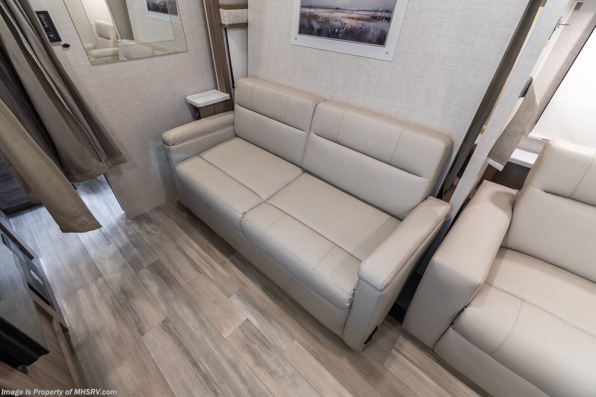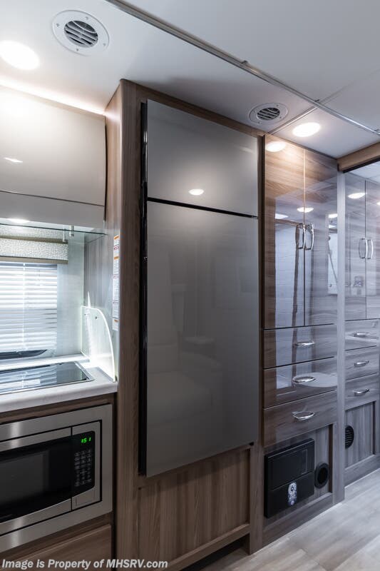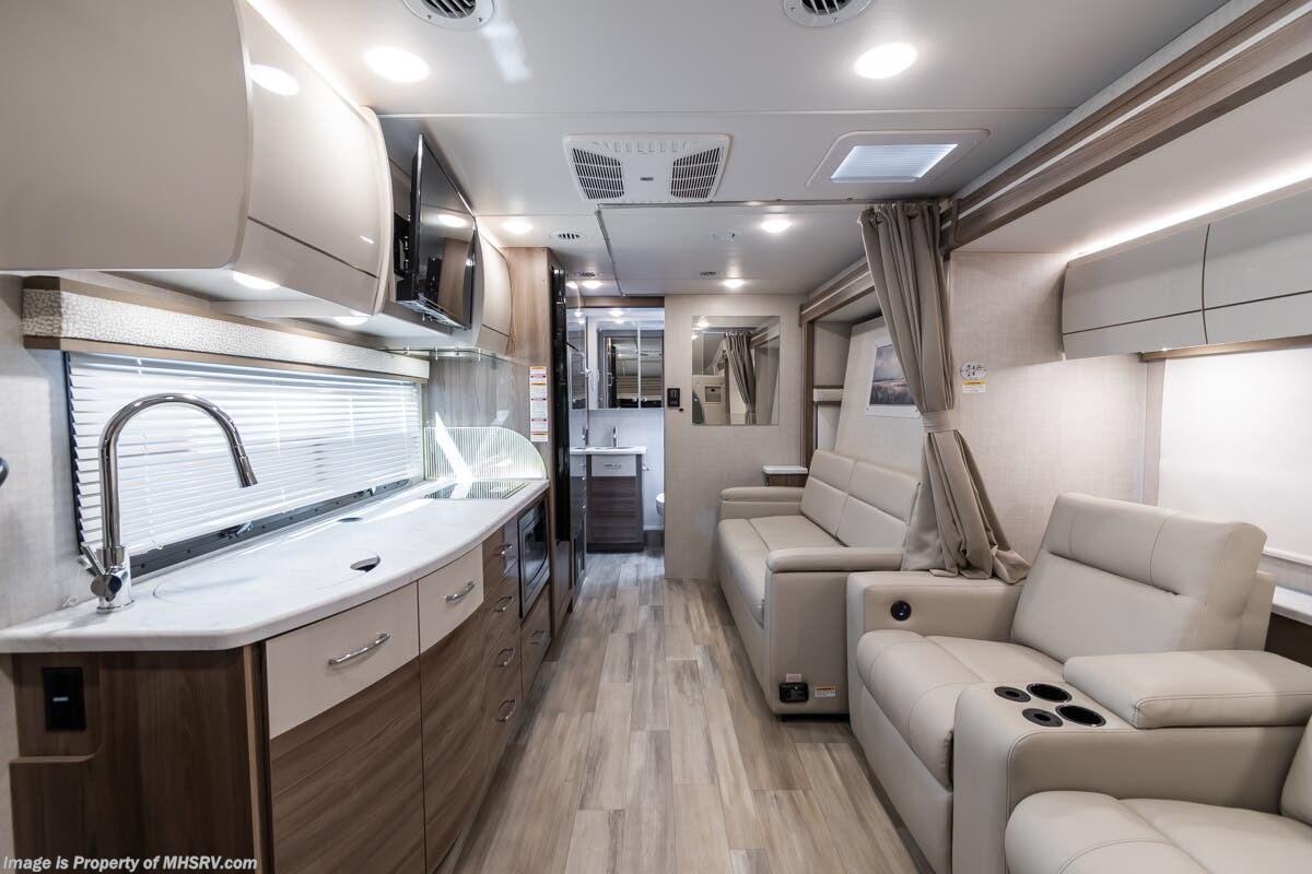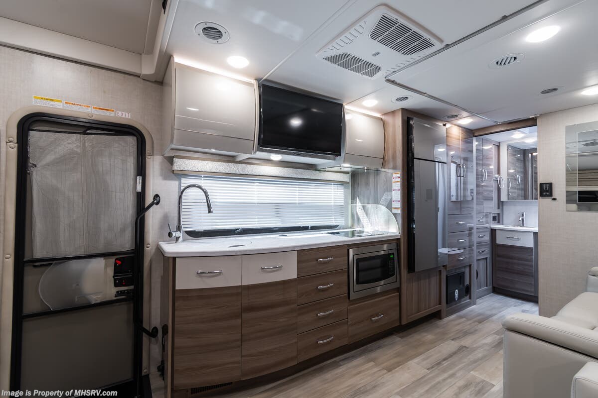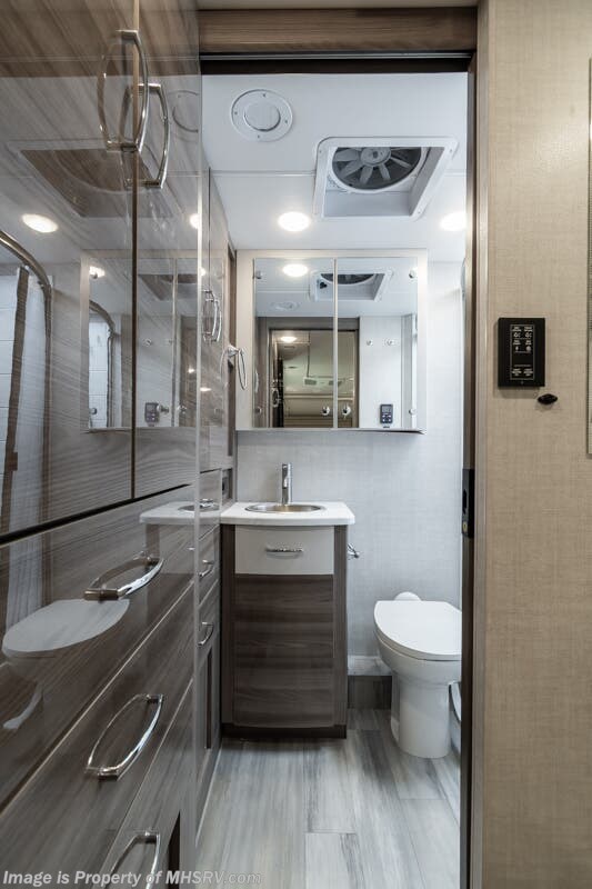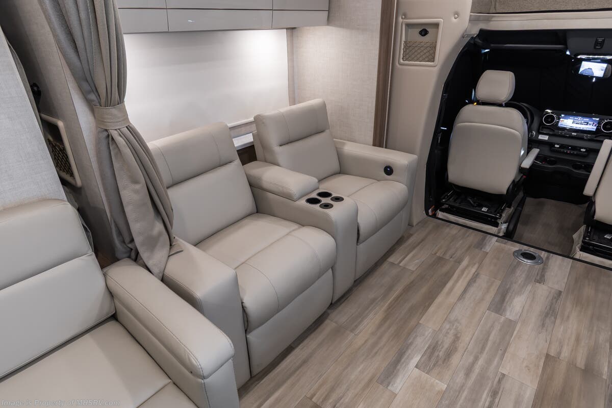 More About This RV This RV features lippert leveling, full body paint, LP generator, Mercedes-Benz chassis, Mercedes-Benz diesel engine, tilt/telescoping steering wheel, smart wheel, GPS, power windows, water manifold, patio awning, baggade door side swing, LED running lights, black tank flush, exterior shower, clear paint mask, solar, inverter, leather seating, multi-plex control panel, hardwood cabinets, convection microwave, solid surface counters, overhead loft, theater seats and much more
