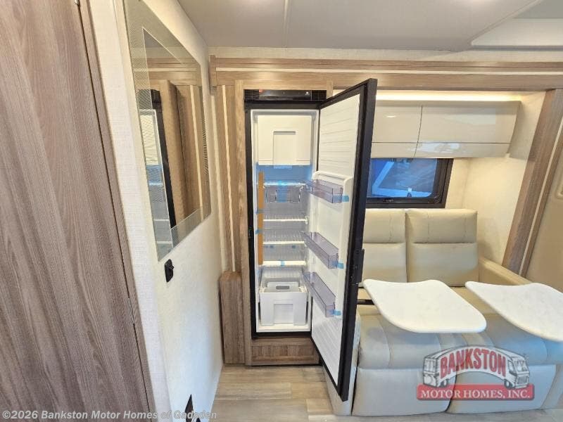 Luxury comes standard in the Delano Sprinter Class C diesel motorhomes by Thor Motor Coach. You will find it so easy to maneuver the road with the Mercedes-Benz Safety package that includes features such as active braking assist and distance regulator distronic plus that will help keep a safe distance from vehicles in front of you, and you can add the optional blind spot detection system for even more convenience. The frameless windows and the full-body paint package with gel coated sidewalls is sure to be eye-catching, plus there is invisible front paint protection for added defense against the elements. Each model includes the Rapid Camp+ multiplex wiring control system that will make set-up easier than ever, a Winegard ConnecT 2.0 WiFi/4G/TV antenna to keep you connected to the outside world, and premium one-piece Crossflex roofing material that is ultra durable. The Delano Sprinter also includes many interior comforts, like the easy-to-clean residential vinyl flooring, the Euro-style cabinetry, and the Leatherette furniture!