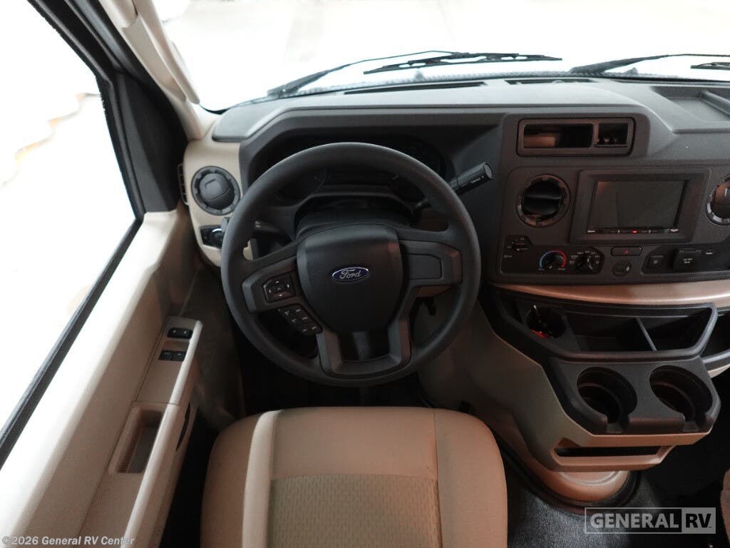 The Thor Motor Coach Four Winds 19Z is a compact Class C motorhome designed for travelers seeking a balance between maneuverability and comfort. Built on the Ford® E-Series chassis, it is powered by a 7.3L V8 engine delivering 325 horsepower and 450 lb-ft of torque, ensuring a robust and reliable driving experience. Measuring approximately 20 feet 5 inches in length, the 19Z offers ease of handling, making it suitable for both city driving and open-road adventures. Inside, the Four Winds 19Z features a well-thought-out floor plan that maximizes space and functionality. The rear of the motorhome houses a comfortable dinette that can be converted into a sleeping area, providing flexibility for dining and rest. The kitchen is equipped with essential appliances, including a refrigerator, microwave oven, and a two-burner gas cooktop, facilitating convenient meal preparation on the go. A compact bathroom offers necessary amenities without occupying excessive space. Additional features such as a 7-inch touchscreen dash radio with Bluetooth®, Android Auto™, and Apple CarPlay® compatibility enhance the overall travel experience, making the Four Winds 19Z a practical choice for those seeking adventure without compromising on comfort.