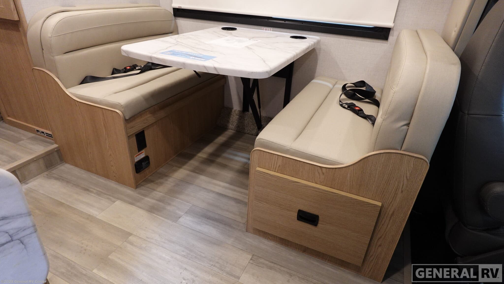 Thor Motor Coach Four Winds ESpec Class C gas motorhome 22Z Chevy highlights: RV Queen Bed Slide Closet Dream Dinette Cab-Over Bunk It won't be hard to find comfort in this coach for five! You can freshen up in the rear corner full bath once you've set up camp, then make lunch on the two burner gas cooktop or convection microwave with an air fryer. There is also a 12V refrigerator for cold items and a flip-up countertop for more space. Whether you dine at the Dream Dinette or take your plate outdoors under the 15' power awning, you're sure to have a great time in this motorhome. There is a semi-private bedroom with a 60" x 74" RV queen bed slide and bedroom TV prep if you want the option to watch movies in bed. And your guests can take the Dream Dinette and cab-over bunk at night! With any Four Winds ESpec Class C gas motorhome by Thor Motor Coach, you will find convenient amenities, a modern interior, and a reliable chassis. There is welded tubular aluminum roof and sidewall cage construction, a one-piece fiberglass front cap, and a one-piece domed roof membrane for added strength. Residential vinyl flooring will be easy to keep clean, and you'll love the sleek look of the Hampton Collection, two-toned cabinets. These motorhomes also include a 50 state 4.0 kW dual gas/LP generator and a 30-amp shoreline power cord to keep you going, along with a tankless water heater and 13,500 roof front A/C to ensure your comfort!