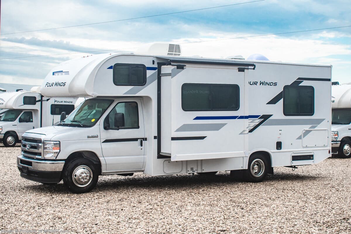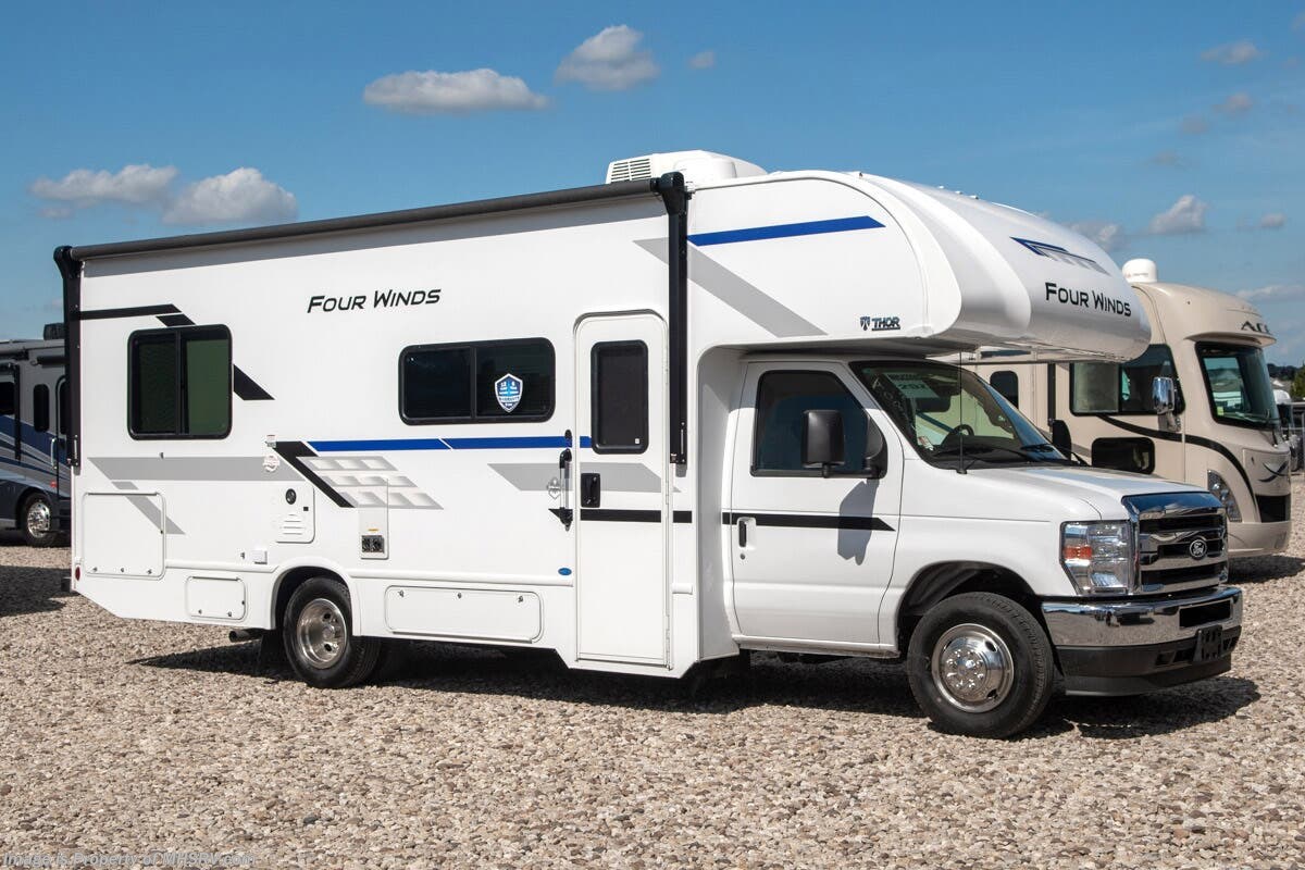 MSRP $145,446. The new 2026 Thor Motor Coach Four Winds Class C RV 25Z is approximately 26 feet 5 inches in length featuring the new Ford chassis. The Four Winds RV has an incredible list of standard features including twin bed king conversion, power windows and locks, power patio awning with integrated LED lighting, in-dash media center AM/FM & Bluetooth, power vent in bath, skylight above shower, cab A/C and so much more. Optional features include the 50 state California compliant Gas/LP generator. Shop hundreds of class C gas RVs at 1 location! Choose from Fleetwood Altitude - Gulf Stream BT Cruiser - Thor Chateau - Four Winds - Geneva and Quantum - Entegra Coach Odyssey Odyssey SE and Esteem - East to West Entrada - Forest River Forester - Forester LE - Nexus Phantom - Viper and much more. We also sell quality pre-owned models such as Jayco Greyhawk – Redhawk - Redhawk SE - Thor Magnitude - Winnebago Spirit - and Minnie Winnie - Coachmen Freelander and Leprechaun - Forest River Sunseeker Classic - Sunseeker LE – Solera - Holiday Rambler Incline and much more. Visit for our complete line-up and the sale prices that have made us the #1 volume selling motor home dealership in the world 12 years in a row! For additional details on this unit and our entire inventory including brochures, window sticker, videos, photos, reviews & testimonials as well as additional information about Motor Home Specialist and our manufacturers please visit us at or call 800-335-6054. At Motor Home Specialist, we DO NOT charge any prep or orientation fees like you will find at other dealerships. All sale prices include a 200-point inspection, interior & exterior wash, detail service and a fully automated high-pressure rain booth test and coach wash that is a standout service unlike that of any other in the industry. You will also receive a thorough coach orientation with an MHSRV technician, a night stay in our delivery park featuring landscaped and covered pads with full hook-ups and much more! Read Thousands upon Thousands of 5-Star Reviews at and See What They Had to Say About Their Experience at Motor Home Specialist. WHY PAY MORE? WHY SETTLE FOR LESS?