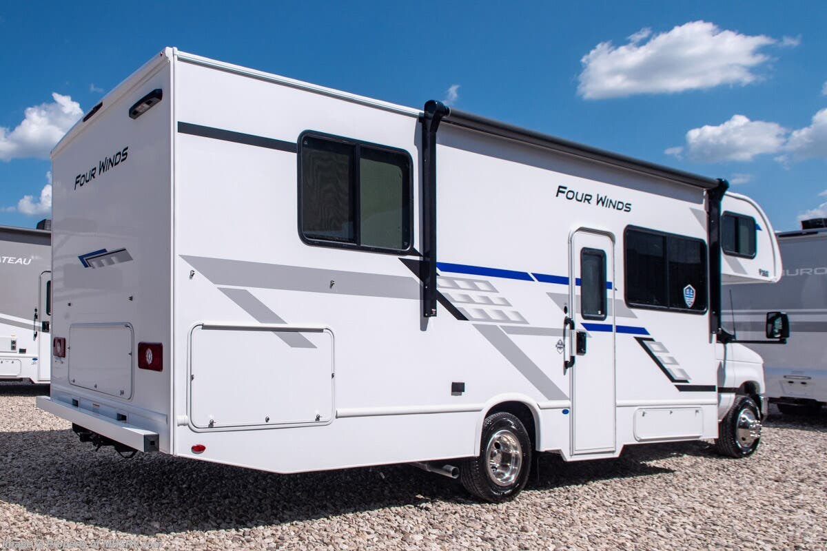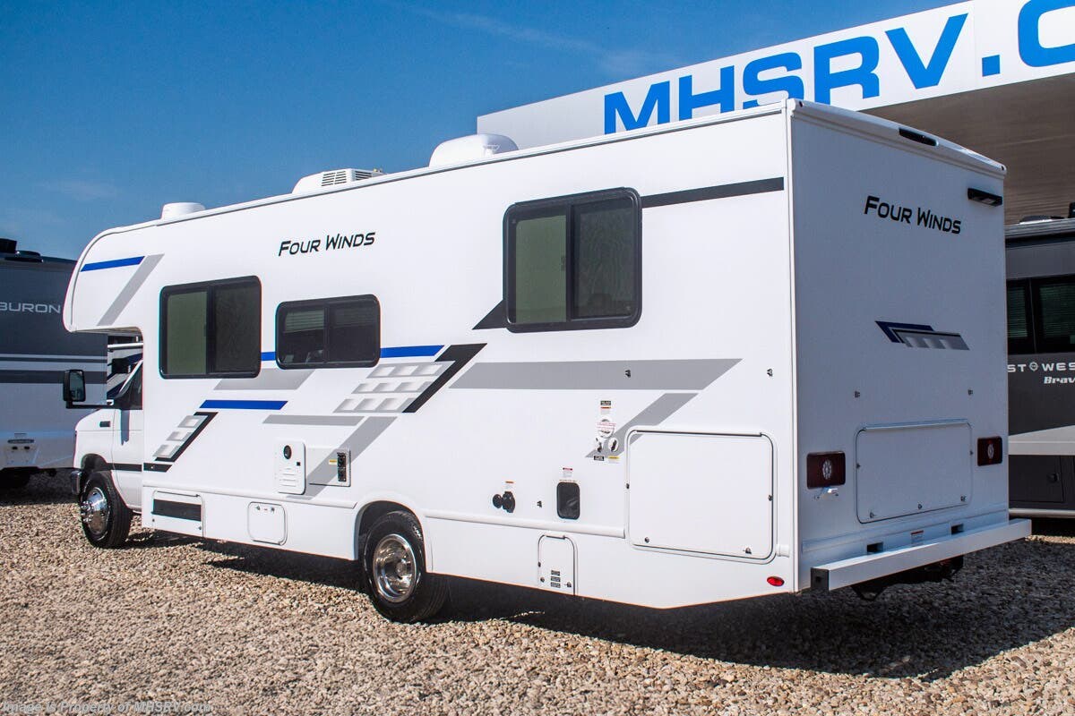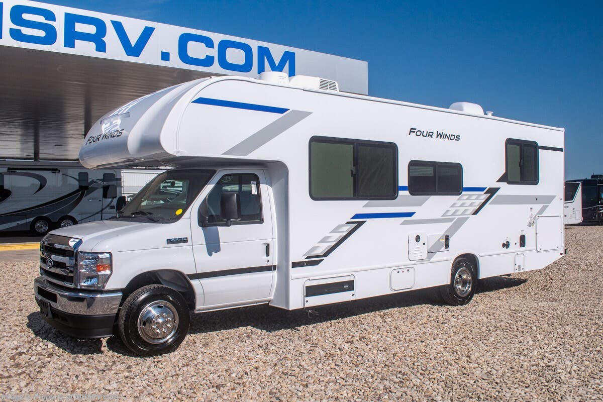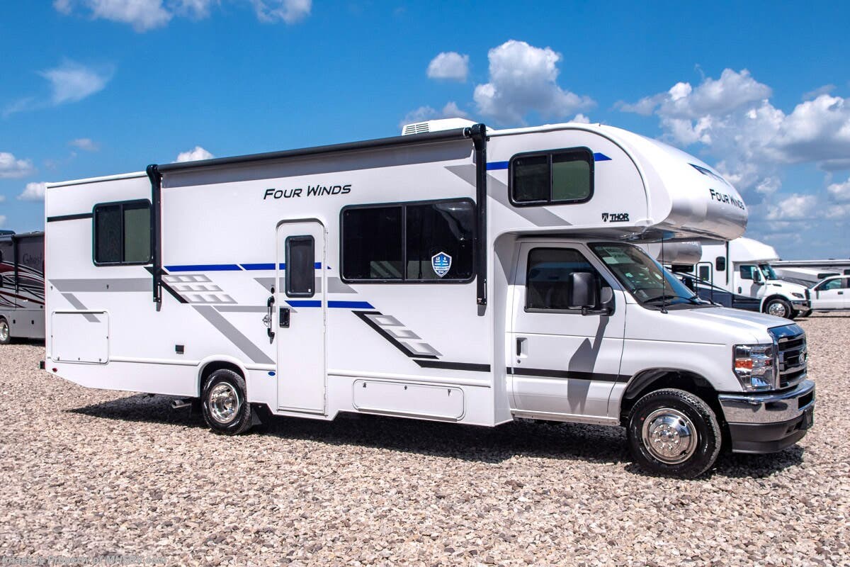 MSRP $146,846. New 2026 Thor Motor Coach Four Winds® 28G. Shop hundreds of class C gas RVs at 1 location! Choose from Fleetwood Altitude - Gulf Stream BT Cruiser - Thor Chateau - Four Winds - Geneva and Quantum - Entegra Coach Odyssey Odyssey SE and Esteem - East to West Entrada - Forest River Forester - Forester LE - Nexus Phantom - Viper and much more. We also sell quality pre-owned models such as Jayco Greyhawk – Redhawk - Redhawk SE - Thor Magnitude - Winnebago Spirit - and Minnie Winnie - Coachmen Freelander and Leprechaun - Forest River Sunseeker Classic - Sunseeker LE – Solera - Holiday Rambler Incline and much more. Visit for our complete line-up and the sale prices that have made us the #1 volume selling motor home dealership in the world 12 years in a row! About This RV This affordable, full-size luxury Class C RV floorplan is now available for the first time at Motor Home Specialist. It measures approximately 29 feet 9 inches in length providing a tremendous amount of sleeping, dining and living space while still remaining compact enough for most any state park and exceptional maneuverability even for first time RVers! This features the Ford E-Series Chassis and the Ford 7.3L V8. 325HP engine with 450 lb.-ft Torque w/TPM's. Additional features and construction highlights include an 84 inch ceiling heights, an extra-large LED TV on swivel, 12V outlet in the bedroom for CPAP, USB ports, large refrigerator, stainless steel wheel liners, Wingard® ConnecT™ WiFi / 4G / TV antenna, Vacu-Bond® laminated roof, walls and floor, a one-piece fiberglass front cap, Thor’s MEGA-Storage® exterior compartment and portable table, lighted Rotocast storage compartments, power patio awning with integrated LED lighting, touchscreen dash radio with back-up monitor, living area speaker tied into dash radio, running boards, LED taillights, emergency start switch, solar prep, residential flooring, LED interior lighting, cab-over sleeping area with cup holders and bunk ladder, leatherette jack-knife sofa/sleeper, privacy shades, full extension drawer glides, queen size master bed with designer bedspread and shams, gas and electric water heater and a premium leatherette Dream Dinette®. About Us For more details on this unit, our full inventory, brochures, window stickers, videos, photos, and customer reviews, visit or call 800-335-6054. At Motor Home Specialist, we never charge prep or orientation fees. Every new RV sale includes a multi-point inspection, full interior and exterior detail, and a high-pressure rain booth test—an exclusive service in the industry. You'll also receive a comprehensive coach orientation with an MHSRV technician and a complimentary night in our delivery park with full hook-ups. --Why Pay More? Why Settle for Less?—