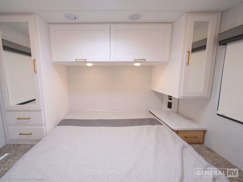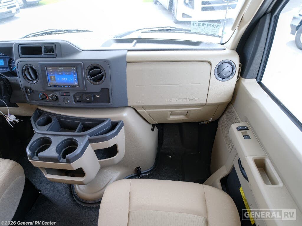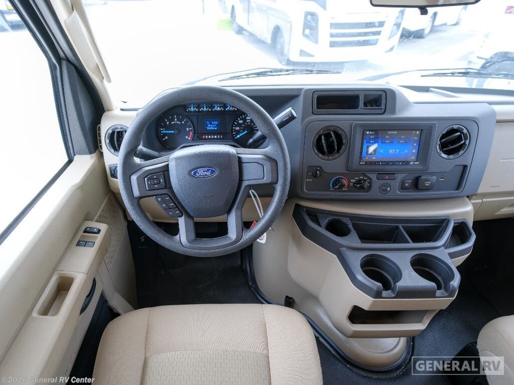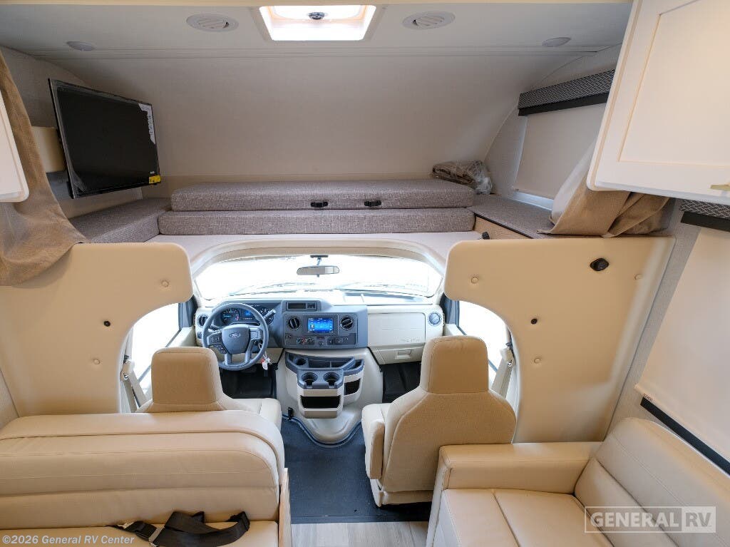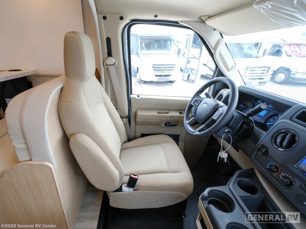 Experience the open road like never before in the 2026 Thor Motor Coach Four Winds 28G. This motorhome is designed to be your perfect travel companion, offering a seamless blend of comfort and functionality. With a spacious interior that accommodates up to eight sleepers, it features a cozy queen bed in the rear bedroom, a versatile cab-over bunk, and convertible sleeping options in the living area. The center kitchen is thoughtfully equipped with a convection cooktop and a full-size electric refrigerator, making meal preparation a breeze during your adventures. As you explore the thoughtfully designed layout, you'll find a front living area that invites relaxation with its 68" sofa and 70" dream dinette. The center bath, complete with a curtain shower, ensures convenience and privacy. Outside, the 14 ft. powered retractable awning offers the perfect spot to unwind and enjoy the scenery. Built on a robust Ford E350 chassis, powered by a 325-horsepower engine, and capable of towing up to 8,000 pounds, this RV is ready to take you wherever your heart desires. For more information, visit your nearest General RV dealership.