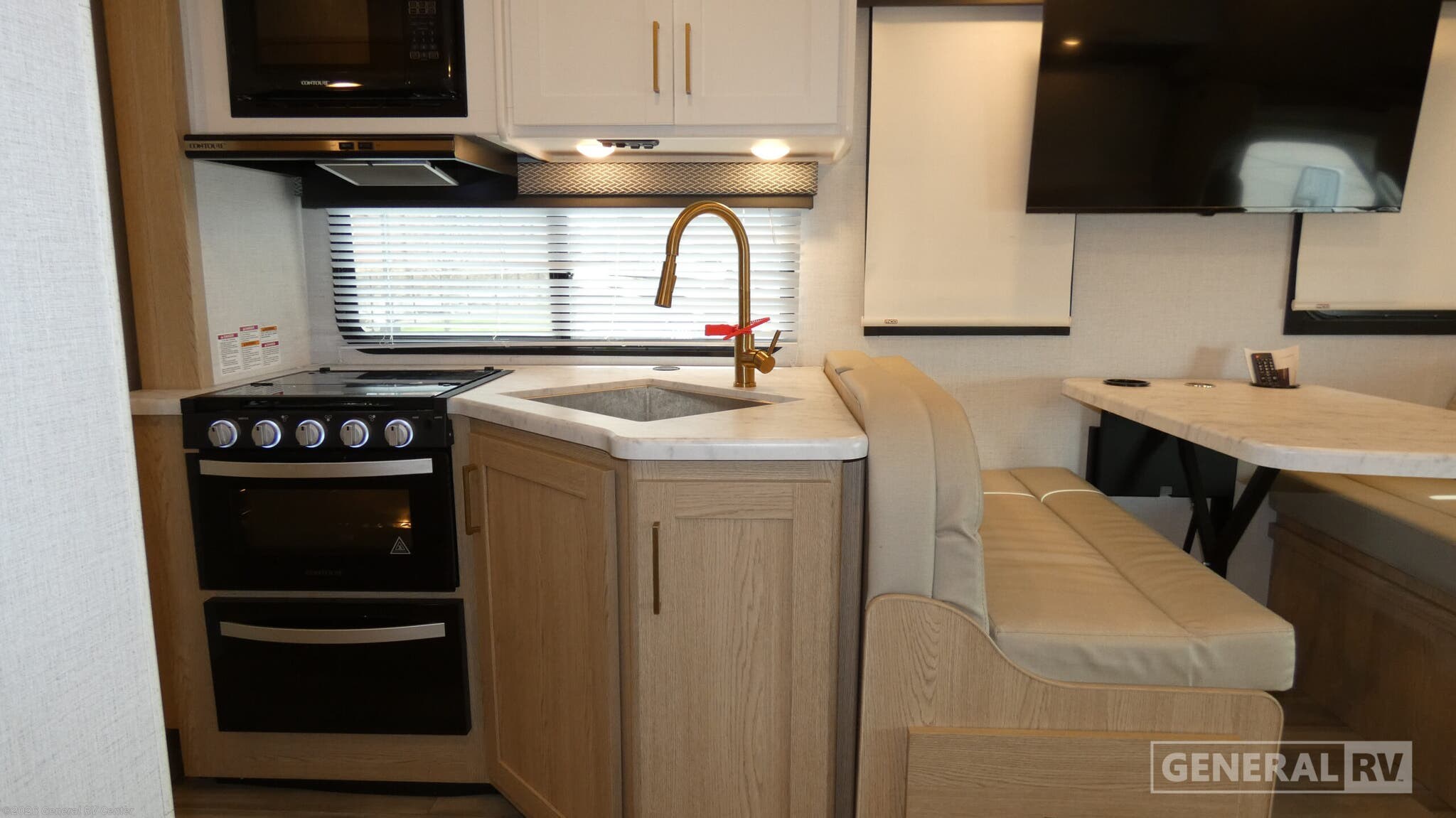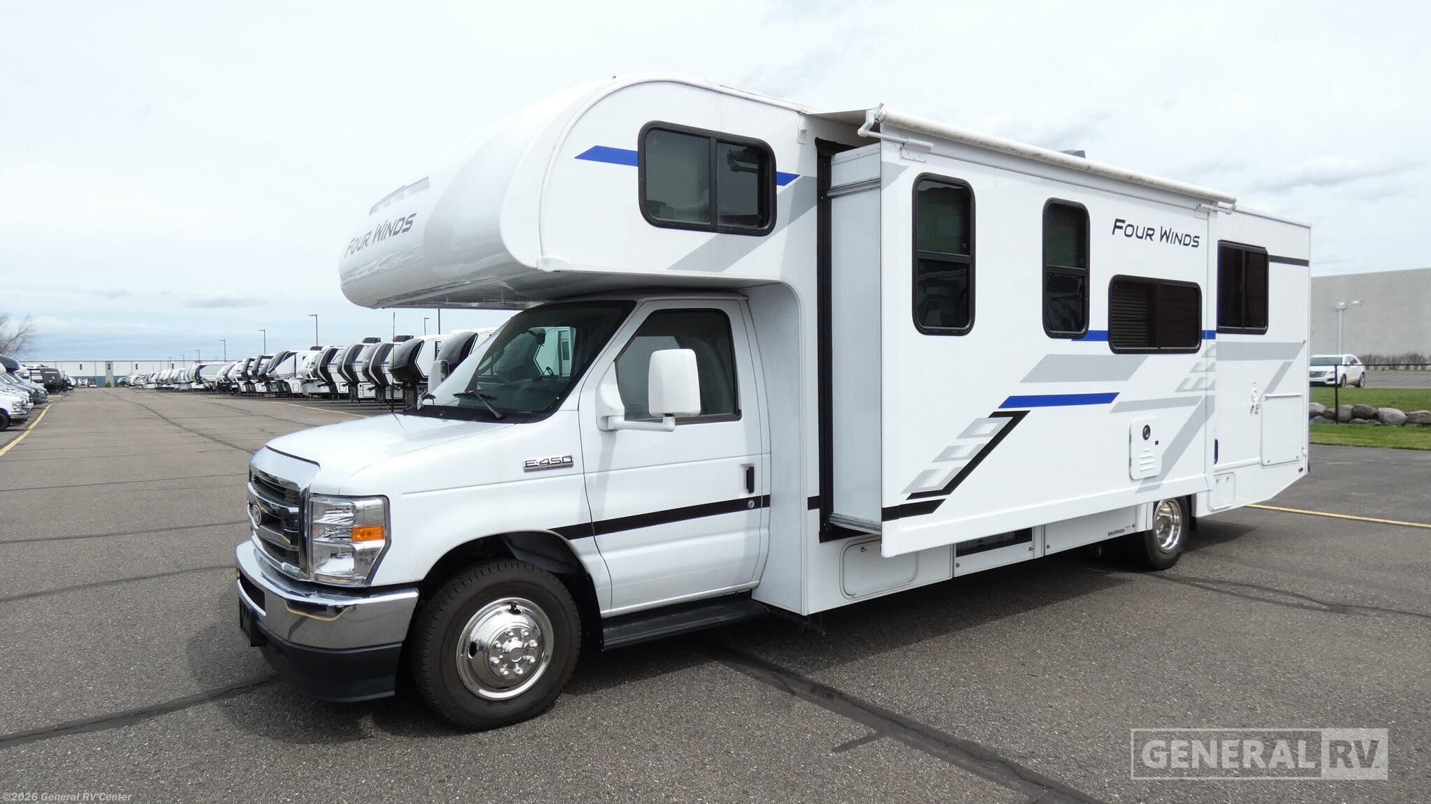 Thor Motor Coach Four Winds Class C gas motorhome 28Z highlights: Walk-Around Queen Bed Mid-Coach Entry 68" Jackknife Sofa Cab Over Bunk USB Charging Center Exterior MEGA-Storage Perfect for a couple or a growing family, this coach will allow you to enjoy inside comforts and outdoor scenery where ever you drive and park! You will have great views out of the many windows when you are indoors, and the power awning offers an outdoor living area protected by the elements when you want some fresh air. The cook will love the large single bowl stainless steel sink with a single handle faucet with a pull-down sprayer when cleaning fruits and veggies, the gas cooktop and microwave when making meals, as well as the 12V refrigerator to hold all the cold items. The slide out creates even more floor space, the furniture offers a place to dine and visit as well as sleep, and the private bedroom with a full bathroom just steps away will complete the deal! With any Four Winds Class C gas motorhome, you can travel in a trustworthy Ford E-Series chassis with 325HP. Each is built with welded sidewall cage construction and a welded tubular aluminum roof, a one-piece fiberglass cap, and includes a slick fiberglass exterior with graphics package for style and years of enjoyment on the open road. Inside, you will enjoy the well-equipped kitchen, the spacious bathroom, the sleeping accommodations and the Winegard ConnecT 2.0 WiFi/4G/TV antenna that allows you to stay connected. With several floorplans to choose from and options to add, you will surely find one that fits your family's needs or your friend's approval. Choose today!