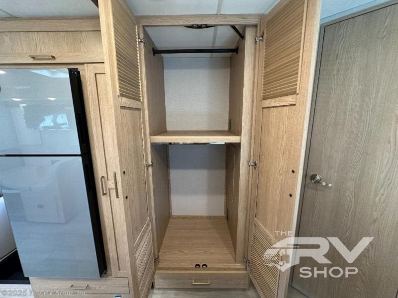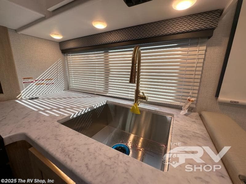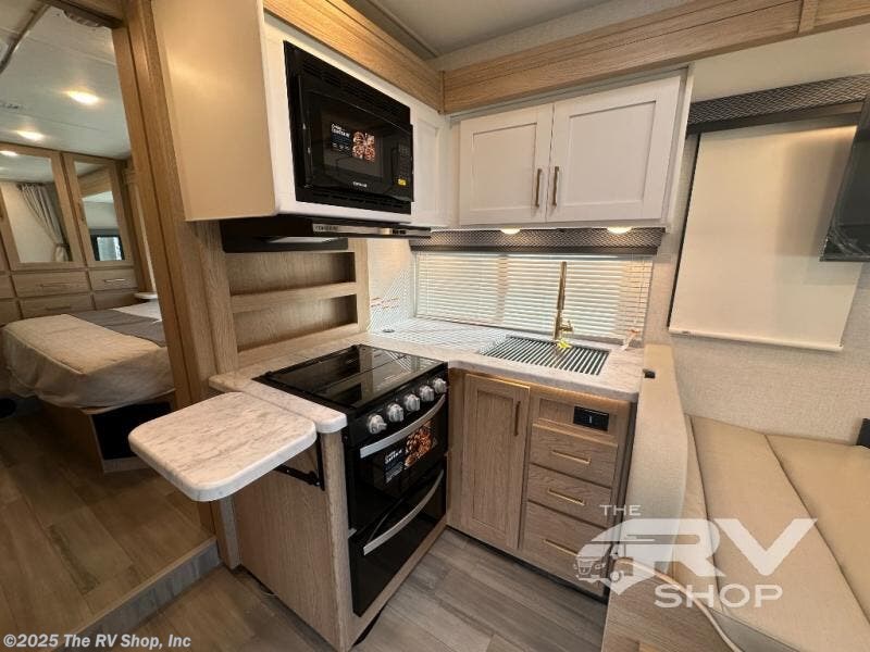 Easily head out for fun at a state park, the lake or your friend's ranch. This coach is easy to maneuver on the road or in town thanks to its compact size, yet has so many conveniences, you might not return home. The front cab over bunk is a perfect sleeping space for guests, the 40" Smart TV allows you to watch shows when you want some inside time, and the 71" Dream Dinette gives you a place to dine and relax. The cook will love all the kitchen amenities at their fingertips, plus the flip-up countertop extension is super handy. The rear corner bedroom offers a king bed slide for more floor space, a privacy curtain and a closet, plus the full bathroom is a few steps away.