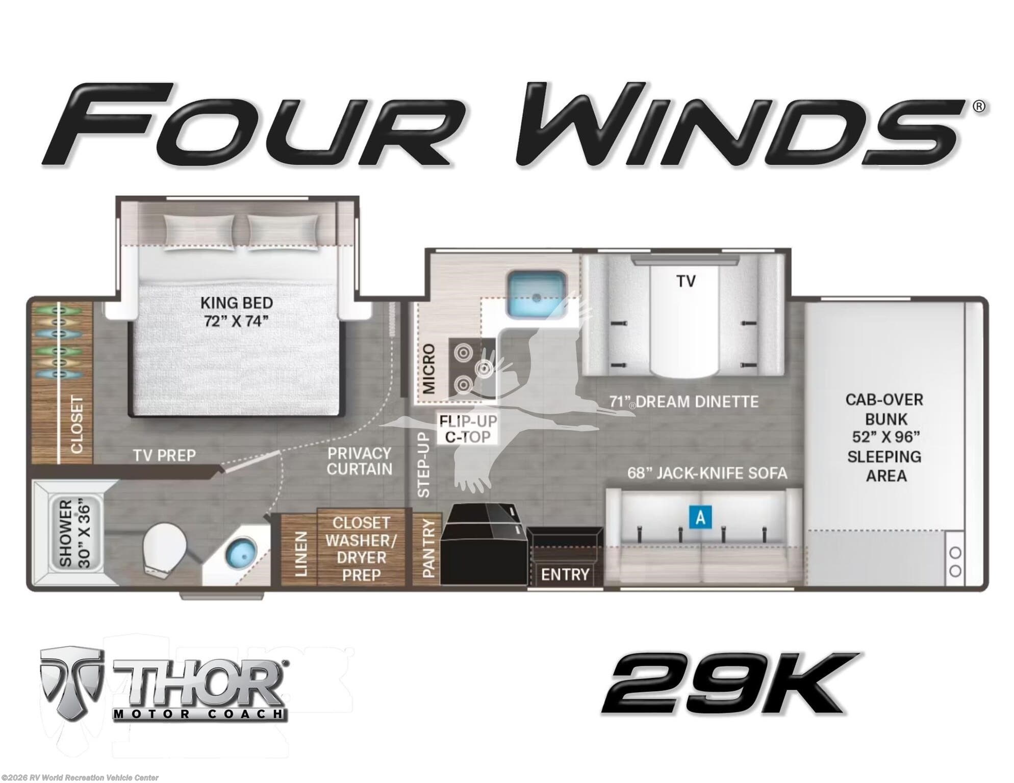 Request More Info on this 2026 Thor Motor Coach Four Winds 29K Offered for sale by RV World Recreation Vehicle Center