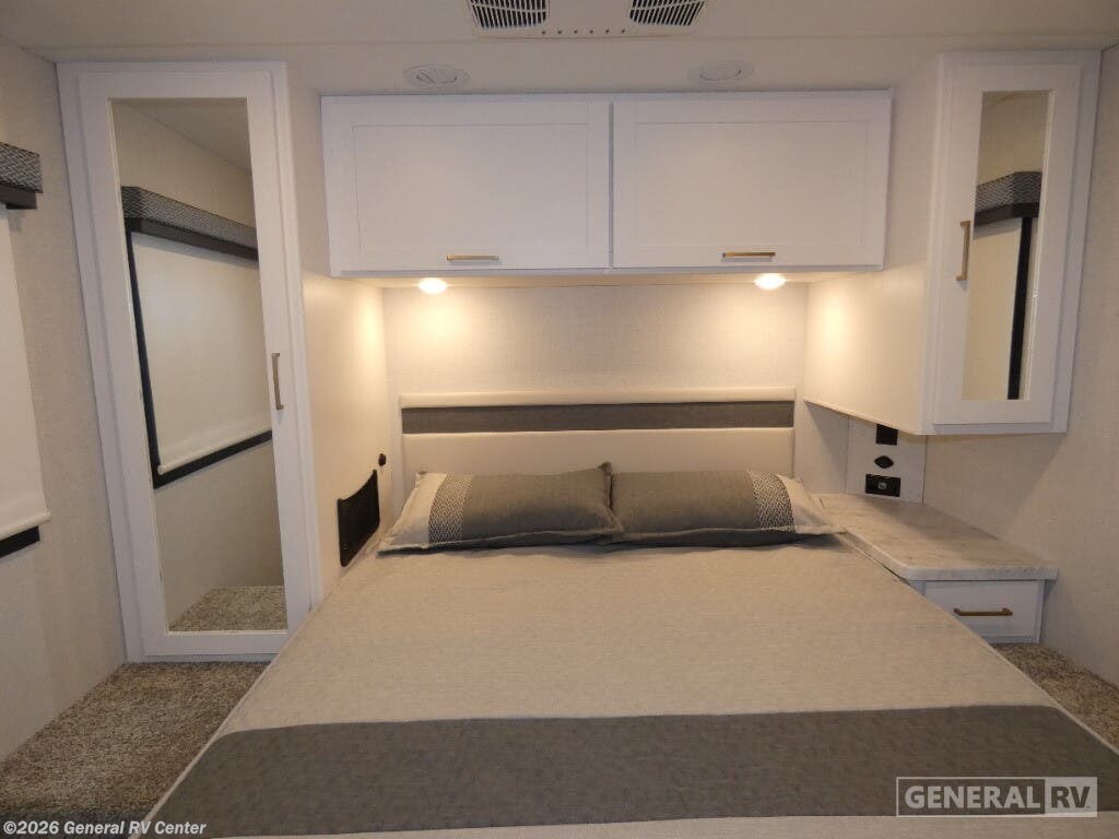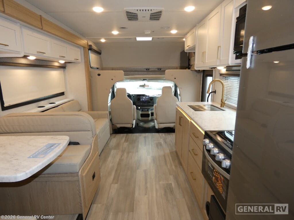Discover the 2026 Thor Motor Coach Four Winds 31H, where comfort meets adventure in a beautifully designed motorhome. With a spacious layout that accommodates up to eight sleepers, this RV ensures everyone can rest easy. The inviting queen bed in the rear bedroom offers a serene retreat, while the cab-over bunk and convertible options provide ample sleeping space for family and friends. The front living area, featuring a 66" jack-knife sofa and a 71" dream dinette, is perfect for relaxing or entertaining, making every journey as enjoyable as the destination. The center kitchen is equipped with a full-size electric refrigerator and a three-burner cooktop, ready to inspire your culinary creations on the road. The thoughtfully designed center bath ensures convenience and privacy, with a shower that complements the practical layout. The 16 ft. powered retractable awning invites you to enjoy the outdoors, creating a perfect setting for relaxation under the stars. Built on a robust Ford E350 chassis and powered by a 325-horsepower engine, the Four Winds 31H combines performance with luxury, making it the ideal choice for those who seek both adventure and comfort. For more details or to experience this RV in person, visit your nearest General RV dealership.