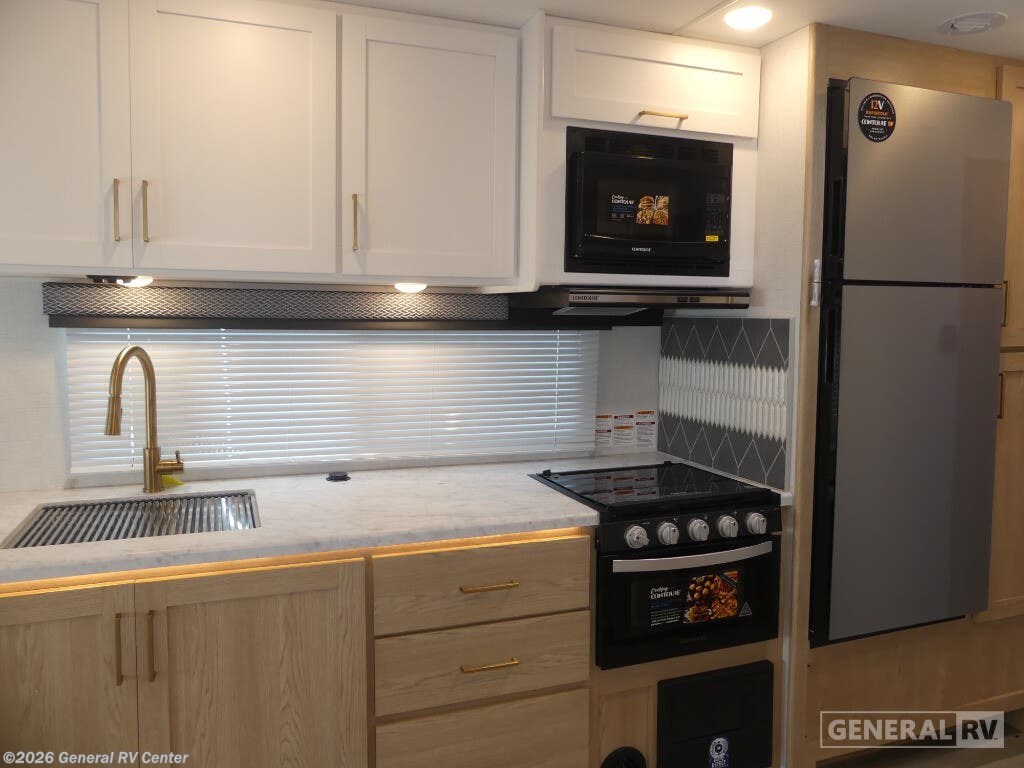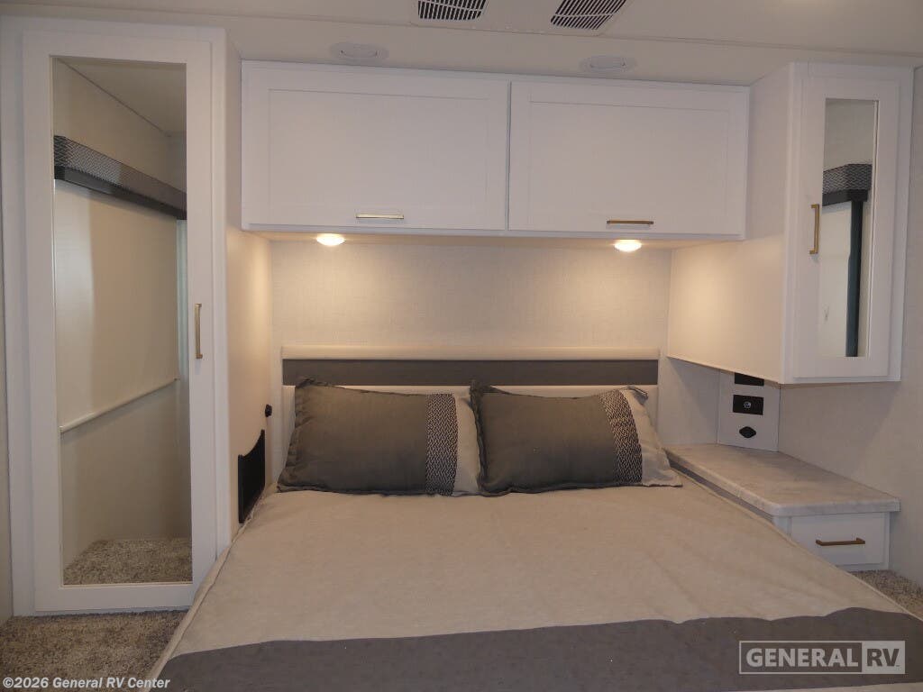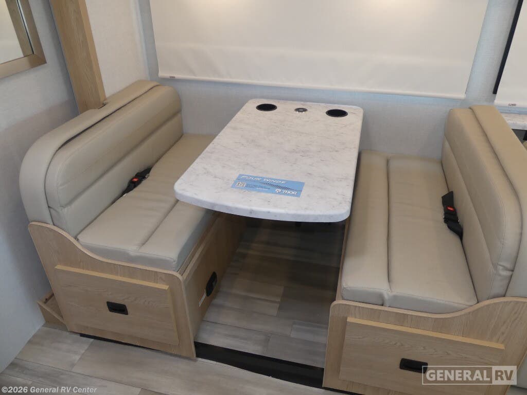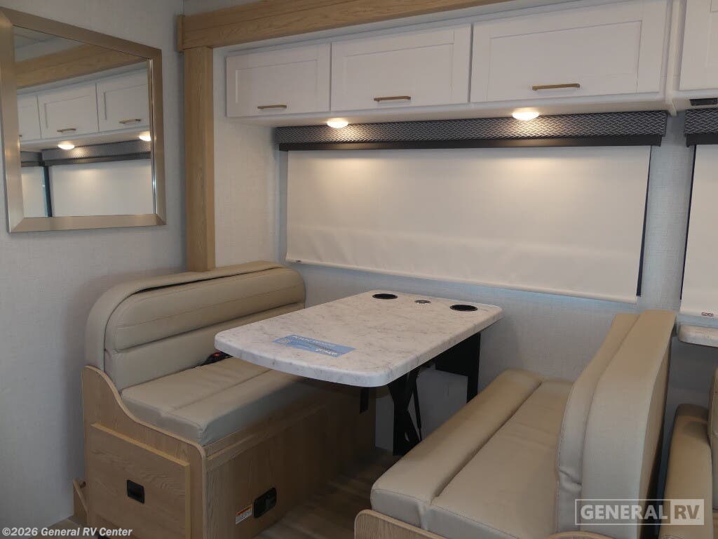 Discover the 2026 Thor Motor Coach Four Winds 31H, where comfort meets adventure in a beautifully designed motorhome. With a spacious layout that accommodates up to eight sleepers, this RV ensures everyone can rest easy. The inviting queen bed in the rear bedroom offers a serene retreat, while the cab-over bunk and convertible options provide ample sleeping space for family and friends. The front living area, featuring a 66" jack-knife sofa and a 71" dream dinette, is perfect for relaxing or entertaining, making every journey as enjoyable as the destination. The center kitchen is equipped with a full-size electric refrigerator and a three-burner cooktop, ready to inspire your culinary creations on the road. The thoughtfully designed center bath ensures convenience and privacy, with a shower that complements the practical layout. The 16 ft. powered retractable awning invites you to enjoy the outdoors, creating a perfect setting for relaxation under the stars. Built on a robust Ford E350 chassis and powered by a 325-horsepower engine, the Four Winds 31H combines performance with luxury, making it the ideal choice for those who seek both adventure and comfort. For more details or to experience this RV in person, visit your nearest General RV dealership.