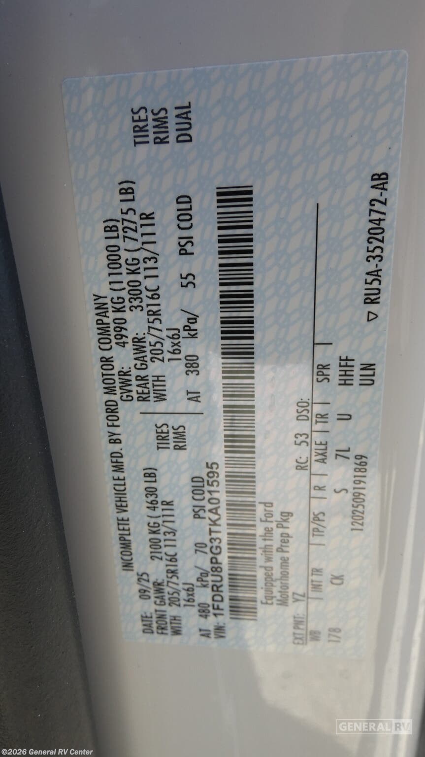 - VIN1FDRU8PG3TKA01595
