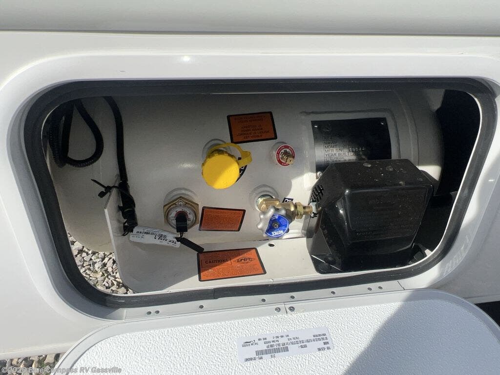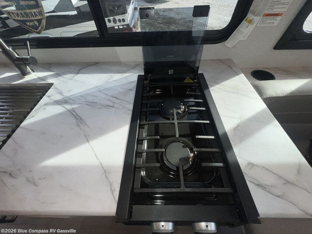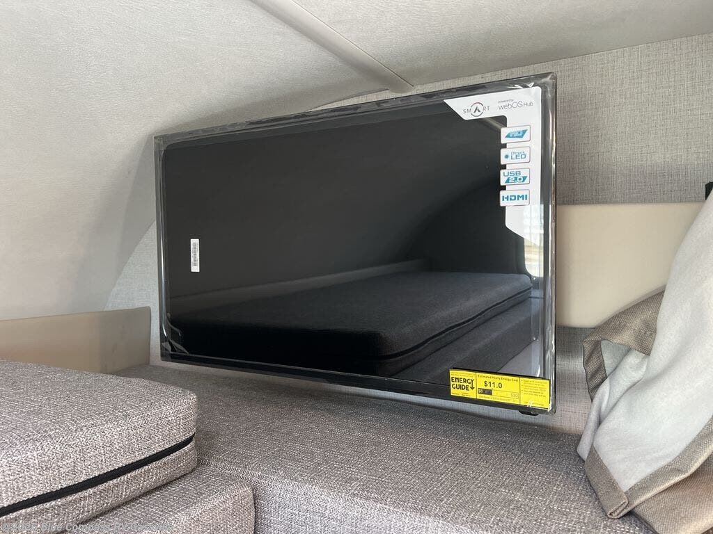 This cozy coach is perfect for three to four happy campers! Once you stop for the day, you can freshen up in the wet bath that includes a foot flush toilet, power vent, and shower skylight for more natural lighting. The two burner cooktop and convection microwave with an air fryer will let you make meals each day, and the 12V refrigerator will keep your food fresh. You'll also appreciate the flip-up countertop for more space to prep meals. There is a U-shaped dinette with a removable table that will convert to a 54" x 77" bed, while the little ones take the cab-over bunk with a 52" x 91" sleeping area.