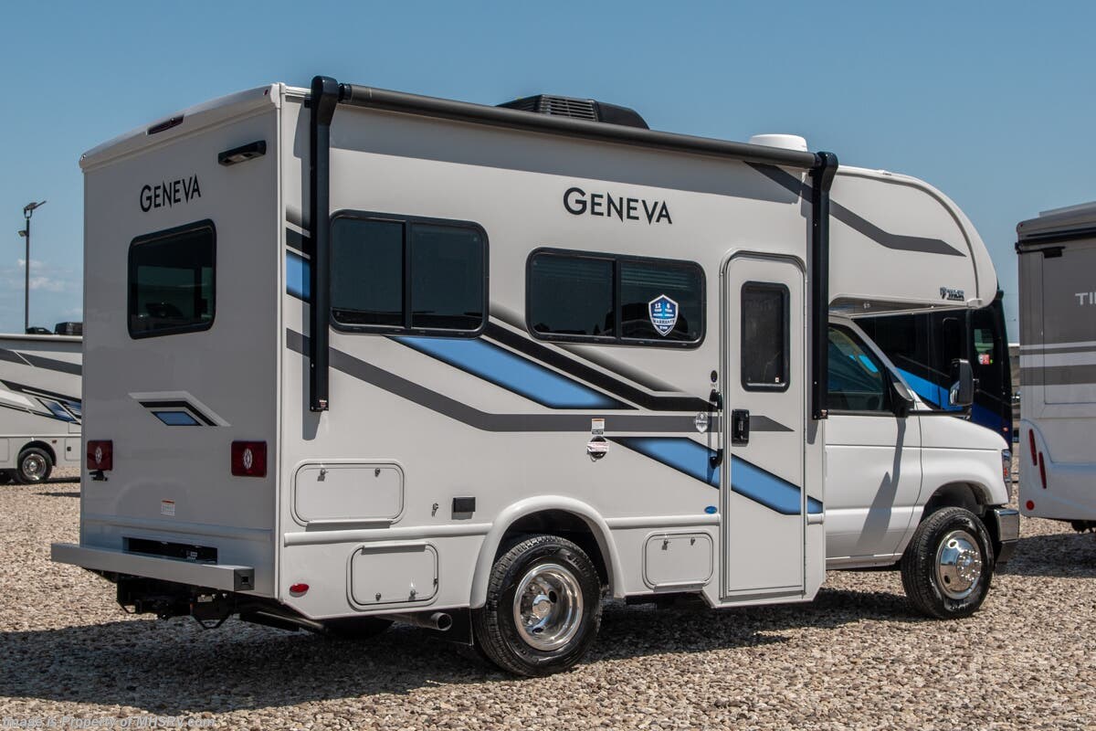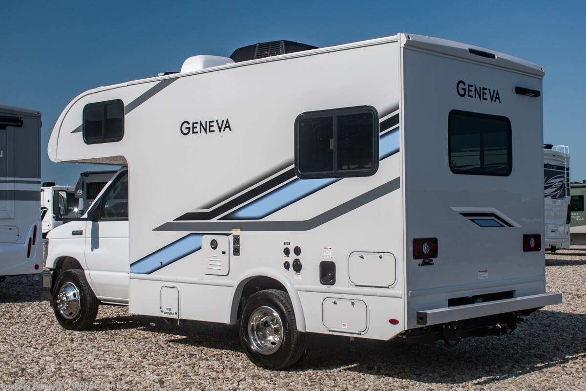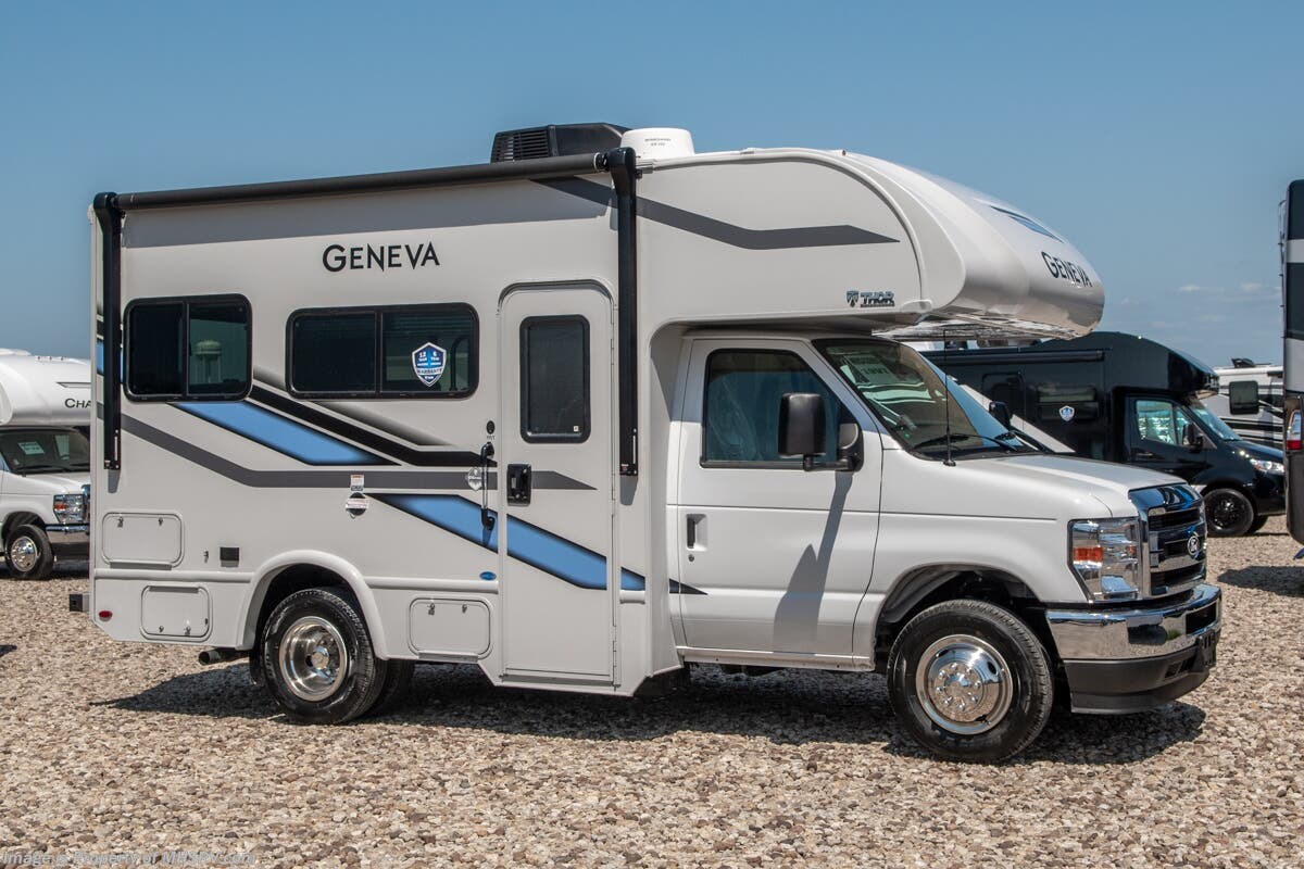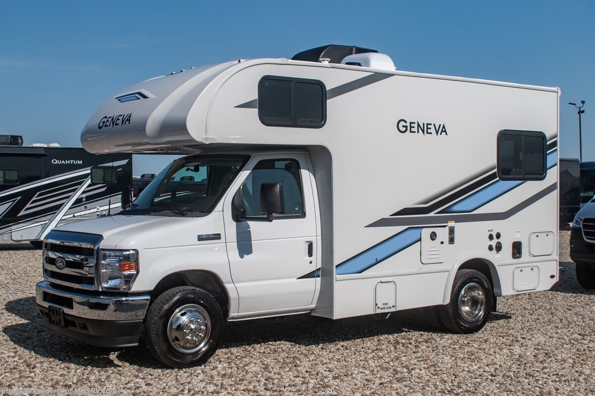 M.S.R.P. $125,846. Motor Home Specialist is proud to introduce the all-new Thor Motor Coach Geneva Shop hundreds of class C gas RVs at 1 location! Choose from Fleetwood Altitude - Gulf Stream BT Cruiser - Thor Chateau - Four Winds - Geneva and Quantum - Entegra Coach Odyssey Odyssey SE and Esteem - East to West Entrada - Forest River Forester - Forester LE - Nexus Phantom - Viper and much more. We also sell quality pre-owned models such as Jayco Greyhawk – Redhawk - Redhawk SE - Thor Magnitude - Winnebago Spirit - and Minnie Winnie - Coachmen Freelander and Leprechaun - Forest River Sunseeker Classic - Sunseeker LE – Solera - Holiday Rambler Incline and much more. Visit for our complete line-up and the sale prices that have made us the #1 volume selling motor home dealership in the world 12 years in a row! About This RV Thor Motor Coach Geneva 19VT. The Geneva is packed with features that include a Ford V8 engine, Steering wheel audio and camera control on the Ford chassis, SmoothTECH Suspension, touchscreen radio with Apple CarPlay & Android Auto, back-up monitor, stainless steel wheel liners, 12V refrigerator w/ auto generator start, 2 burner gas cooktop with glass cover, microwave oven and much more. About Us For more details on this unit, our full inventory, brochures, window stickers, videos, photos, and customer reviews, visit or call 800-335-6054. At Motor Home Specialist, we never charge prep or orientation fees. Every new RV sale includes a multi-point inspection, full interior and exterior detail, and a high-pressure rain booth test—an exclusive service in the industry. You'll also receive a comprehensive coach orientation with an MHSRV technician and a complimentary night in our delivery park with full hook-ups. --Why Pay More? Why Settle for Less?—