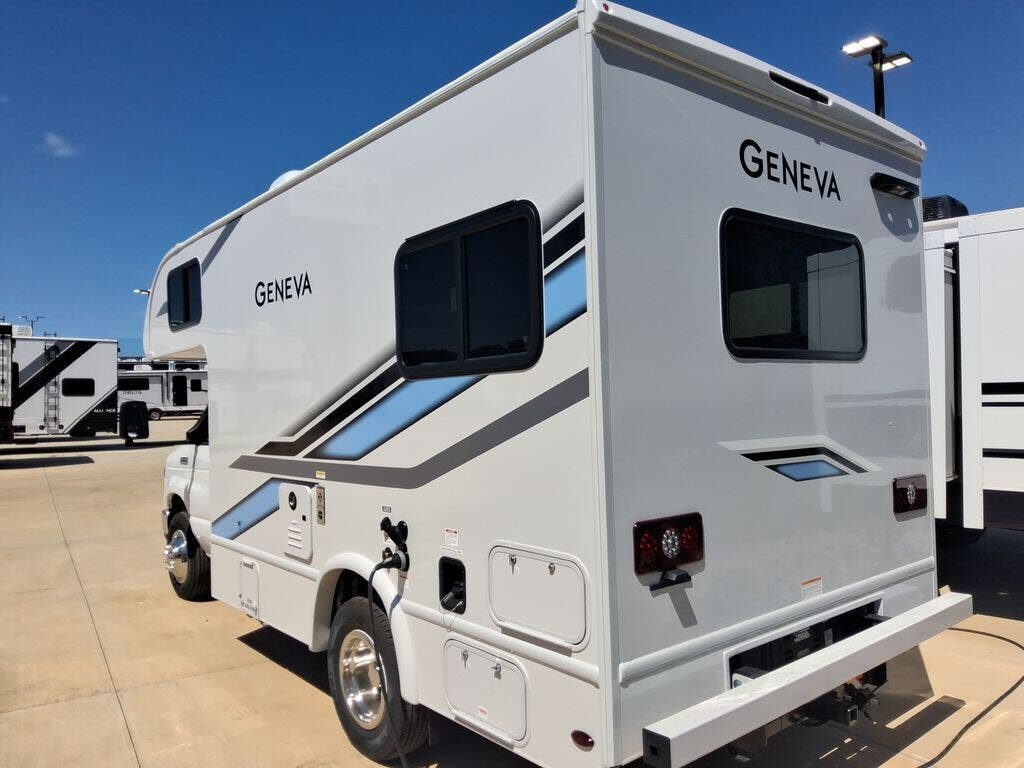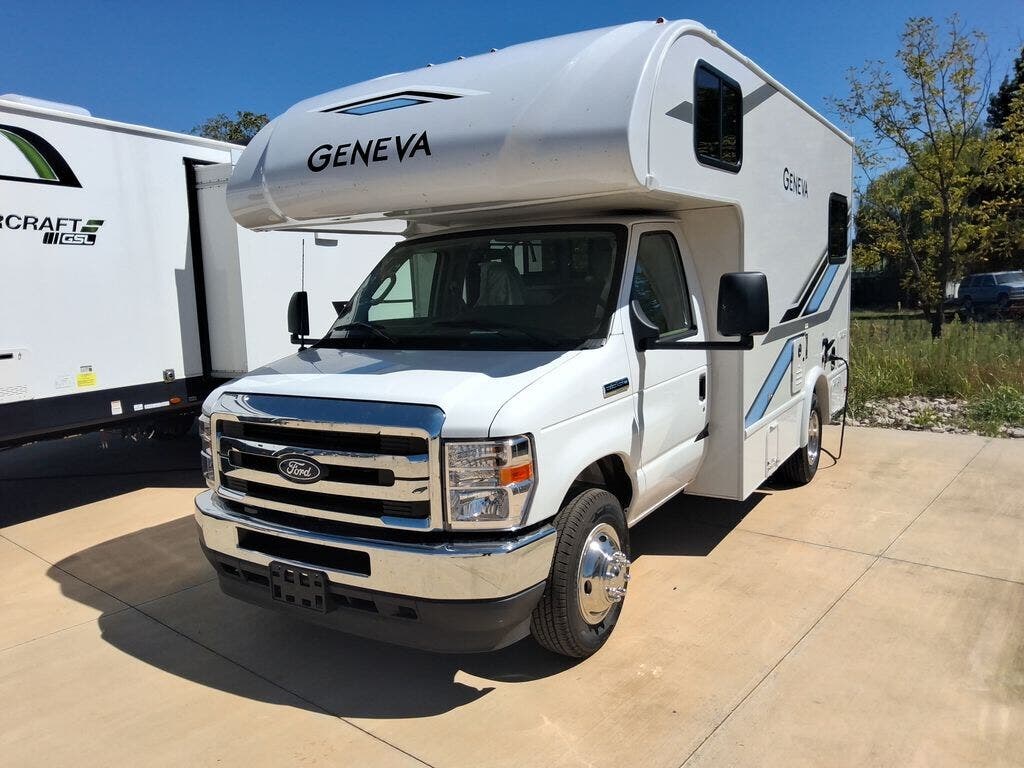 You will feel right at home in every one of these Thor Motor Coach Geneva Class C gas motorhomes! The Ford E-Series chassis holds them together and you can easily tow a car or trailer with the 8,000 lb. hitch. A premium one-piece roofing material and welded tubular aluminum roof and sidewall cage construction will hold up for years to come. Each model has unique living area arrangements, fully equipped kitchens, and residential vinyl flooring that are easy to clean. The touchscreen dash radio and back-up monitor lets you play your favorite tunes and prevent any bumps or dings. Come choose your favorite one today!