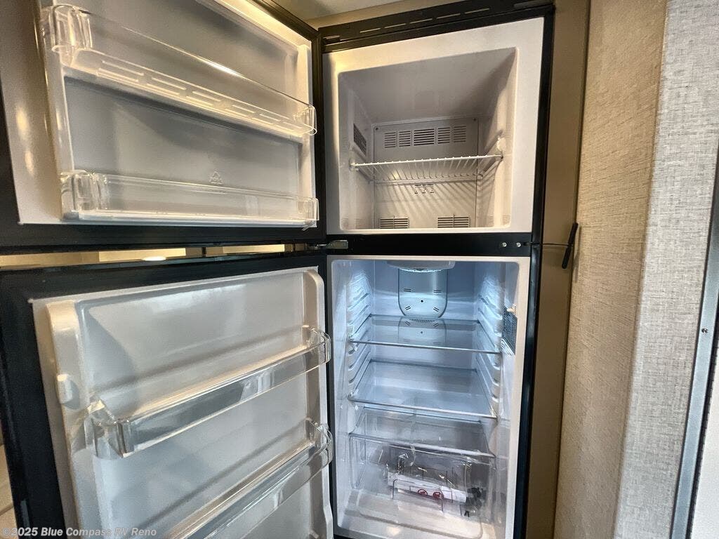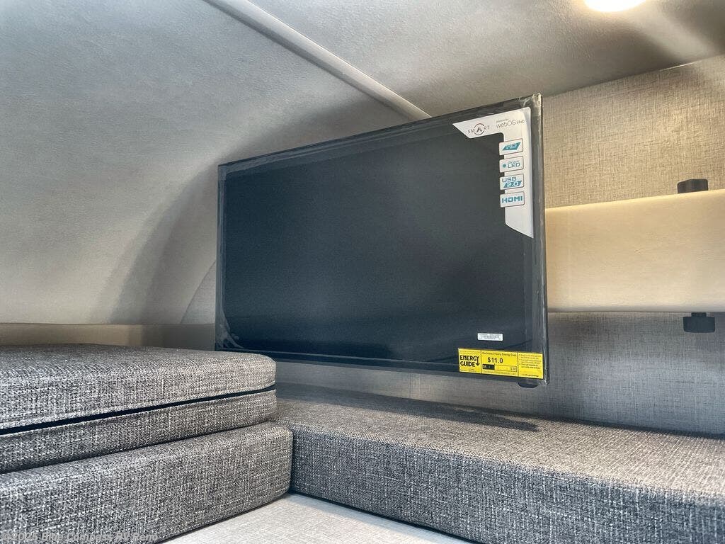 This cozy coach is perfect for three to four happy campers! Once you stop for the day, you can freshen up in the wet bath that includes a foot flush toilet, power vent, and shower skylight for more natural lighting. The two burner cooktop and convection microwave with an air fryer will let you make meals each day, and the 12V refrigerator will keep your food fresh. You'll also appreciate the flip-up countertop for more space to prep meals. There is a U-shaped dinette with a removable table that will convert to a 54" x 77" bed, while the little ones take the cab-over bunk with a 52" x 91" sleeping area.