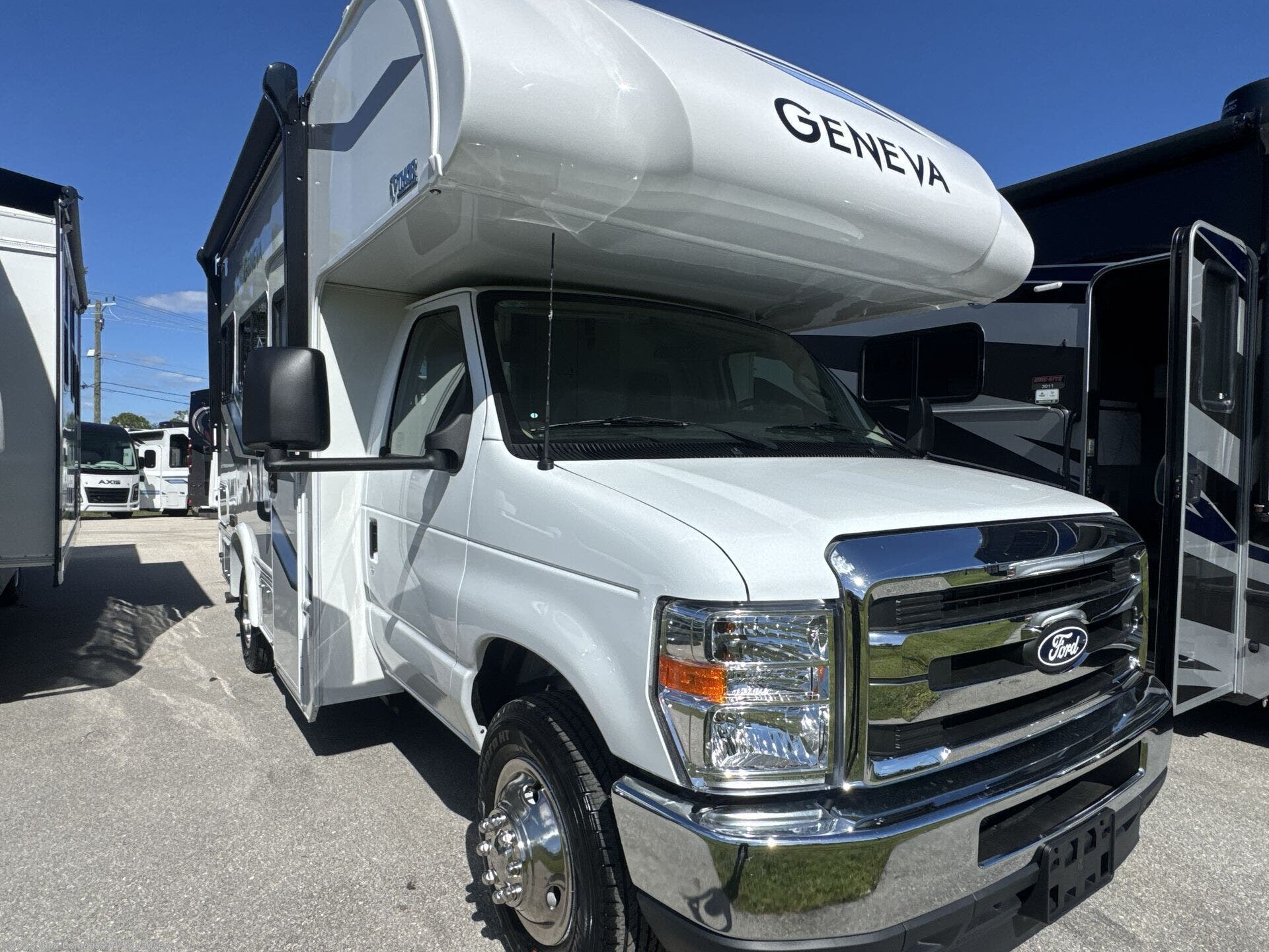 You will feel right at home in every one of these Thor Motor Coach Geneva Class C gas motorhomes! The Ford E-Series chassis holds them together and you can easily tow a car or trailer with the 8,000 lb. hitch. A premium one-piece roofing material and welded tubular aluminum roof and sidewall cage construction will hold up for years to come. Each model has unique living area arrangements, fully equipped kitchens, and residential vinyl flooring that are easy to clean. The touchscreen dash radio and back-up monitor lets you play your favorite tunes and prevent any bumps or dings. Come choose your favorite one today!