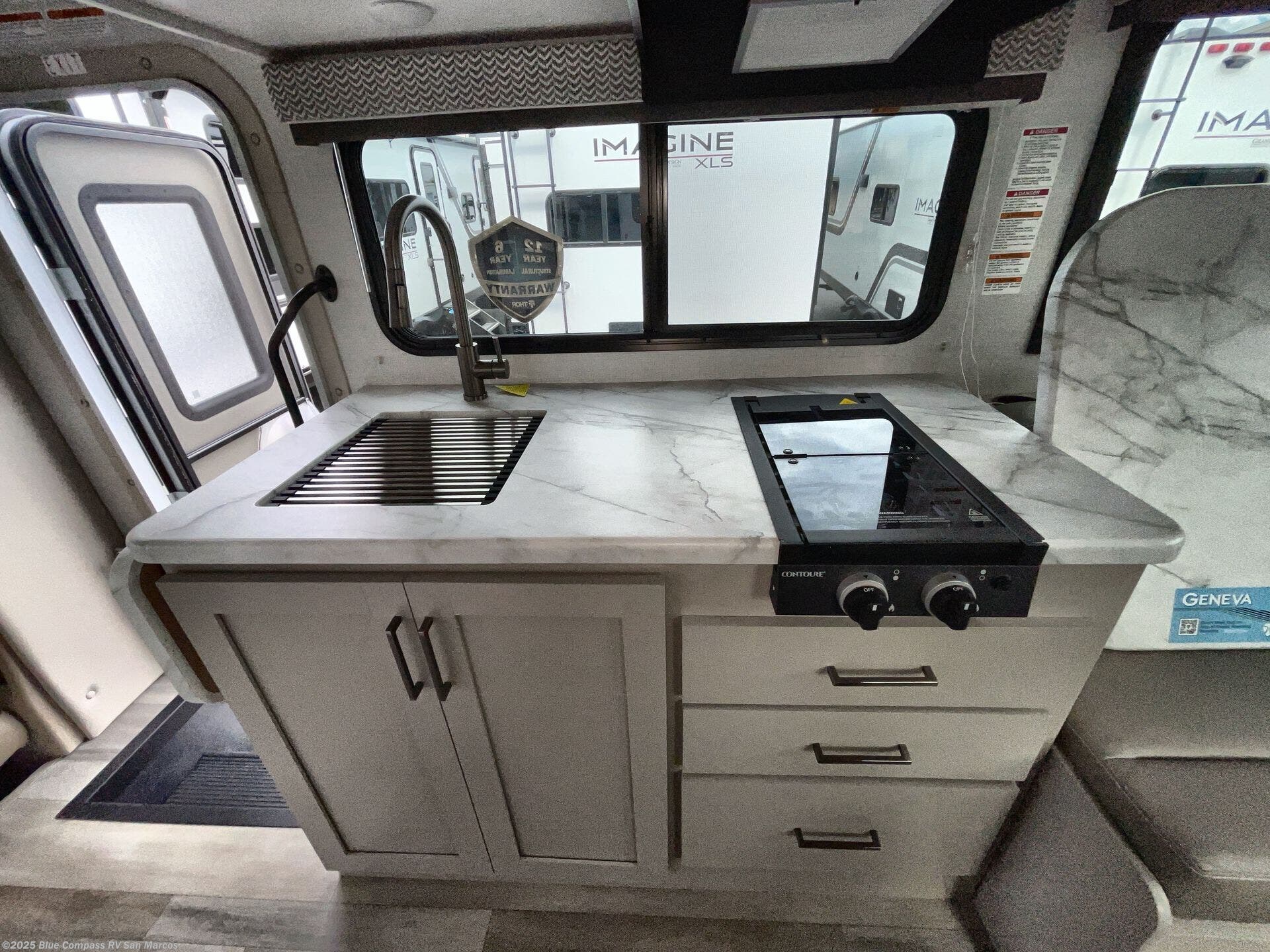 This cozy coach is perfect for three to four happy campers! Once you stop for the day, you can freshen up in the wet bath that includes a foot flush toilet, power vent, and shower skylight for more natural lighting. The two burner cooktop and convection microwave with an air fryer will let you make meals each day, and the 12V refrigerator will keep your food fresh. You'll also appreciate the flip-up countertop for more space to prep meals. There is a U-shaped dinette with a removable table that will convert to a 54" x 77" bed, while the little ones take the cab-over bunk with a 52" x 91" sleeping area.