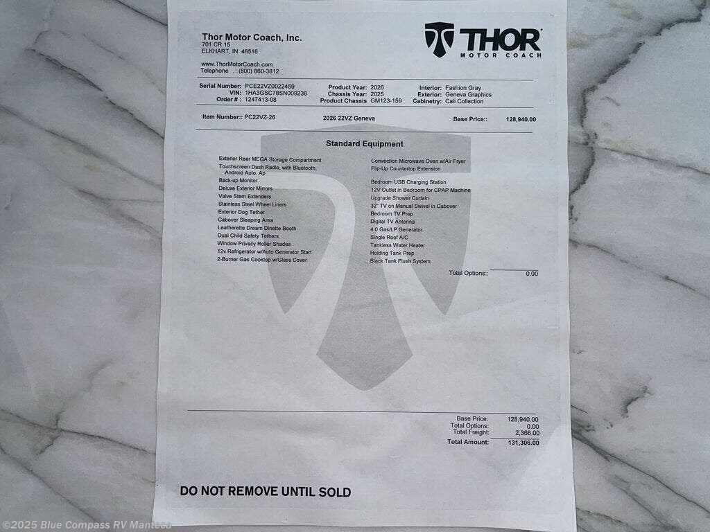 Request More Info on this 2026 Thor Motor Coach Geneva 22VZ Chevy Offered for sale by Blue Compass RV Manteca