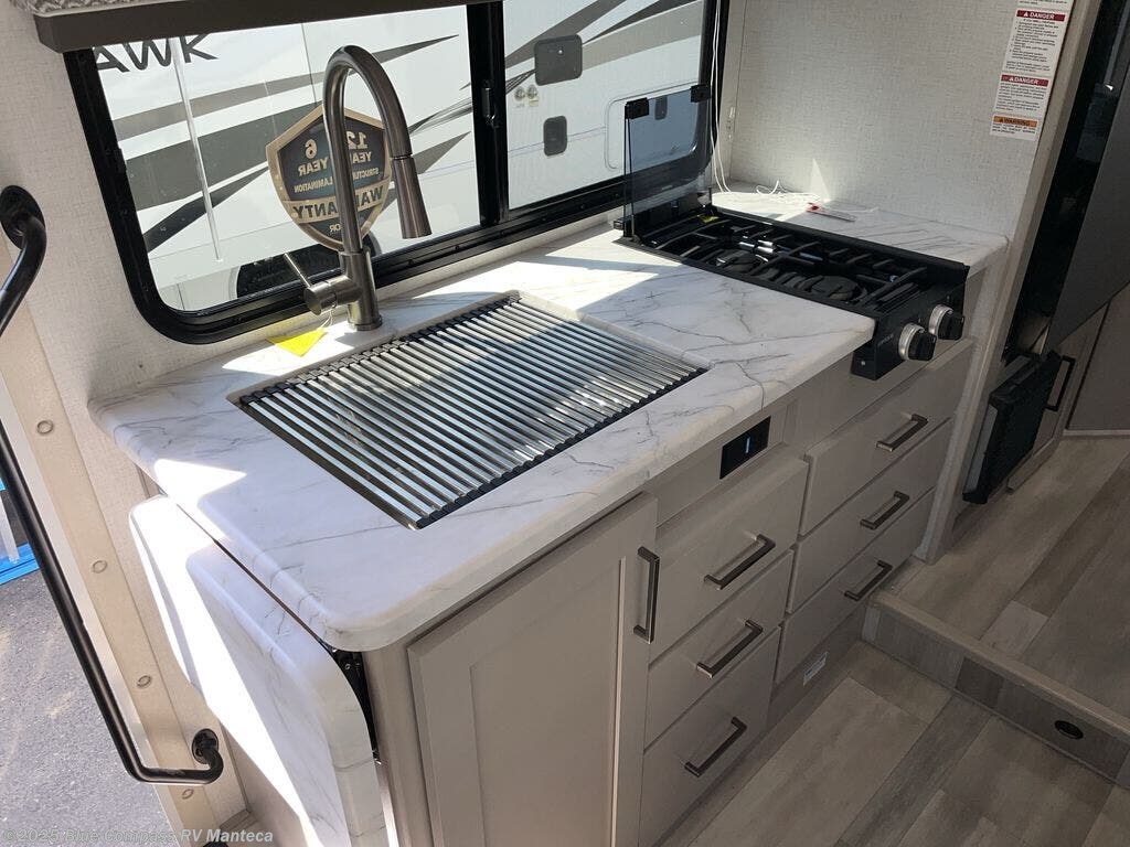 Pack your bags and head out on the greatest adventures in this motorhome! You can get a good night's rest on the rear corner 60 x 74" queen bed slide and on the 52" x 96" bunk over cab. The 76" Dream Dinette can also transform into an extra sleeping space when you aren't using it to enjoy a meal or play a card game. The chef can prepare their best home cooked meals in the fully equipped kitchen with the two burner cooktop, convection microwave with an air fryer, and flip-up countertop. Freshen up after a fun day at the beach in the rear corner bathroom with the 24" x 36" shower and keep your things organized in the bedroom closet.