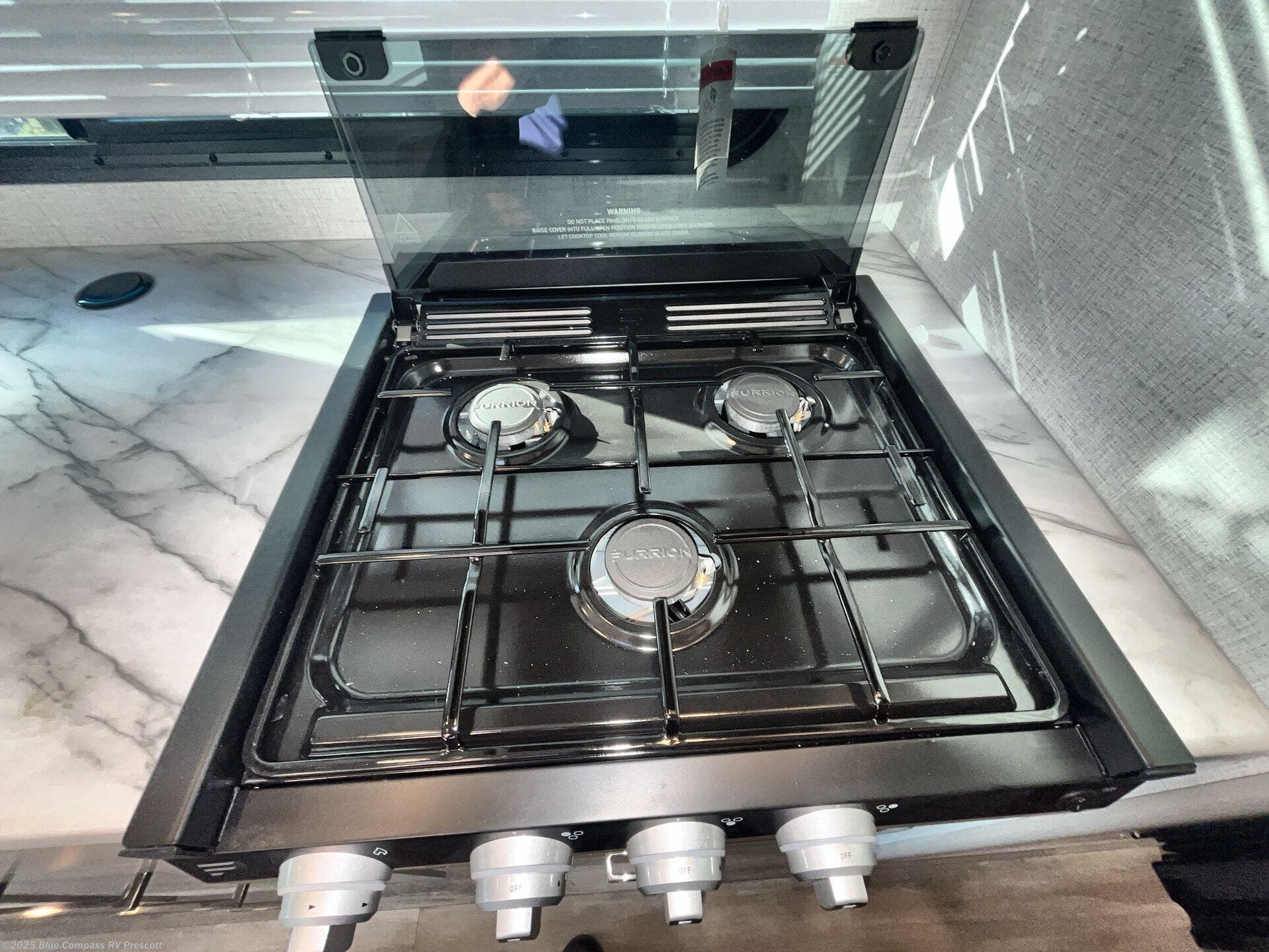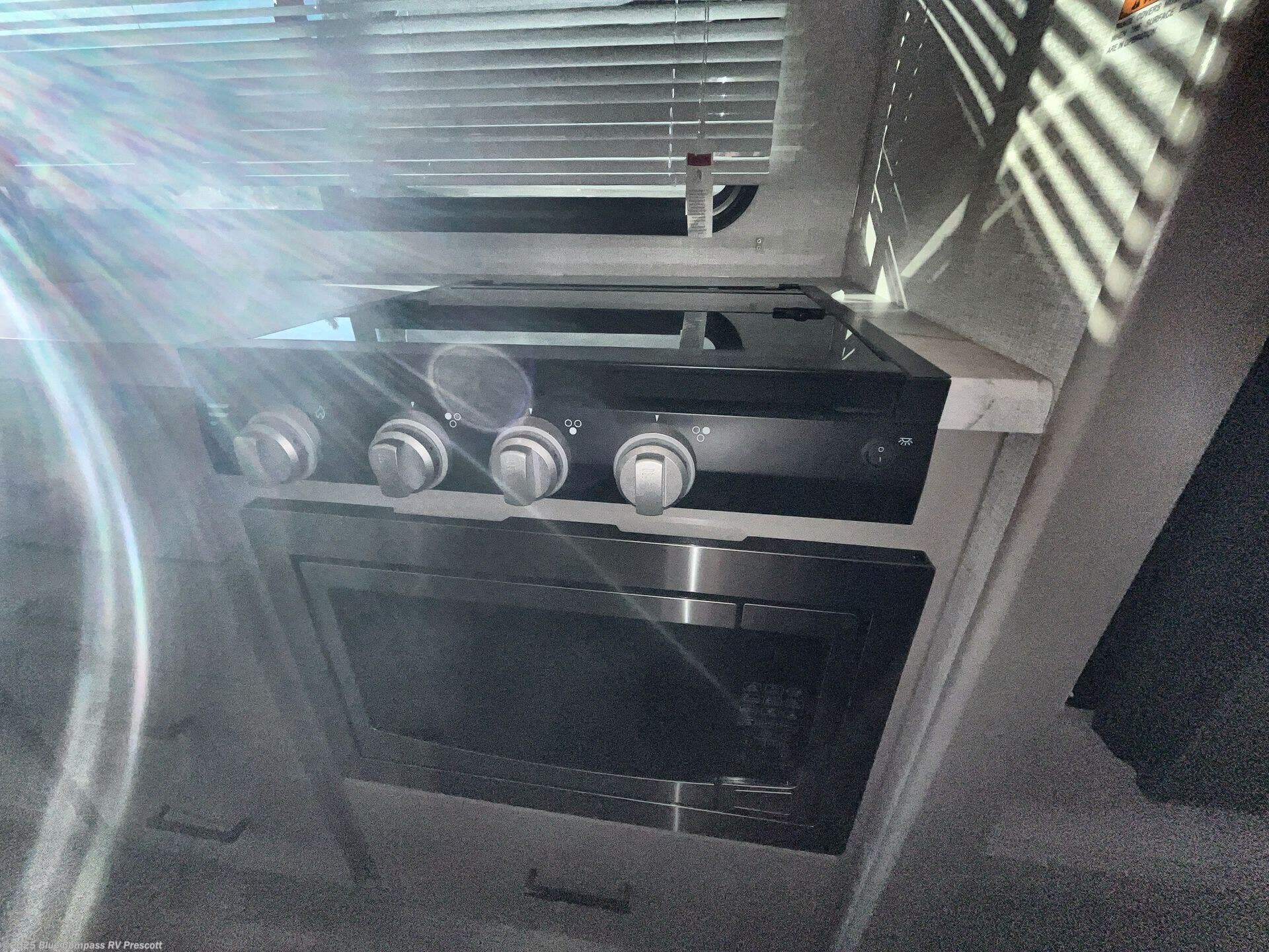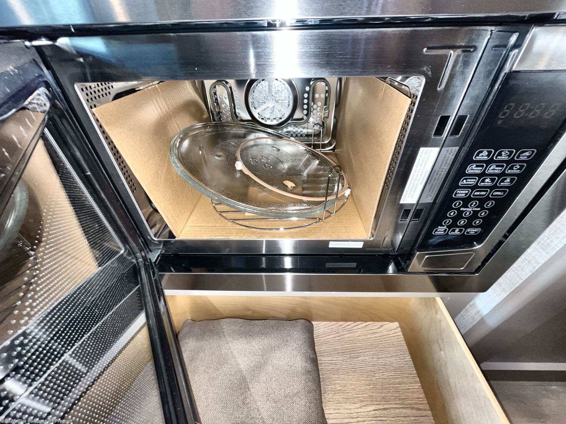 You'll love this versatile coach that features a full-wall slide for added space. The dream dinette and sofa with a Murphy bed is found here so you can enjoy comfy seating and sleeping spaces. There is also a 32" smart TV in the living area plus a privacy curtain around the bed if you have guests staying over on the cab-over bunk. A full rear bath includes a 24" x 36" shower to freshen up, along with a skylight, foot flush toilet and convenient robe hook(s). When you've worked up an appetite, the full kitchen with a three burner gas cooktop and convection microwave will let you make your best meals!