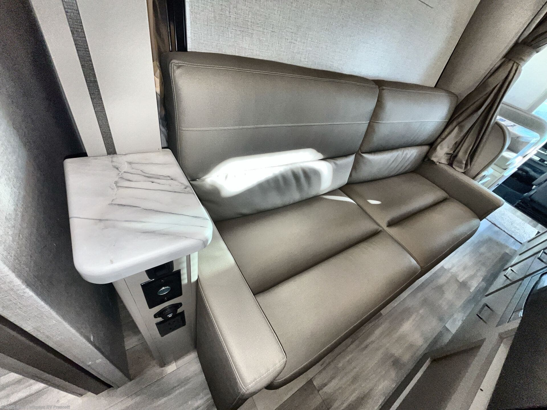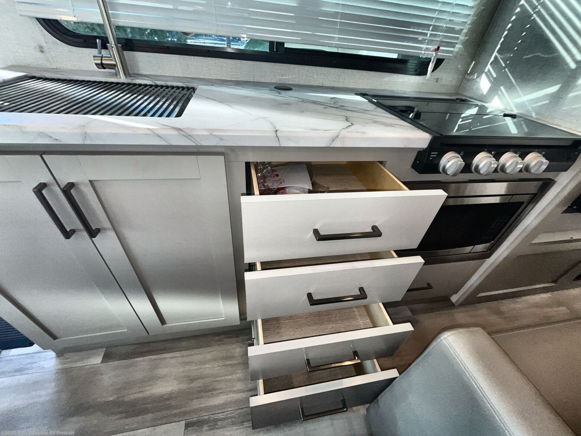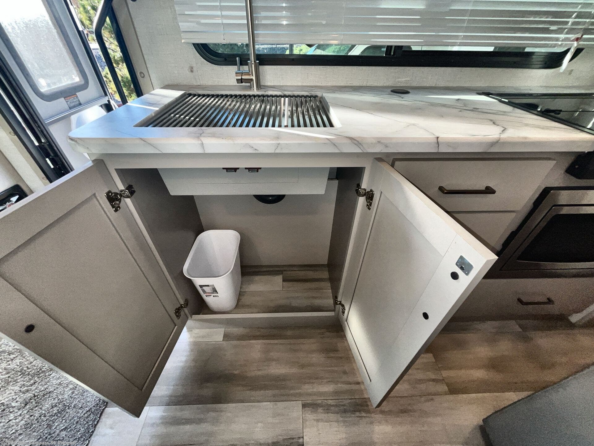 You'll love this versatile coach that features a full-wall slide for added space. The dream dinette and sofa with a Murphy bed is found here so you can enjoy comfy seating and sleeping spaces. There is also a 32" smart TV in the living area plus a privacy curtain around the bed if you have guests staying over on the cab-over bunk. A full rear bath includes a 24" x 36" shower to freshen up, along with a skylight, foot flush toilet and convenient robe hook(s). When you've worked up an appetite, the full kitchen with a three burner gas cooktop and convection microwave will let you make your best meals!