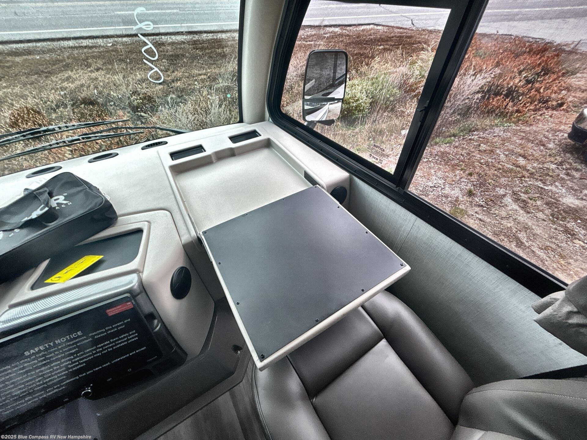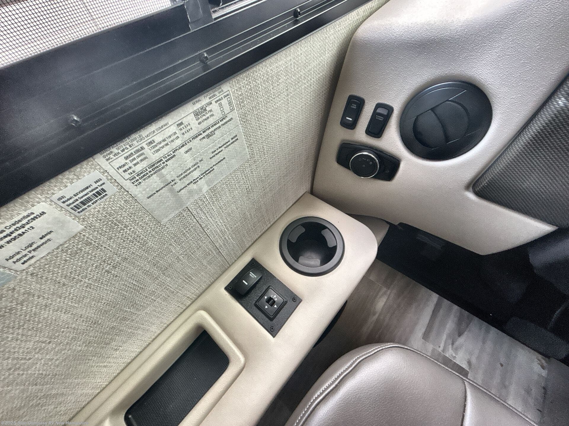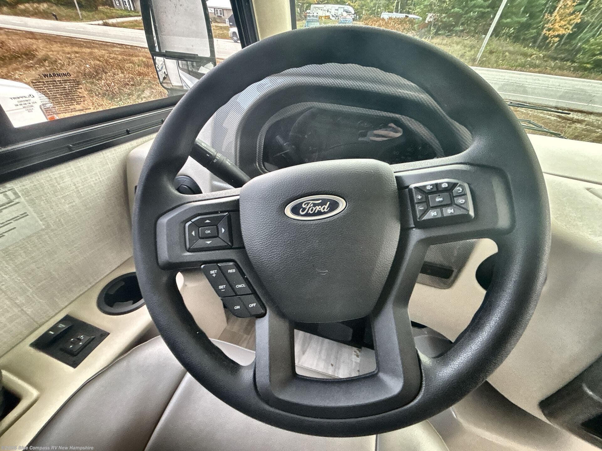 The Geneva Class A gas motorhome by Thor Motor Coach is easy to maneuver and even easier to love! There is a durable Ford E-Series chassis with a 7.3L V8 engine to power your trips both near and far. The durable construction includes a welded tubular steel floor, a one-piece fiberglass front cap, plus welded tubular aluminum roof and sidewall cage construction. And the driver is sure to appreciate the 14" touchscreen dash radio, back-up monitor, and reclining/swivel leatherette captain's chairs! Inside, you'll be met with residential vinyl flooring, a designer headboard and pillow shams, a shower skylight, and many more at-home comforts!