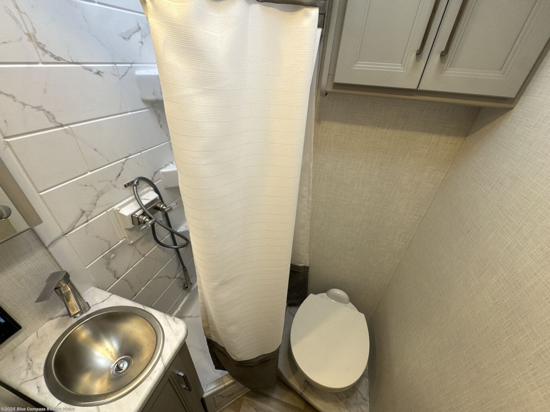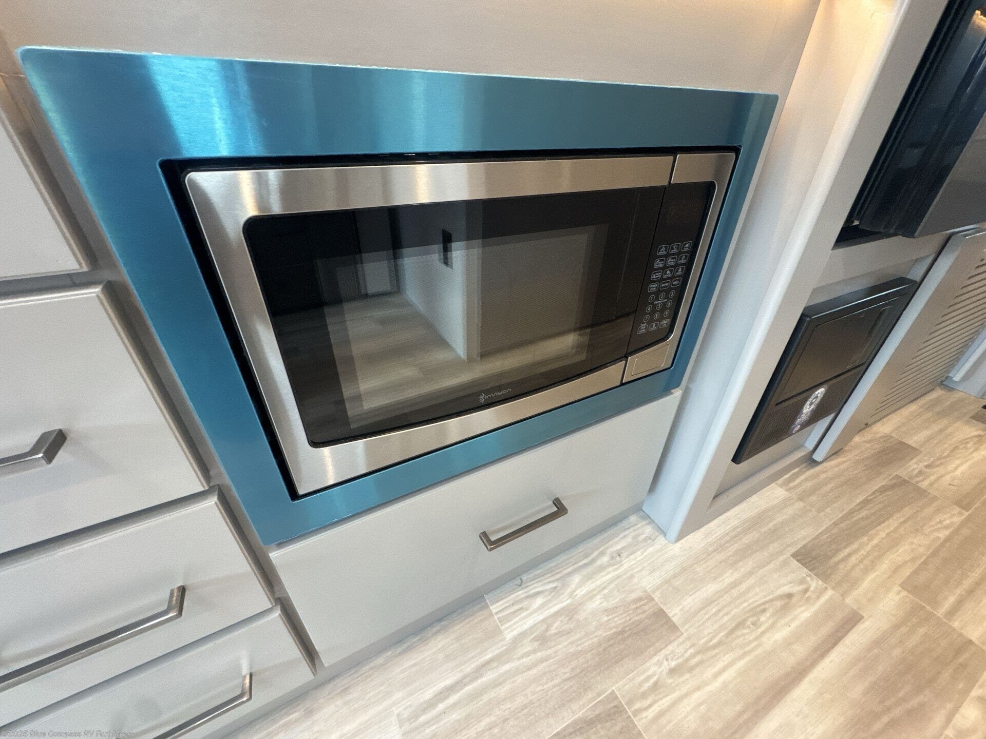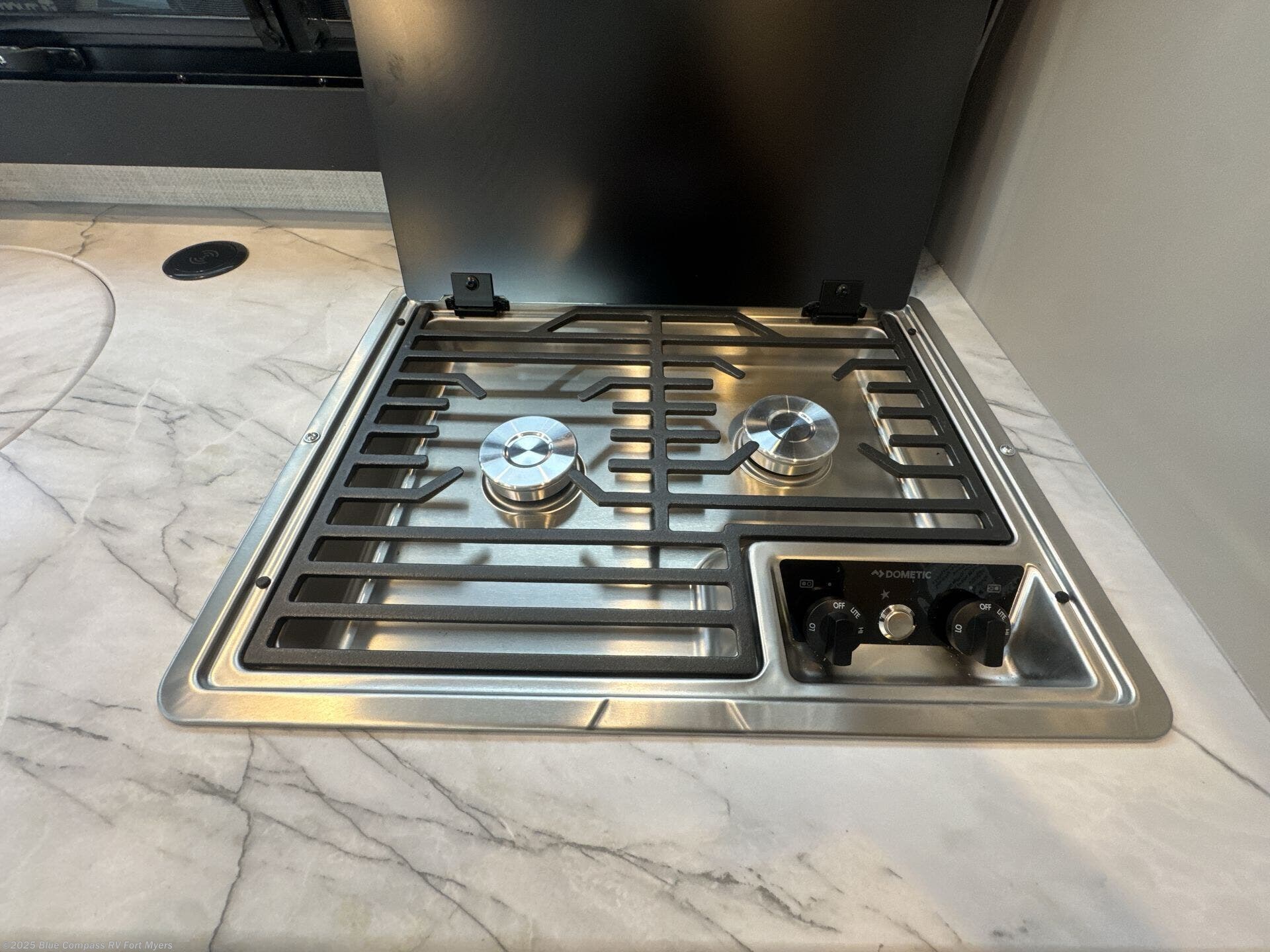 Since this coach features twin beds with a king bed conversion, you can travel with your friend or honey! Along with the versatile sleeping arrangements, you'll also enjoy the bedroom 32" LED Smart TV, and if you have any guests, they can sleep on the 66" sofa bed in the main living room. If you're needing additional sleeping space, just choose the optional power drop-down overhead bunk! A full kitchen includes a two burner gas cooktop and convection microwave with an air fryer, along with a 12V DC double door refrigerator for food storage. The full bath with a 27" x 27" radius shower will let you freshen up each day, and the closet right across the hall will be perfect for clean clothes!