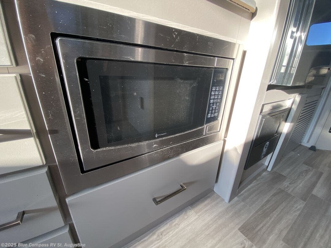Since this coach features twin beds with a king bed conversion, you can travel with your friend or honey! Along with the versatile sleeping arrangements, you'll also enjoy the bedroom 32" LED Smart TV, and if you have any guests, they can sleep on the 66" sofa bed in the main living room. If you're needing additional sleeping space, just choose the optional power drop-down overhead bunk! A full kitchen includes a two burner gas cooktop and convection microwave with an air fryer, along with a 12V DC double door refrigerator for food storage. The full bath with a 27" x 27" radius shower will let you freshen up each day, and the closet right across the hall will be perfect for clean clothes!