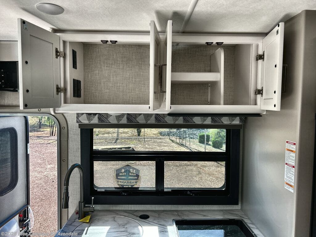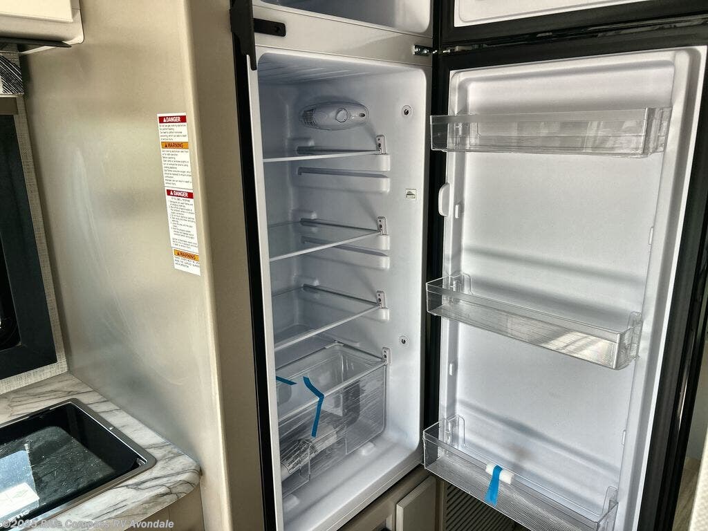 Since this coach features twin beds with a king bed conversion, you can travel with your friend or honey! Along with the versatile sleeping arrangements, you'll also enjoy the bedroom 32" LED Smart TV, and if you have any guests, they can sleep on the 66" sofa bed in the main living room. If you're needing additional sleeping space, just choose the optional power drop-down overhead bunk! A full kitchen includes a two burner gas cooktop and convection microwave with an air fryer, along with a 12V DC double door refrigerator for food storage. The full bath with a 27" x 27" radius shower will let you freshen up each day, and the closet right across the hall will be perfect for clean clothes!