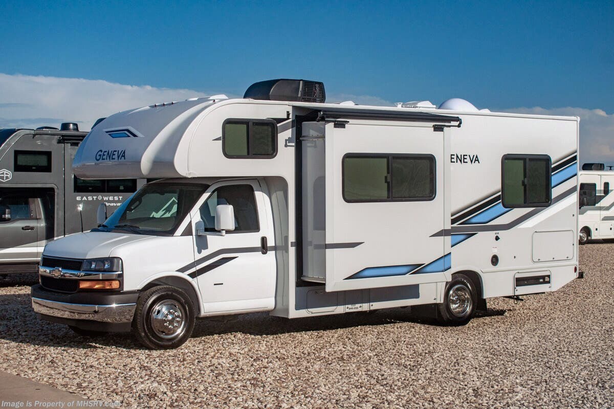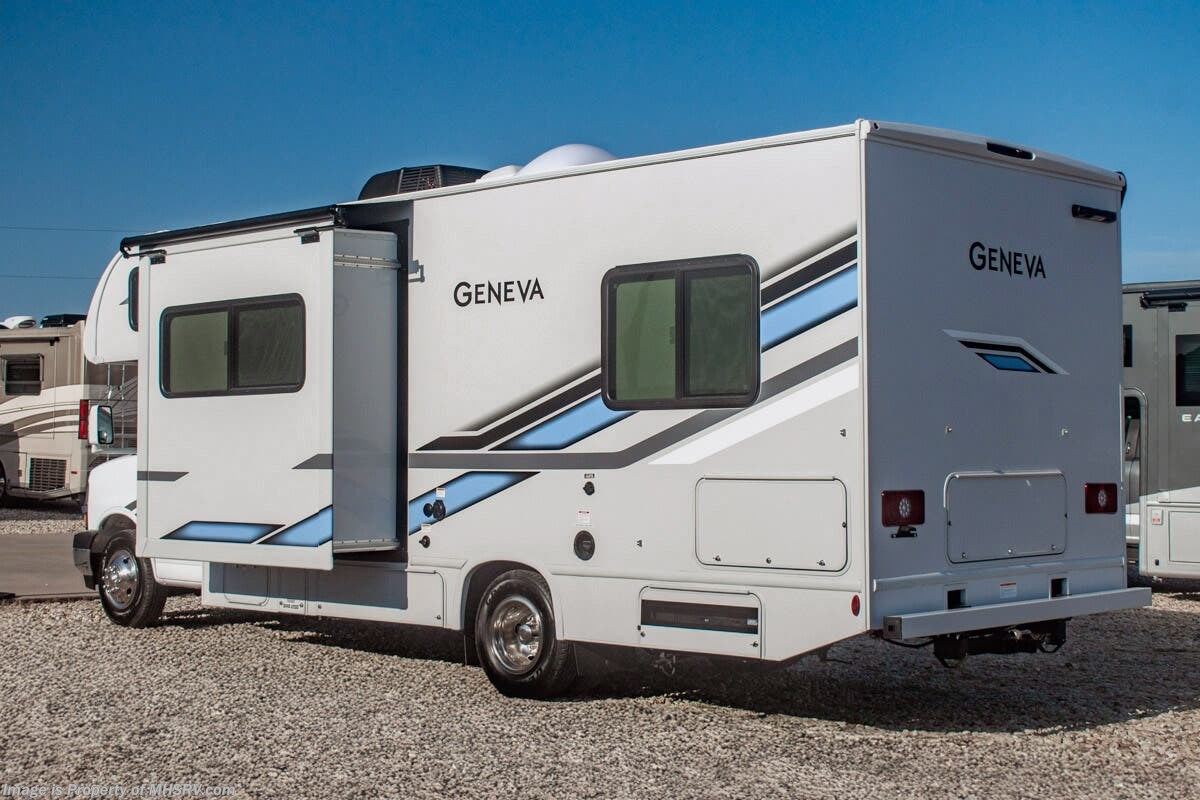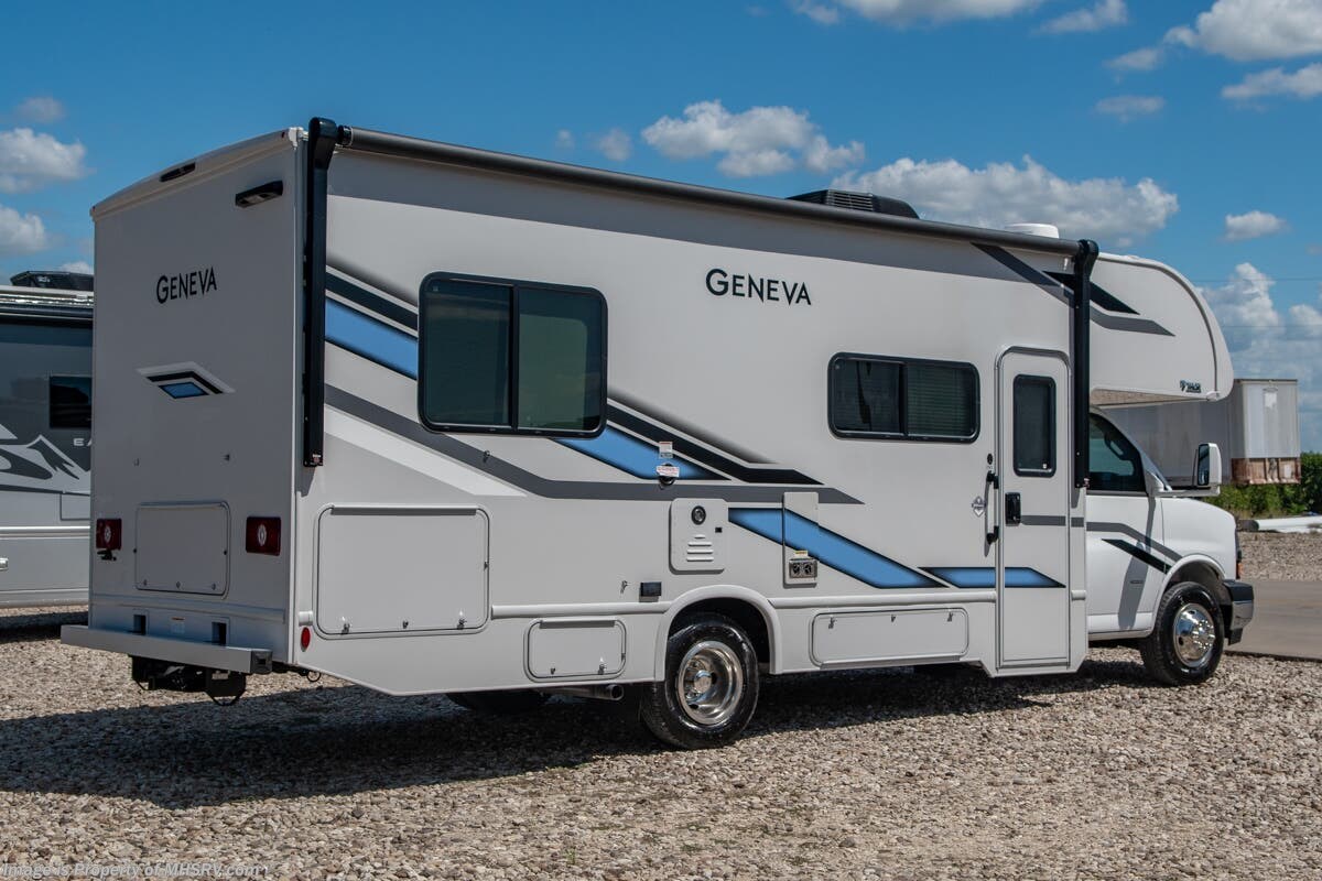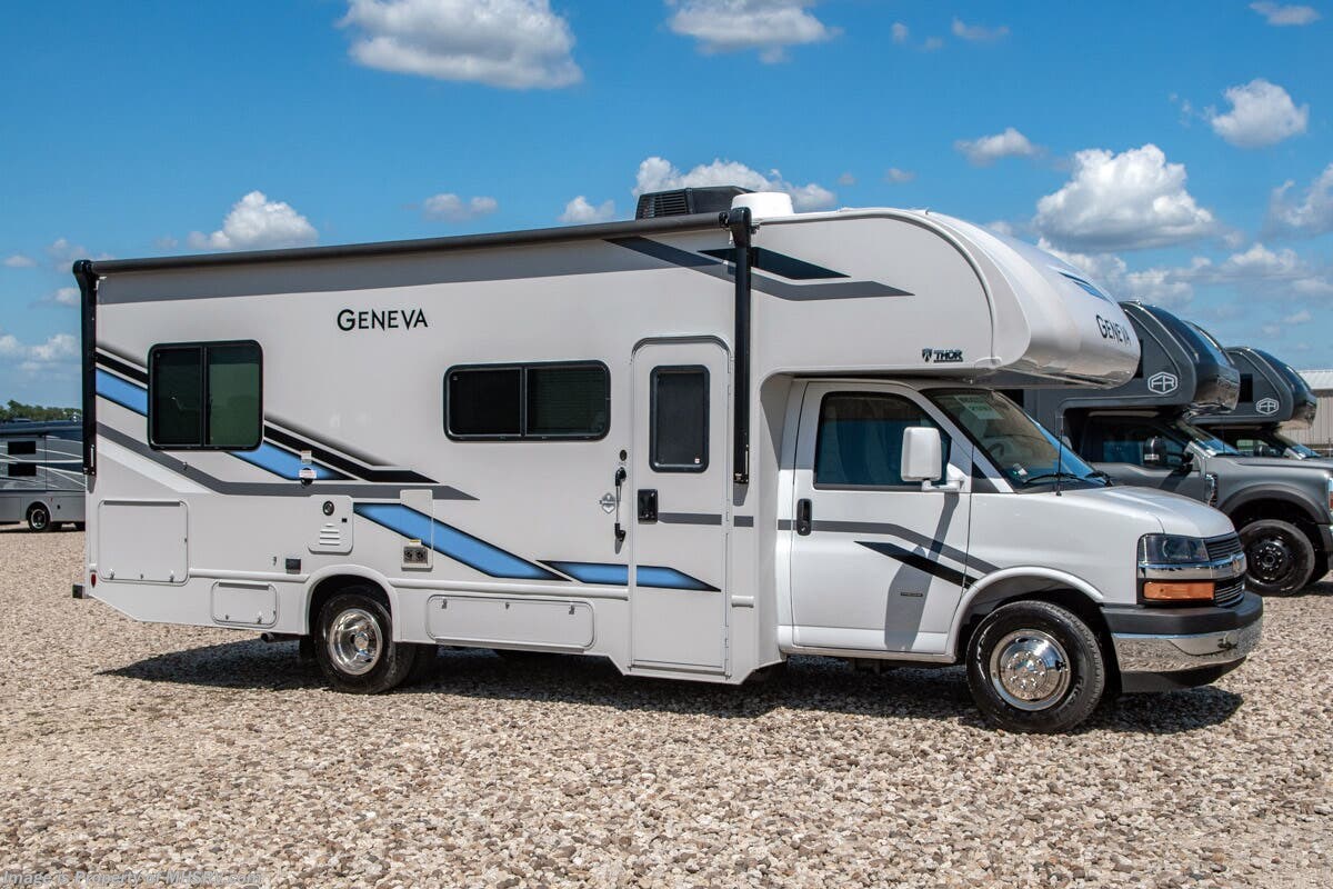 M.S.R.P. $138,586. Motor Home Specialist is proud to introduce the all-new Thor Motor Coach Geneva, an exciting new luxury class C RV to complement our incredible line-up of Thor C Class RVs including the Thor Chateau, Four Winds and Quantum! Compare & save big on this well-appointed Thor Motor Coach Geneva 25VZ. The Geneva is packed with features that include Chevy chassis featuring the 6.6L V8 making 401HP & 464 lb-ft Torque. Also, Touchscreen radio with Apple CarPlay & Android Auto, back-up monitor, stainless steel wheel liners, 12V refrigerator w/ auto generator start, 2 burner gas cooktop with glass cover, microwave oven and much more. Shop hundreds of class C gas RVs at 1 location! Choose from Fleetwood Altitude - Gulf Stream BT Cruiser - Thor Chateau - Four Winds - Geneva and Quantum - Entegra Coach Odyssey Odyssey SE and Esteem - East to West Entrada - Forest River Forester - Forester LE - Nexus Phantom - Viper and much more. We also sell quality pre-owned models such as Jayco Greyhawk – Redhawk - Redhawk SE - Thor Magnitude - Winnebago Spirit - and Minnie Winnie - Coachmen Freelander and Leprechaun - Forest River Sunseeker Classic - Sunseeker LE – Solera - Holiday Rambler Incline and much more. Visit for our complete line-up and the sale prices that have made us the #1 volume selling motor home dealership in the world 12 years in a row! For additional details on this unit and our entire inventory including brochures, window sticker, videos, photos, reviews & testimonials as well as additional information about Motor Home Specialist and our manufacturers please visit us at or call 800-335-6054. At Motor Home Specialist, we DO NOT charge any prep or orientation fees like you will find at other dealerships. All sale prices include a 200-point inspection, interior & exterior wash, detail service and a fully automated high-pressure rain booth test and coach wash that is a standout service unlike that of any other in the industry. You will also receive a thorough coach orientation with an MHSRV technician, a night stay in our delivery park featuring landscaped and covered pads with full hook-ups and much more! Read Thousands upon Thousands of 5-Star Reviews at and See What They Had to Say About Their Experience at Motor Home Specialist. WHY PAY MORE? WHY SETTLE FOR LESS?