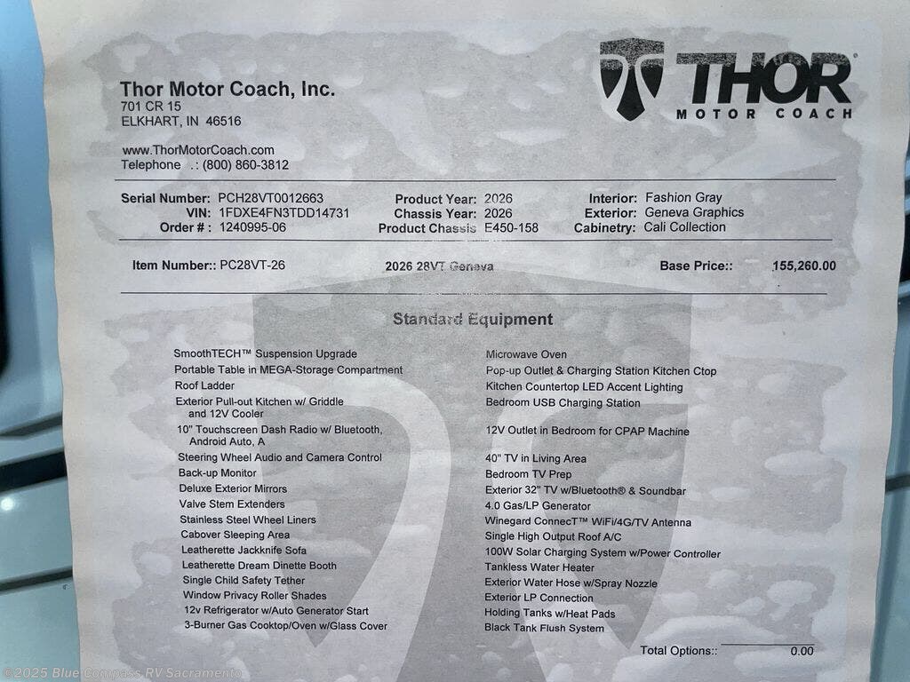 Request More Info on this 2026 Thor Motor Coach Geneva 28VT Offered for sale by Blue Compass RV Sacramento