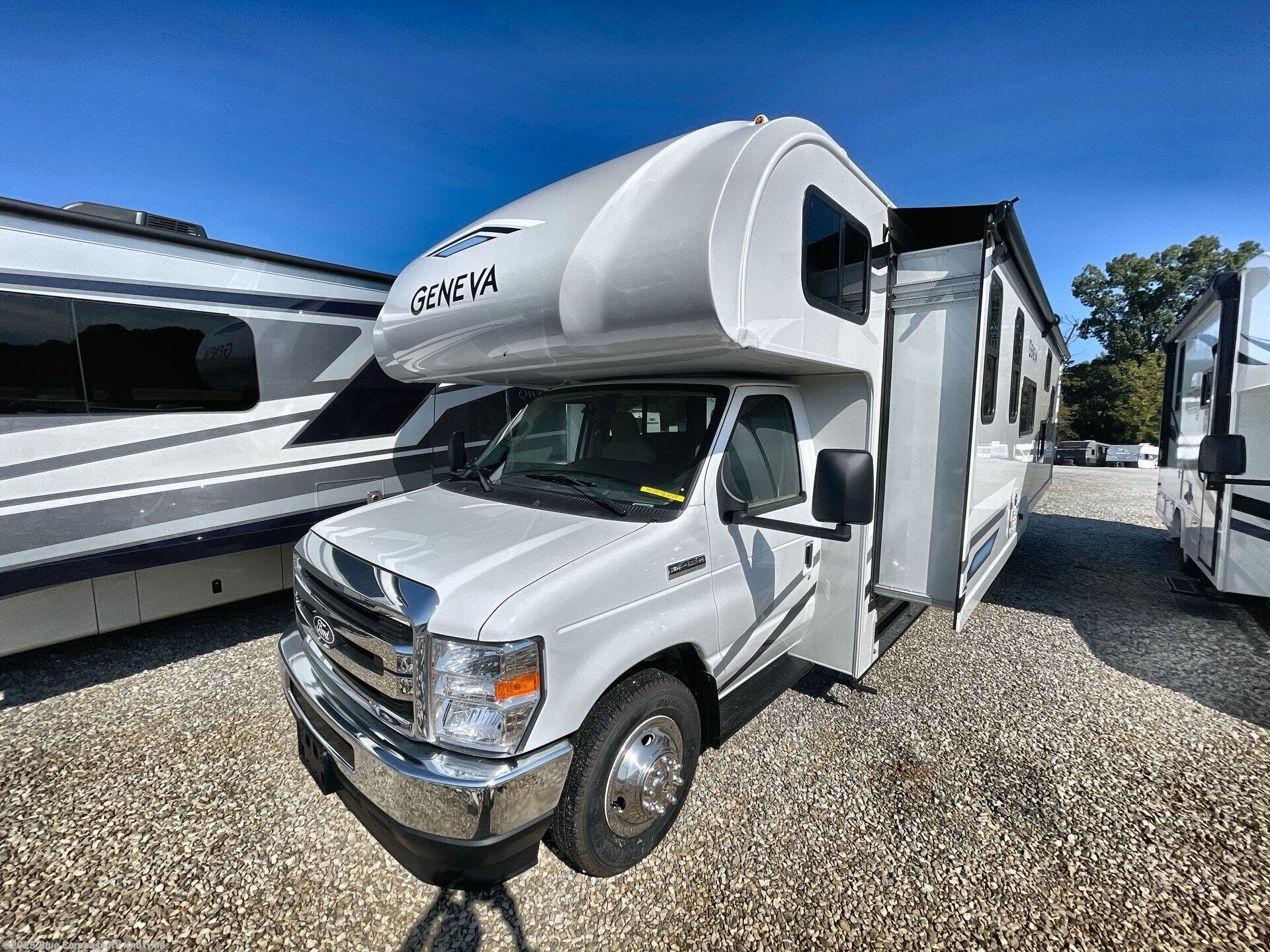 You will feel right at home in every one of these Thor Motor Coach Geneva Class C gas motorhomes! The Ford E-Series chassis holds them together and you can easily tow a car or trailer with the 8,000 lb. hitch. A premium one-piece roofing material and welded tubular aluminum roof and sidewall cage construction will hold up for years to come. Each model has unique living area arrangements, fully equipped kitchens, and residential vinyl flooring that are easy to clean. The touchscreen dash radio, Google Android Auto- Apple Car Play, and back-up monitor lets you play your favorite tunes and prevent any bumps or dings. Come choose your favorite one today!