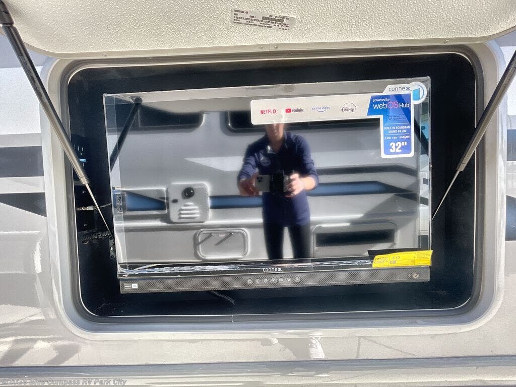 This motorhome is big enough for the whole family to travel! You can get a good night's rest on the 60" x 75" queen bed in the rear private bedroom which also has a closet, prep for a TV, and an entrance into the dual entry bathroom, and the 52" x 96" bunk over cab is another sleeping space in addition to the set of 27" x 72" bunk beds, the 68" jackknife sofa and the 71" Dream Dinette when you aren't using it to enjoy a meal or play a card game. The chef can prepare their best home cooked meals in the fully equipped kitchen with the three burner cooktop. Freshen up after a fun day at the beach in the full bathroom with the 32" x 32" radius shower and then watch the big game at the exterior TV!