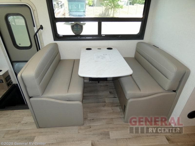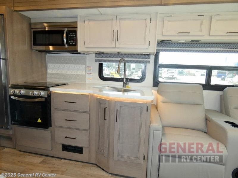 Family trips across the country are made complete in this spacious coach! The swivel captain's chairs can become a part of the living area once you park, and your guests can relax on the Dream Dinette or theater seats. Lunch can be made on the three burner gas cooktop, or in the 30" over-the-range microwave oven, and clean up will be a breeze in the stainless steel single bowel sink. This model also includes an outdoor kitchen with a refrigerator and a sink to easily clean up. You will love having your own bedroom to retreat to each night, and here you'll find a king bed, a 32" LED Smart TV, plus a closet to keep your clothes and shoes tidy!