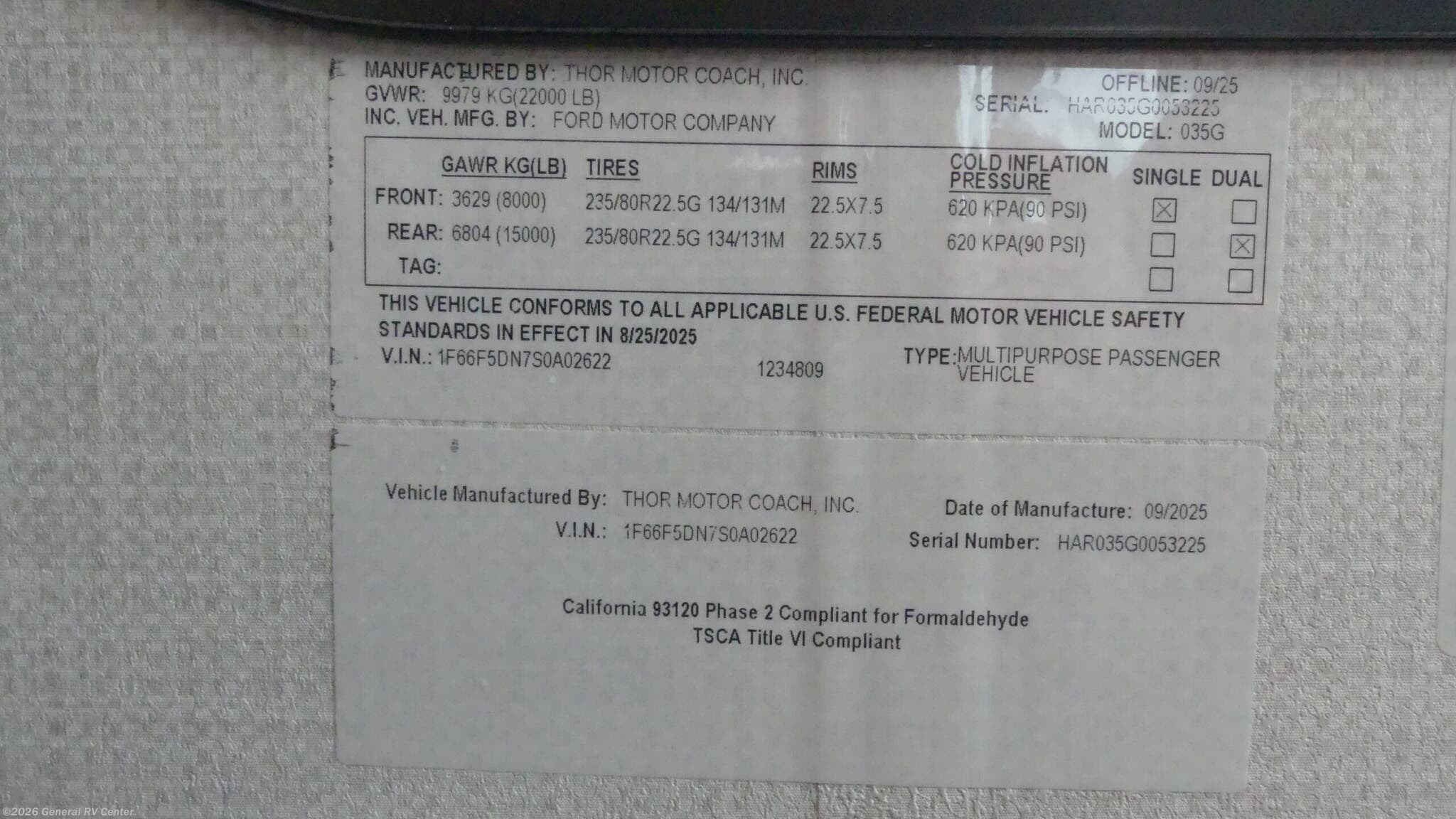 Request More Info on this 2026 Thor Motor Coach Hurricane 35G Offered for sale by General RV Center