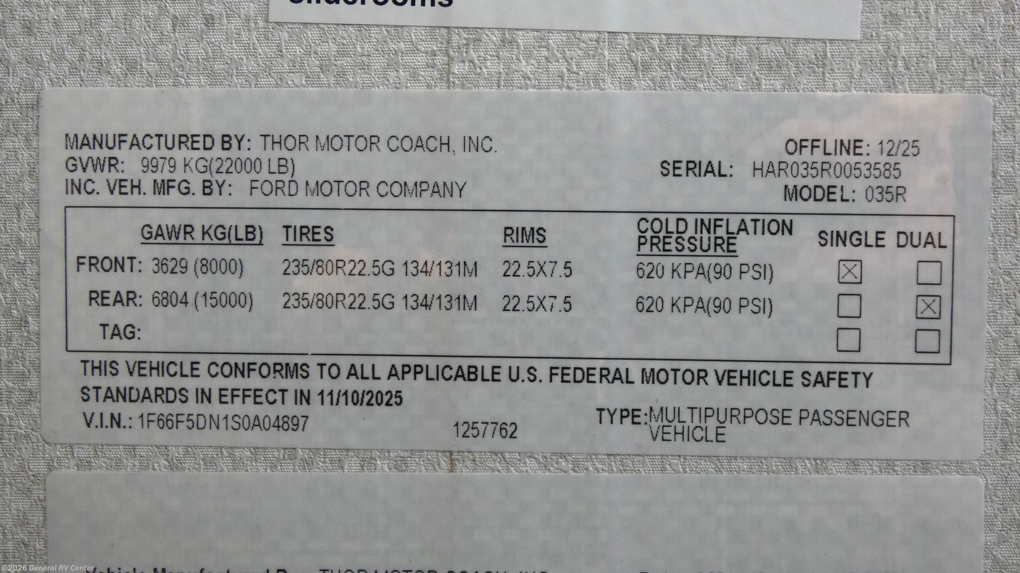 Request More Info on this 2026 Thor Motor Coach Hurricane 35R Offered for sale by General RV Center