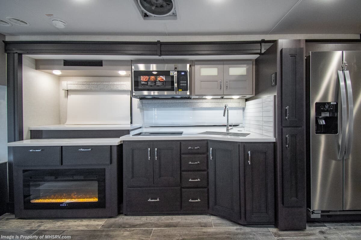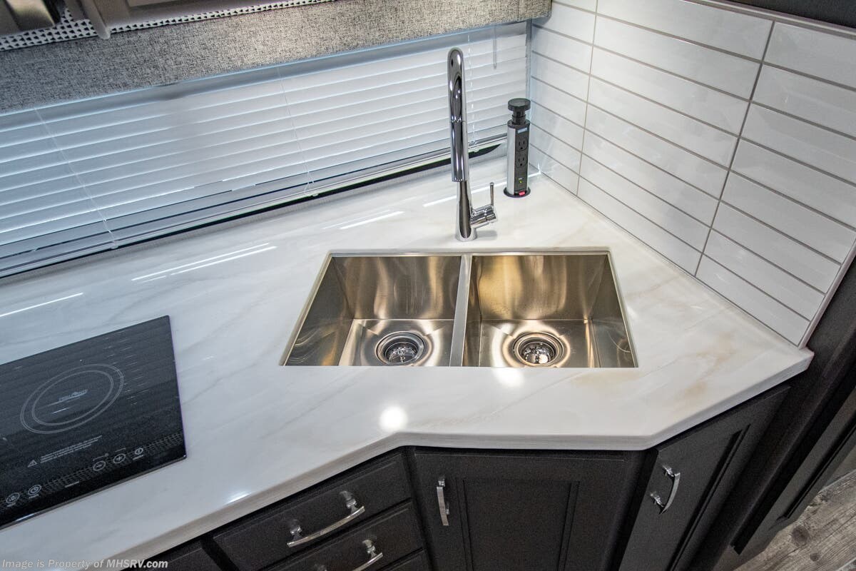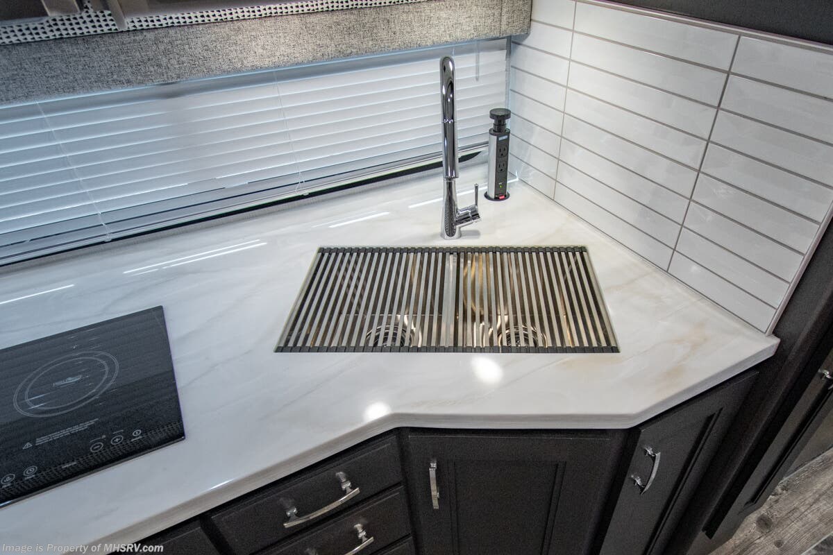 - Fully integrated Girard roof mount awning on patio side, awning boxes on both sides
