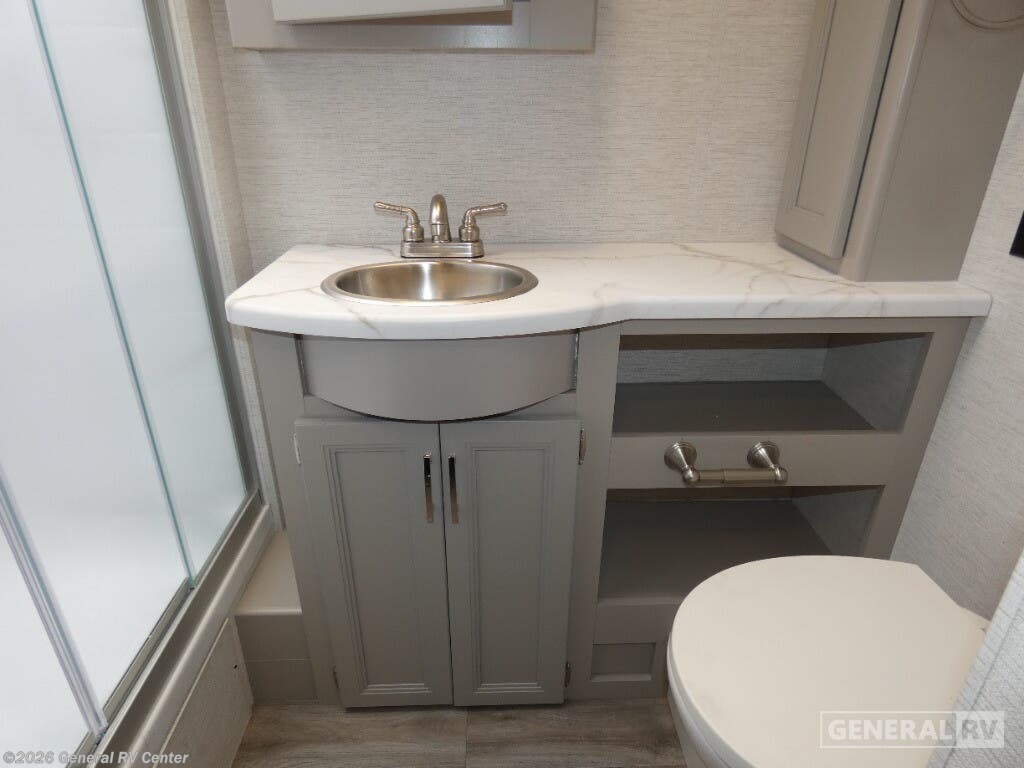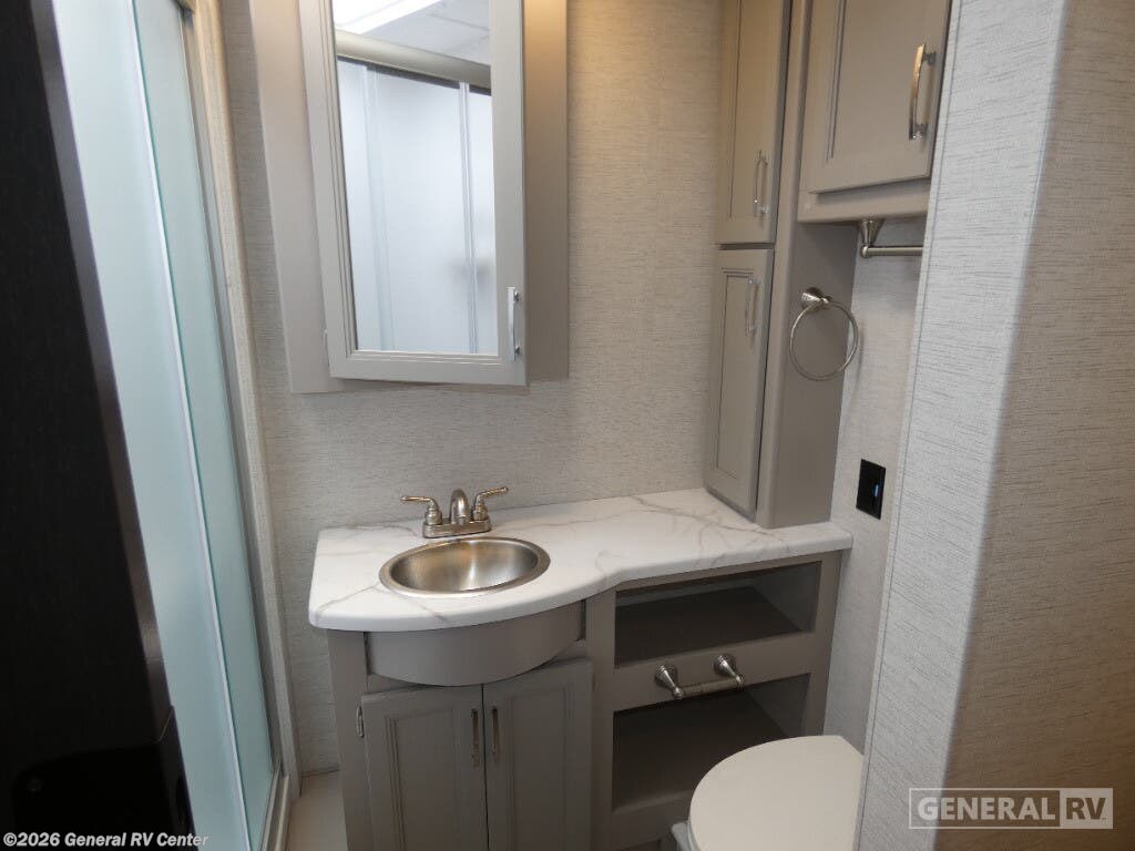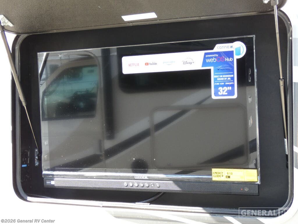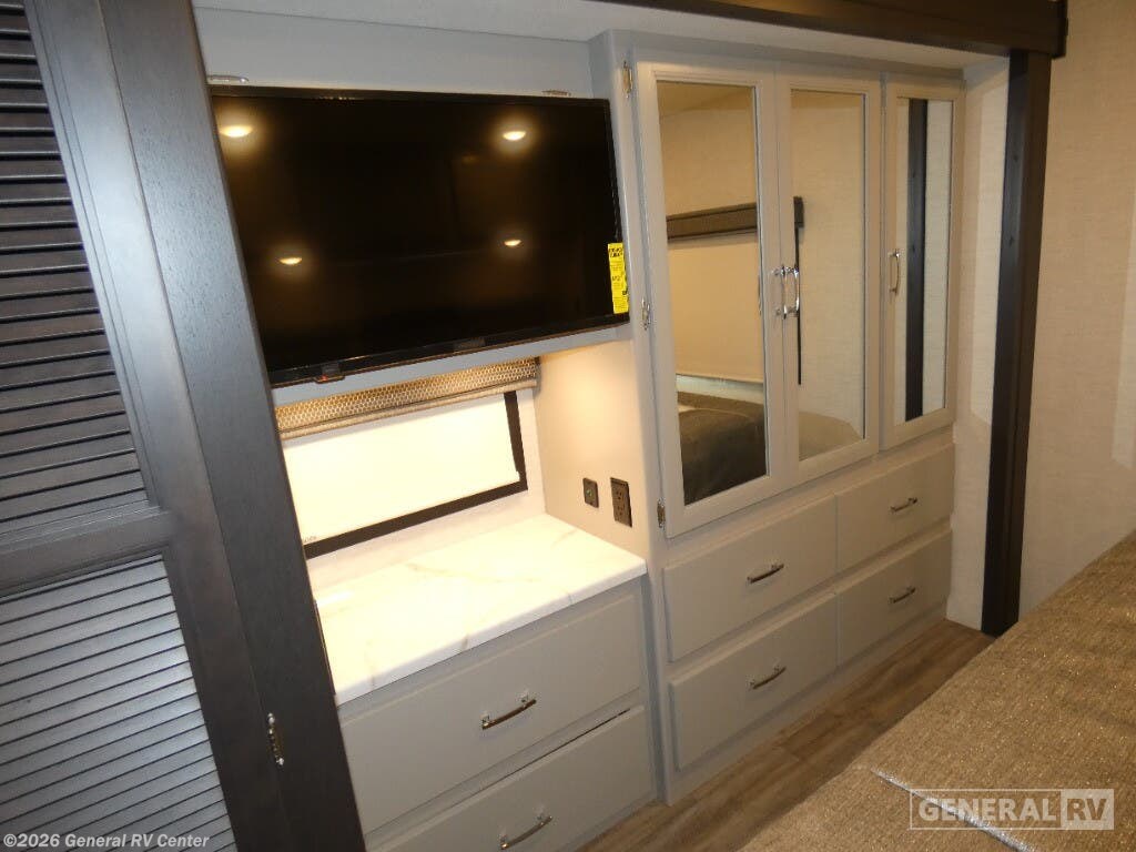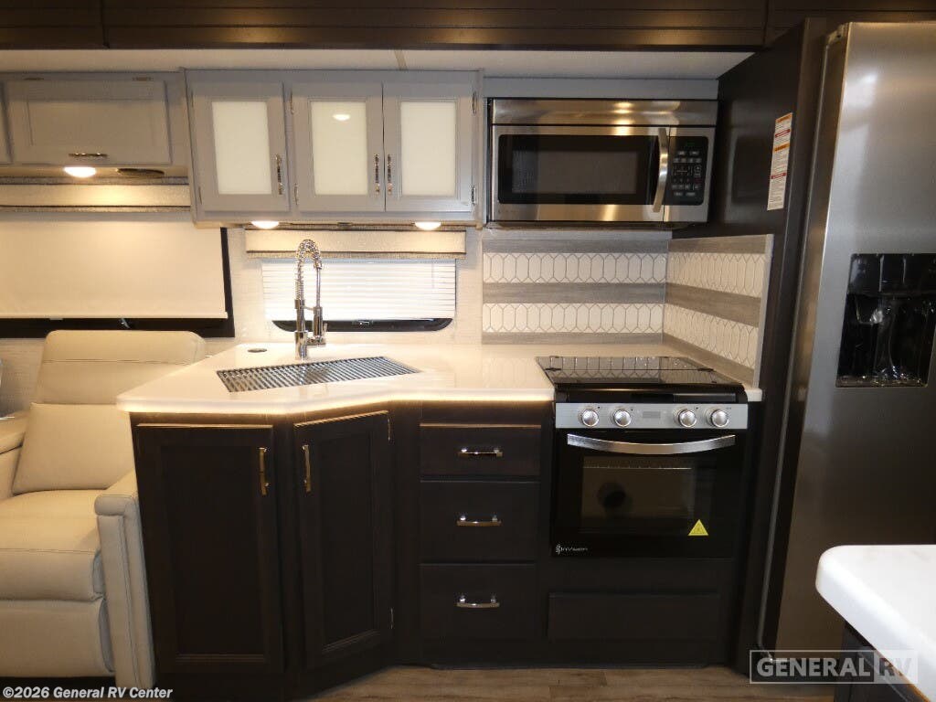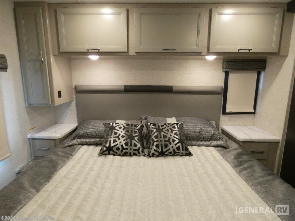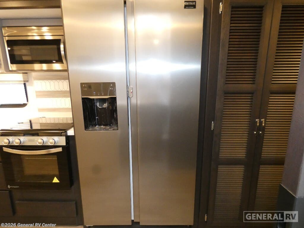 Step into the 2026 Thor Motor Coach Indigo CC35, where luxury meets functionality in the open road. This magnificent RV, built on the robust Ford F53 chassis, is powered by a 335-horsepower engine, ensuring a smooth and powerful journey. With a length of 37 feet, it offers ample space for family and friends, comfortably sleeping up to eight people. The interior is thoughtfully designed with a front living area that boasts a cozy fireplace and 68" theater seating, perfect for relaxing evenings. The center kitchen, equipped with a full-size electric refrigerator and a three-burner cooktop, makes meal preparation a breeze, while the stackable washer and dryer add everyday convenience. The rear bedroom is a sanctuary featuring a luxurious king-size bed and plenty of storage with a dresser and closet. The convertible sleeping options, including the Dream Dinette and sofa bed, make hosting guests easy. Enjoy the outdoors under the 20-foot powered retractable awning, and make use of the exterior TV for entertainment under the stars. With a 50-gallon fresh water tank, 40-gallon gray and black water tanks, and an automatic heater, the Indigo CC35 is designed for extended adventures without sacrificing comfort. Visit your nearest General RV dealership to explore this exceptional motorhome in person and begin your journey in style.