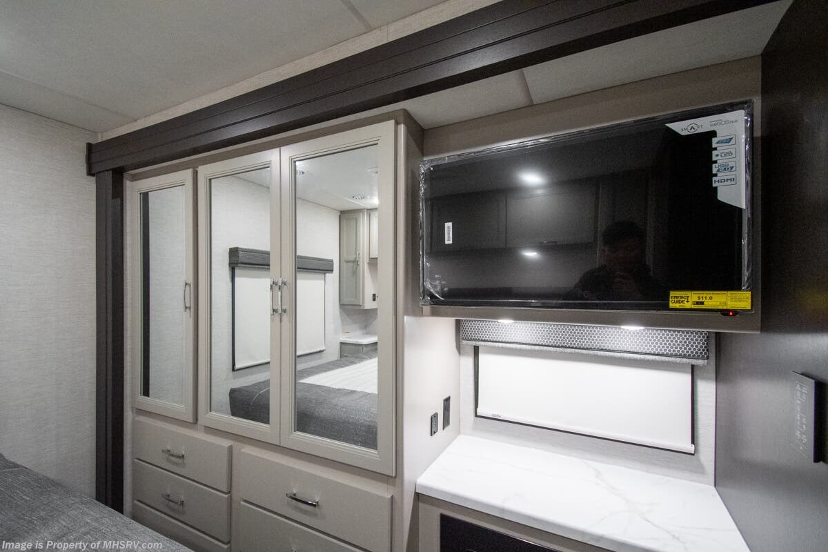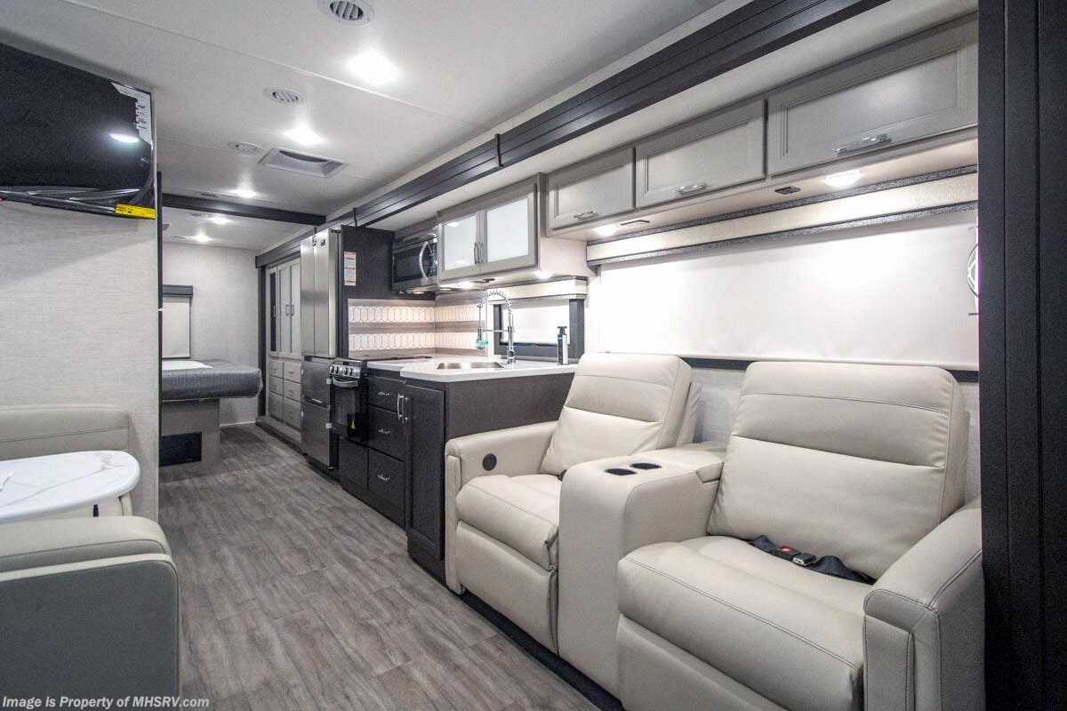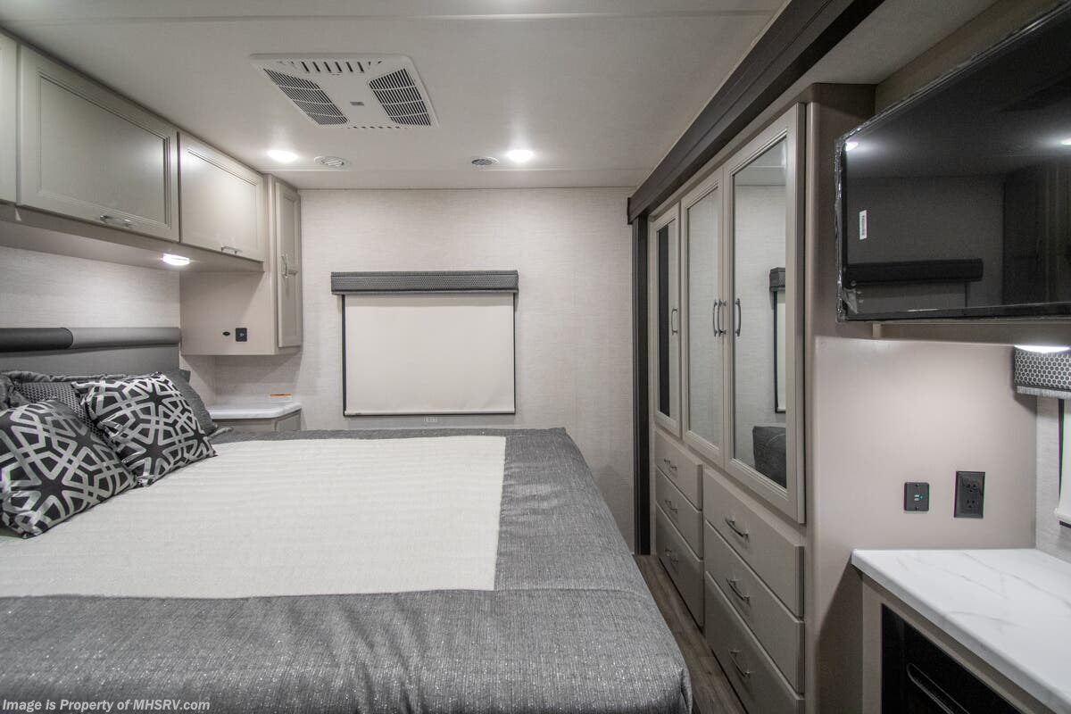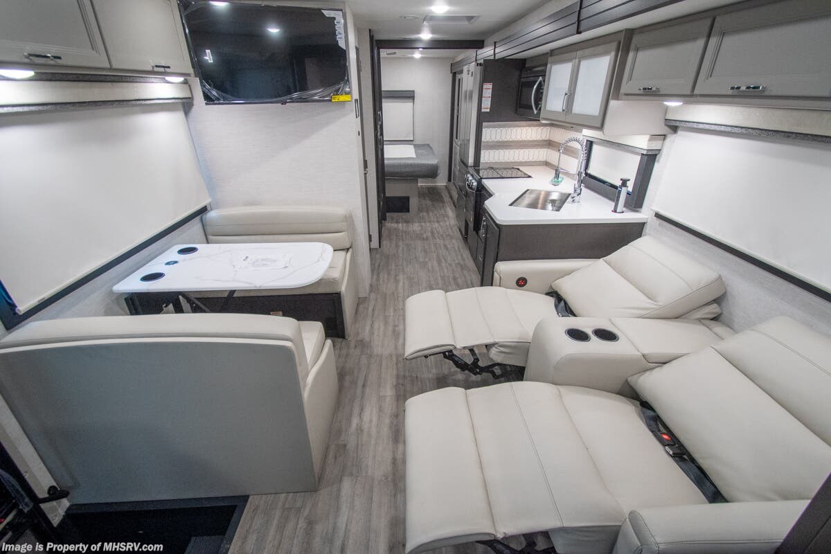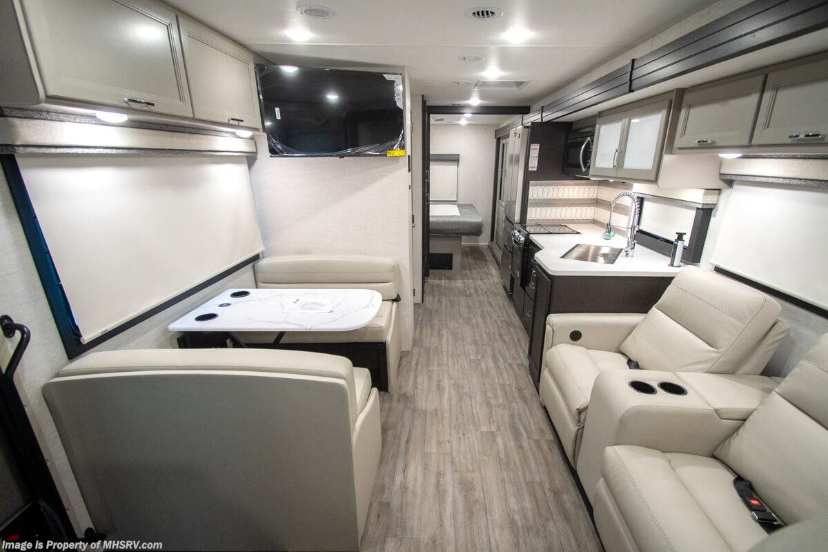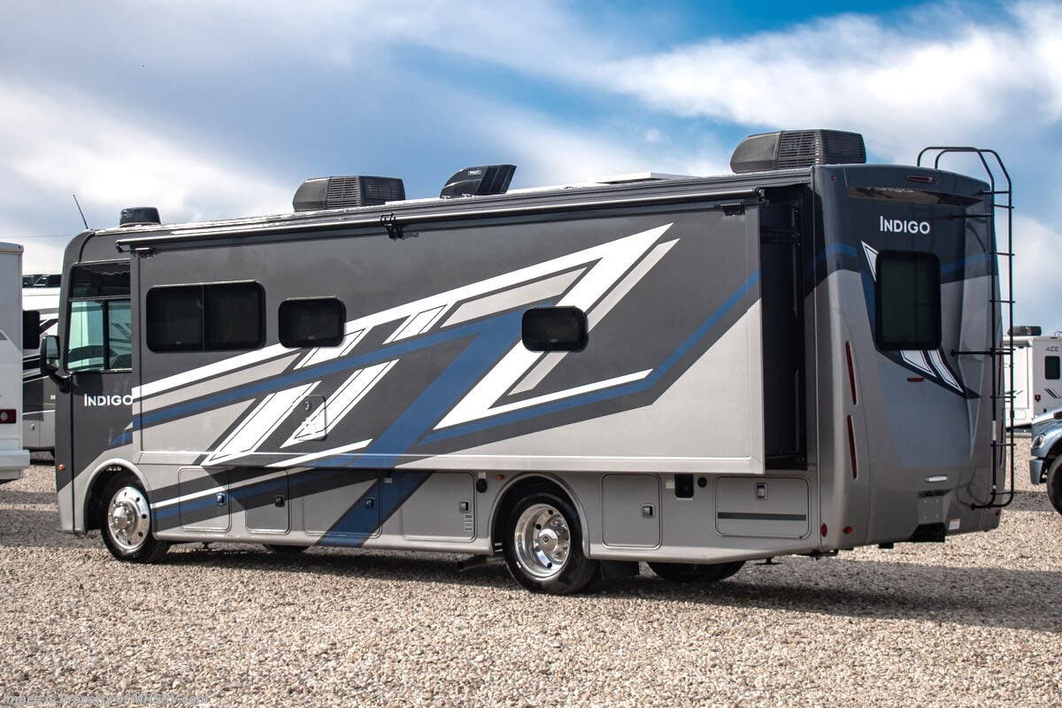 - 200W Additional Solar Charging System Shop hundreds of motorhomes including Class A RVs at MHSRV! Choose from Thor A.C.E. – Resonate – Hurricane – Windsport – Luminate – Indigo – Vegas – Axis – Challenger – Miramar Fleetwood Flair – Fortis – Flex – Bounder - Forest River Georgetown - FR3 – Entegra Coach Vision – Vision XL – Emblem – Holiday Rambler Admiral – Eclipse – Invicta – Vacationer - and much more. We also sell quality pre-owned models such as Jayco Alante SE – Alante – Precept – Precept Prestige – Tiffin Allegro Open Road – Newmar Canyon Star – Bay Star – Winnebago Vista – Sunstar – Adventurer – Coachmen Mirada – Pursuit - Encore and much more. Visit for our complete line-up and the sale prices that have made us the #1 volume selling motor home dealership in the world 12 years in a row! About This RV This RV measures approximately 31' 9" feet in length and features a Ford F-53 chassis with a 7.3L V-8 engine, a six speed automatic transmission, a drop-down overhead loft, 1 slide-out and a bedroom TV. The Indigo also boasts an impressive list of standard features including the exterior entertainment center, Winegard Connect 2.0 WiFi, rotary battery disconnect switch, adjustable shelving bracketry, power privacy shade on windshield, touchscreen radio that features navigation and back-up monitor, heated remote exterior mirrors with integrated sideview cameras, lateral power patio awning with integrated LED lighting and much more. About Us For more details on this unit, our full inventory, brochures, window stickers, videos, photos, and customer reviews, visit or call 800-335-6054 for the Texas location or 334-288-0331 for our Alabama location. At Motor Home Specialist, we never charge prep or orientation fees. Every new RV sale includes a multi-point inspection, full interior and exterior detail. At our Texas location we also offer a high-pressure rain booth test—an exclusive service in the industry. You'll also receive a comprehensive coach orientation with an MHSRV technician and a complimentary night in our delivery park with full hook-ups at our Texas Location. --Why Pay More? Why Settle for Less?—