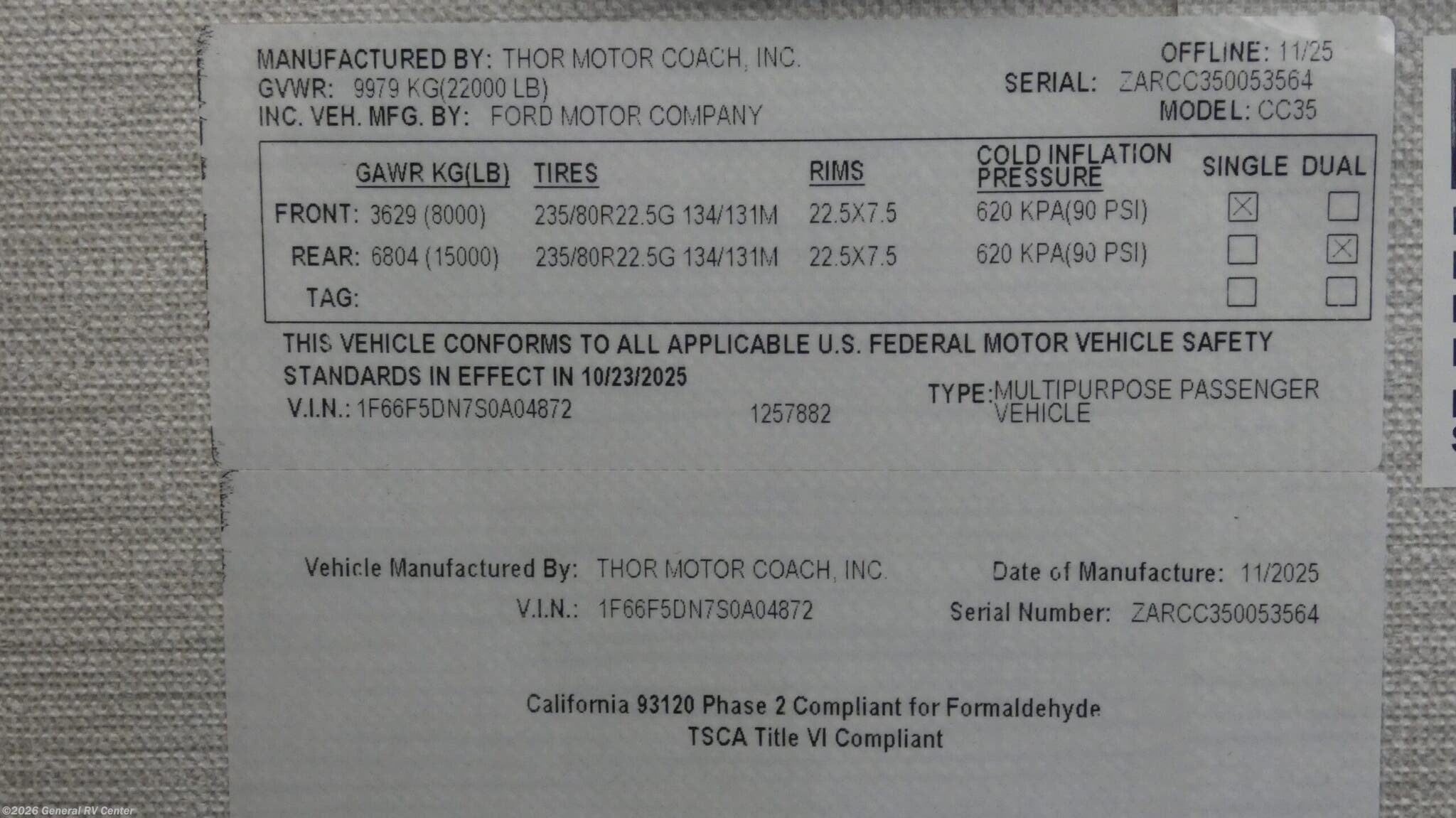 Request More Info on this 2026 Thor Motor Coach Luminate CC35 Offered for sale by General RV Center