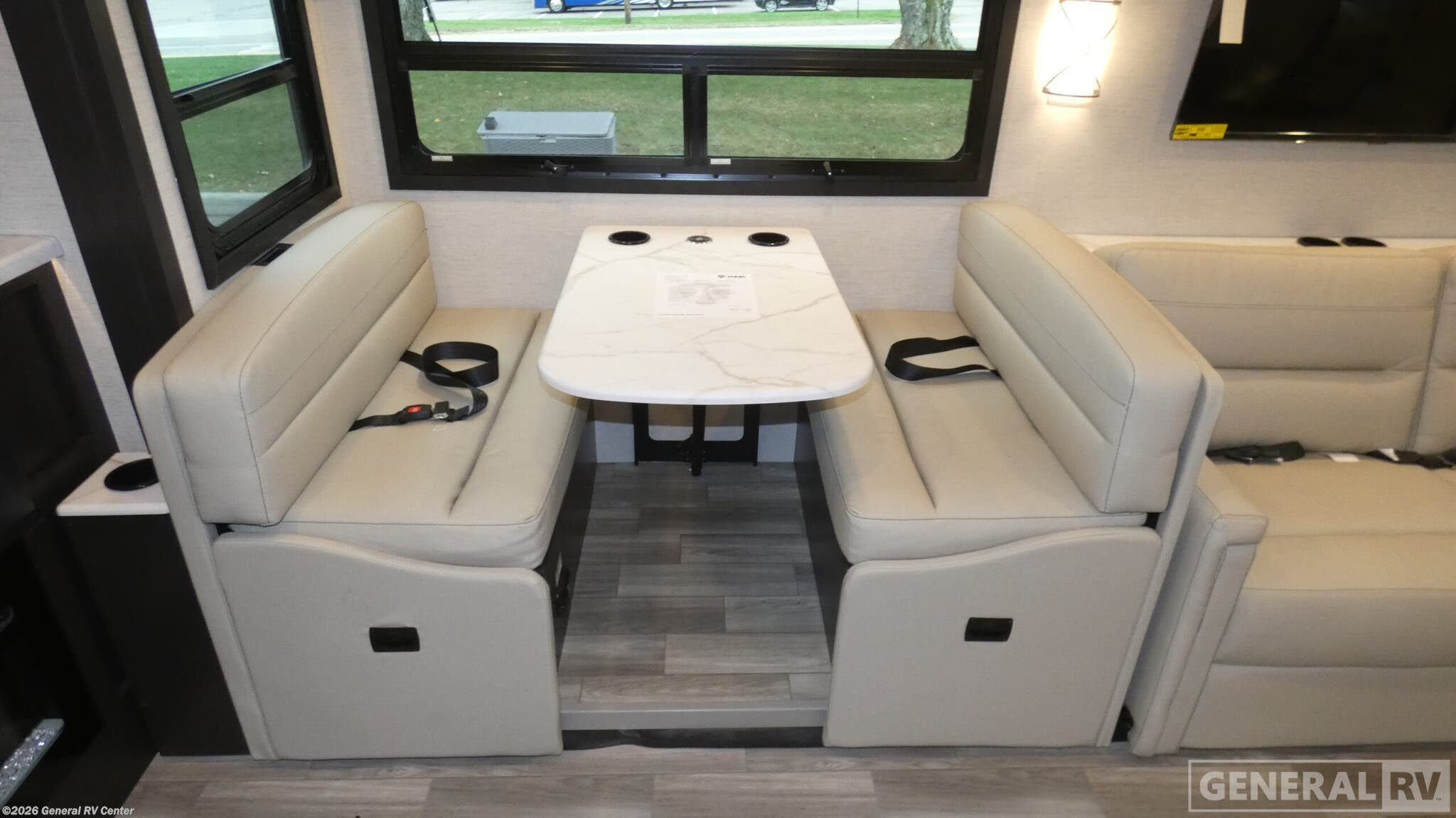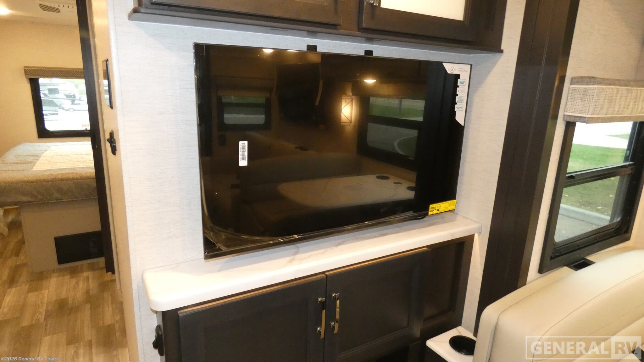 Experience the ultimate in luxury and convenience with the 2026 Thor Motor Coach Luminate CC35. This remarkable RV is designed to accommodate up to eight travelers comfortably, featuring a king-size bed, a full-size bed, and two convertible sleeping areas. The spacious interior layout combines a center kitchen, front living area, and center bath, all leading to a serene rear bedroom. The kitchen is equipped with a full-size electric refrigerator and a three-burner cooktop, perfect for preparing meals on the road. The Luminate CC35 boasts a 20 ft. powered retractable awning, offering a perfect outdoor retreat. Inside, enjoy the cozy ambiance created by the fireplace and 68" theater seating with footrests. The RV is prepped for a washer and dryer, enhancing the convenience of long-term travel. Built on a robust Ford F53 chassis with 335 horsepower, this motorhome ensures a smooth and powerful drive. With its impressive fresh water capacity and efficient use of space, the Luminate CC35 is your ideal companion for both short getaways and extended adventures. For more information or to see this model in person, visit your nearest General RV dealership.