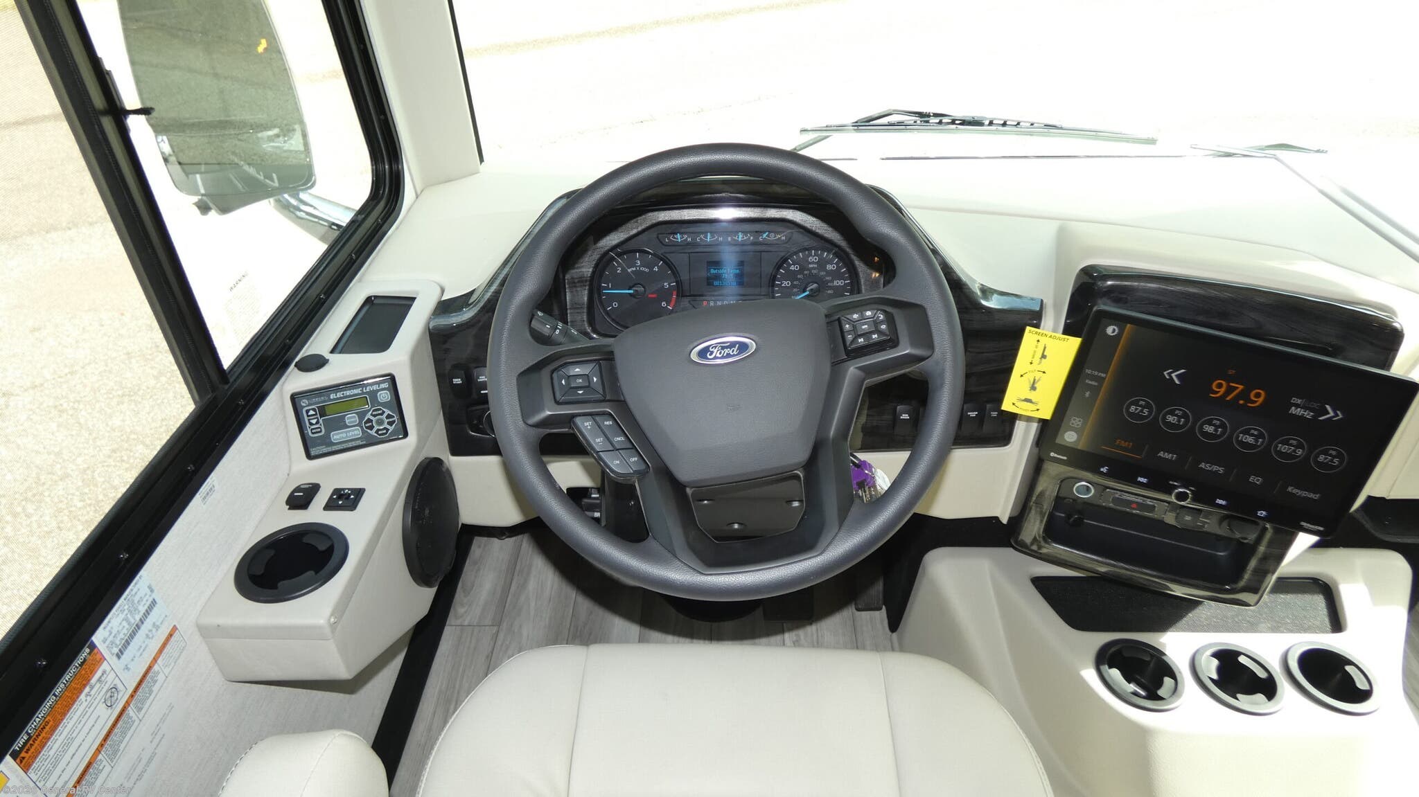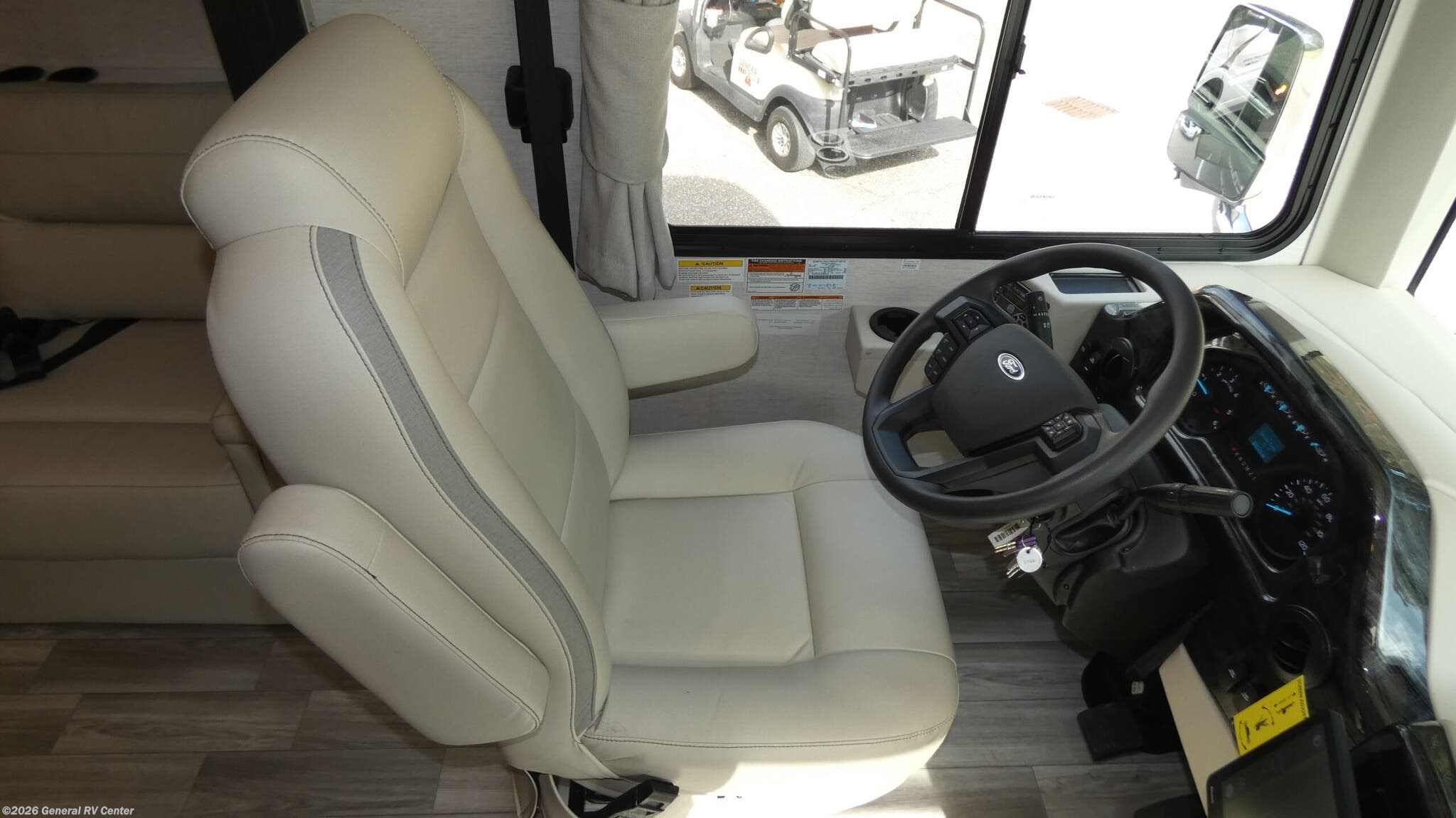 Thor Motor Coach Luminate Class A gas motorhome CC35 highlights: King Bed Theater Seating Dream Dinette Cockpit Coffee Table 68" Sofa Bed Exterior TV This spacious Class A motorhome has room to sleep eight! Enjoy the privacy of the rear king bedroom which has a spacious closet and a 32" LED Smart TV. Extra guests can utilize the Dream Dinette, the sofa bed, or the drop-down overhead bunk which has a Cotton Cloud mattress for comfort. As if that's not enough, there's a pair of leatherette theater seats with footrests so you can kick back and watch either the 40" or 50" LED Smart TV in the living room. You'll also find another TV outside. A full bath with 30" x 36" shower is conveniently located in the center so everyone has access, and the glass shower door and skylight make it feel roomy. The kitchen features a three-burner gas cooktop and oven, refrigerator, and stainless steel convection microwave. You will also appreciate the closet with stackable washer and dryer prep if you want to add those appliances! There's something for everyone in the Thor Motor Coach Luminate class A gas motorhome! Built on the Ford F53 chassis, with family-friendly designs and features that will make your life easier, these are worth considering. Residential vinyl flooring throughout is comfortable and easy to care for, while the solid surface countertops make your kitchen look great. Multiple TVs mean there's no fighting over what to watch, and a high-tech driver console adds Bluetooth®, Android Auto™, Apple CarPlay® and Sirius/XM® Radio via a 14-inch touchscreen so you can listen to whatever music you like. The dinette booth has a wireless phone charger with integrated USB plug for charging convenience, or use the dash workstation which has 100-volt and 12-volt outlets.
