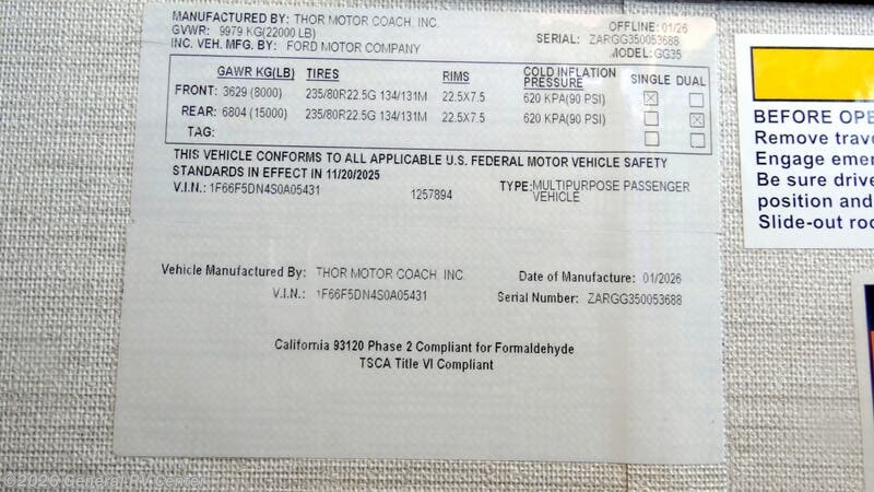 Request More Info on this 2026 Thor Motor Coach Luminate GG35 Offered for sale by General RV Center